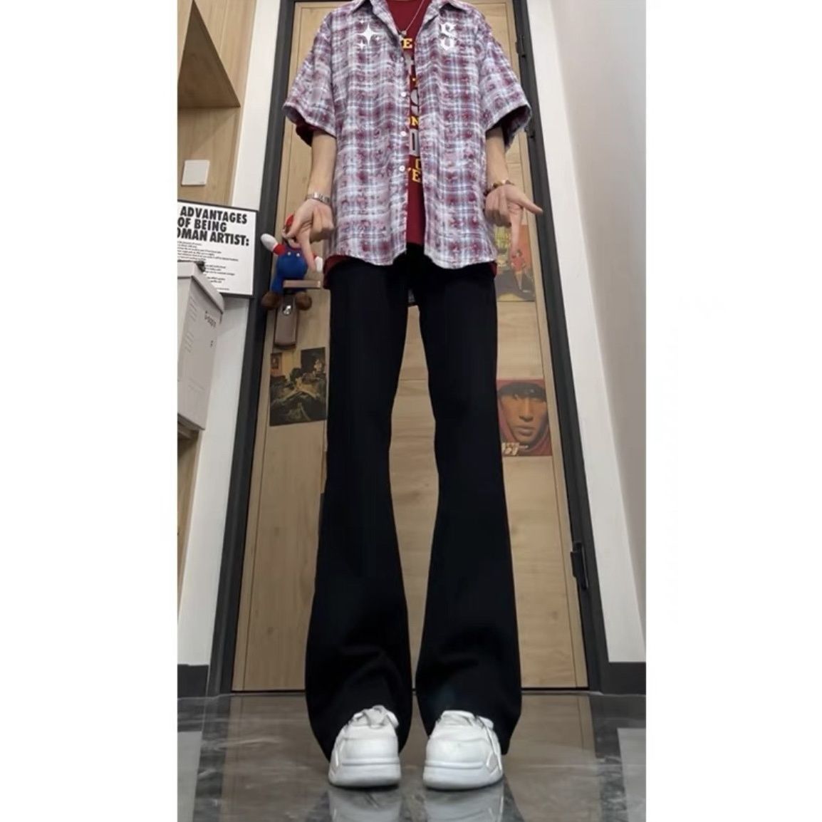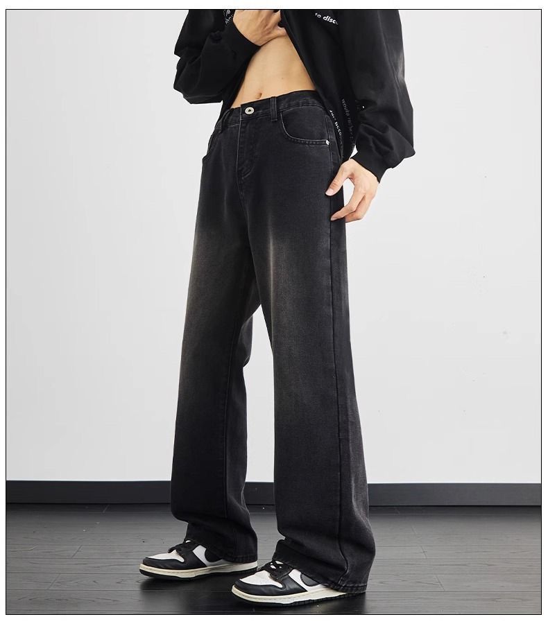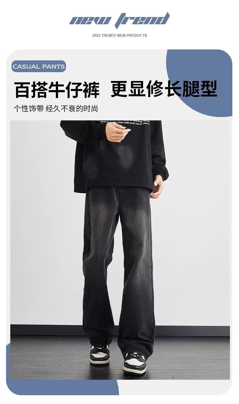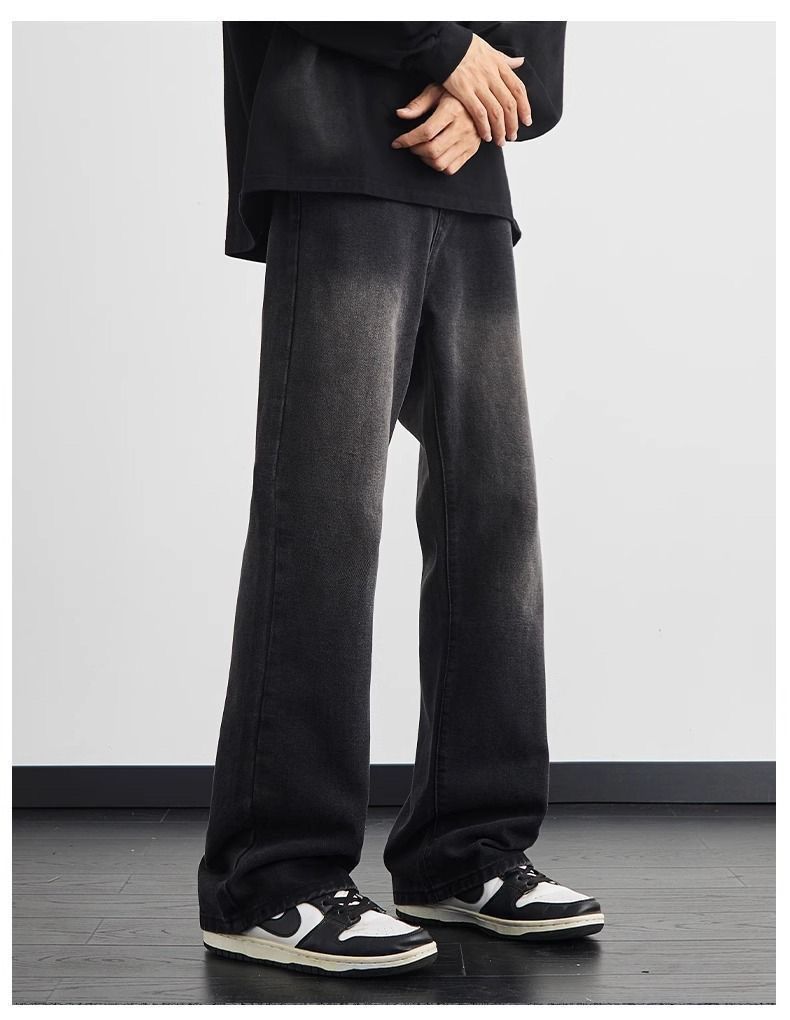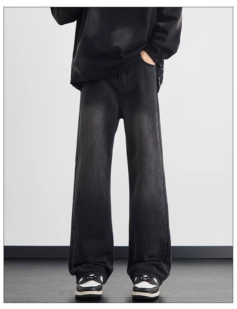 黑灰色微喇牛仔裤男直筒修身秋冬新款美式高街vibe百搭潮流长裤子