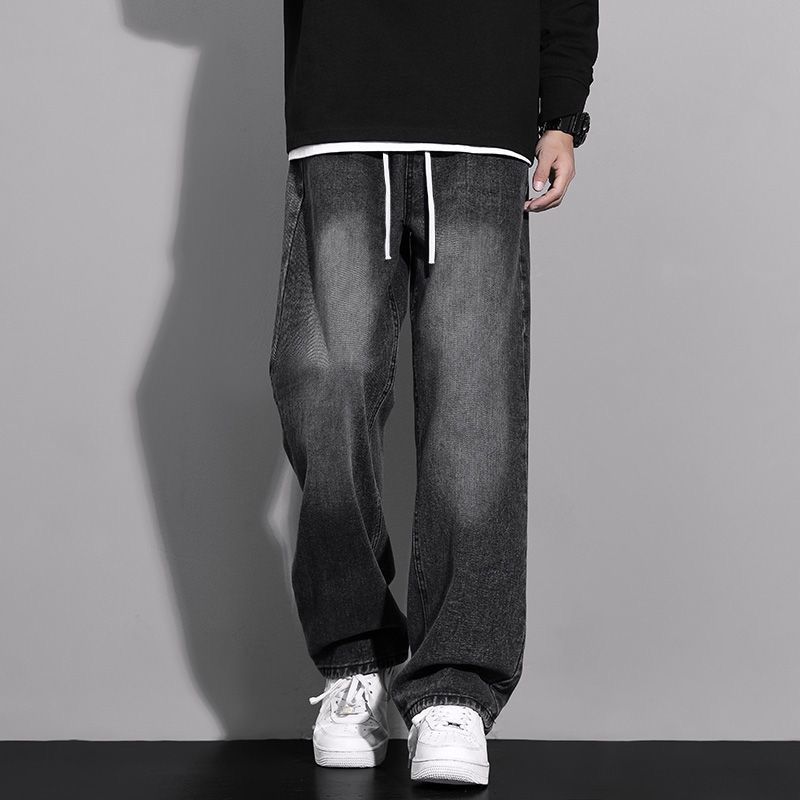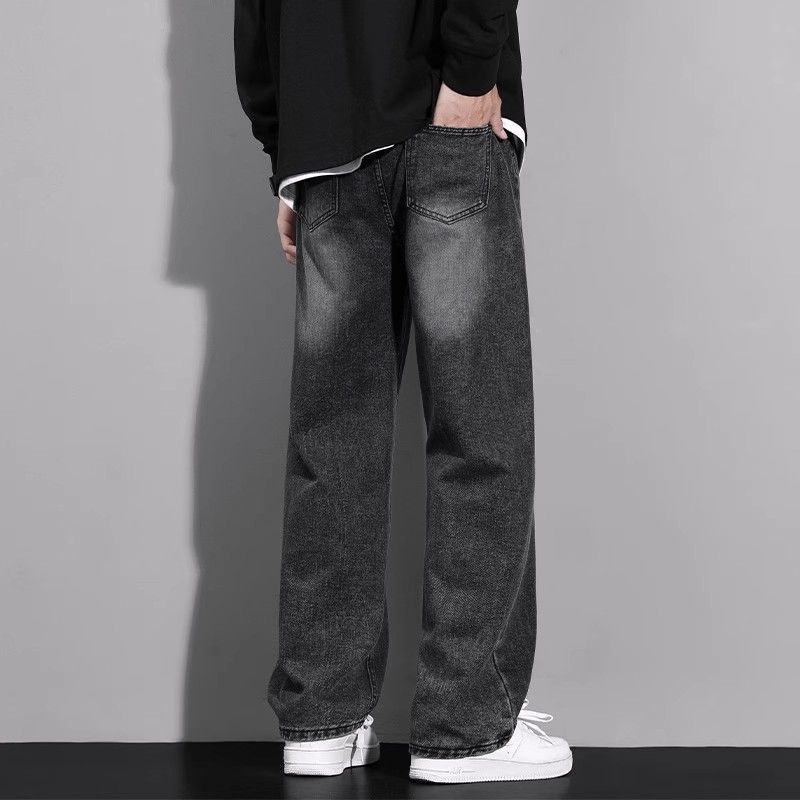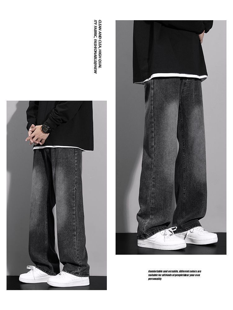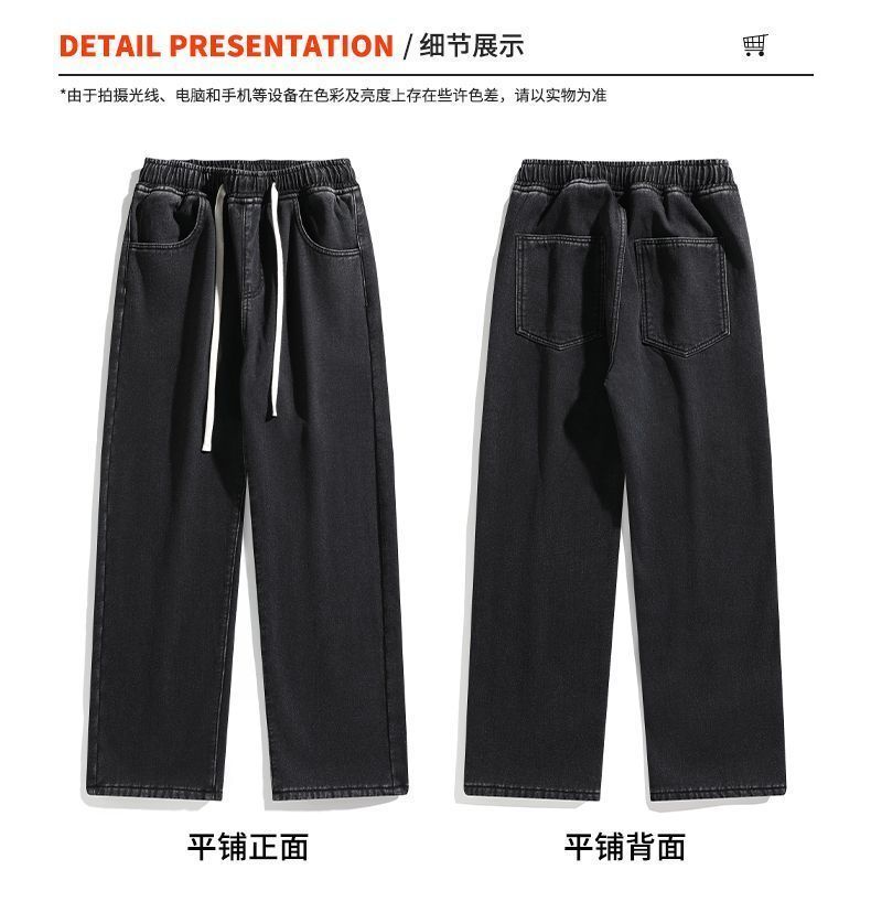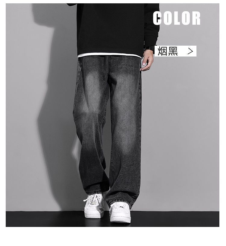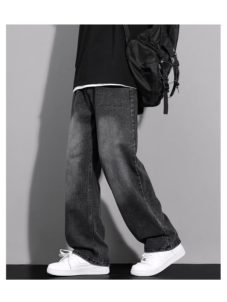 黑色渐变牛仔裤男秋冬季新款加绒宽松百搭直筒裤潮流男生阔腿裤子