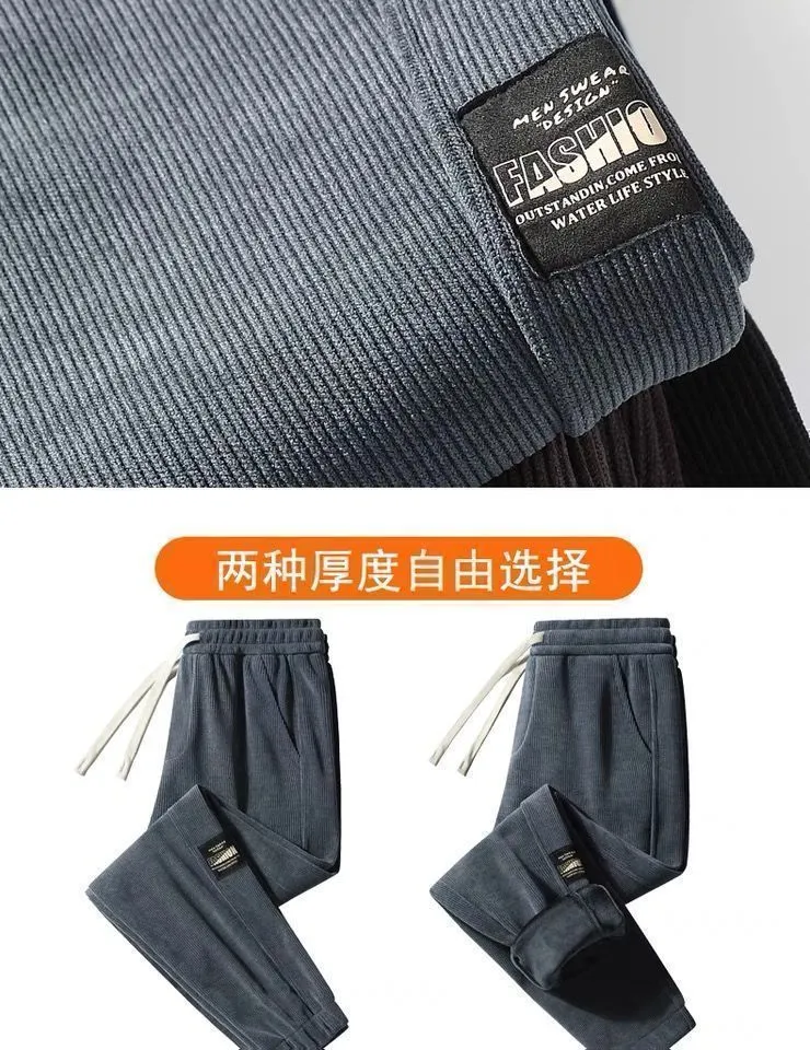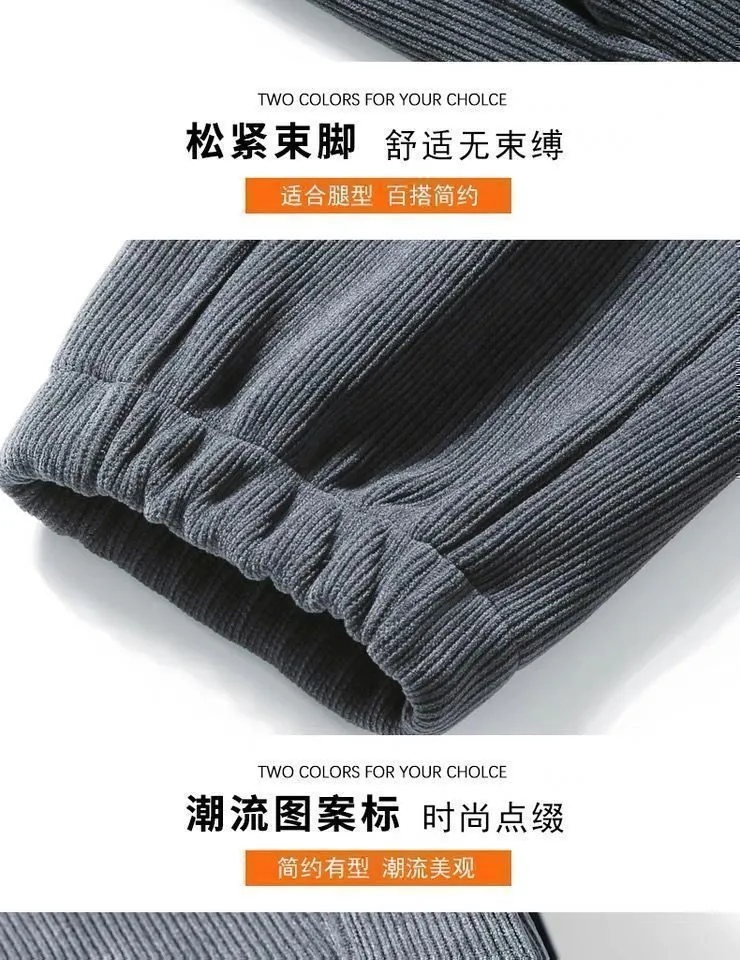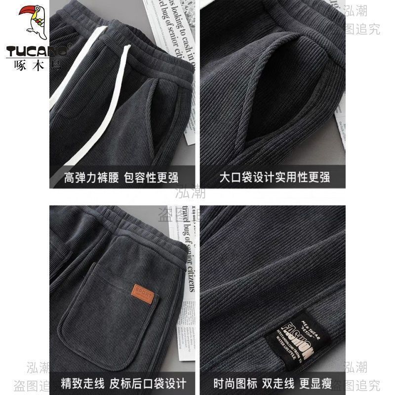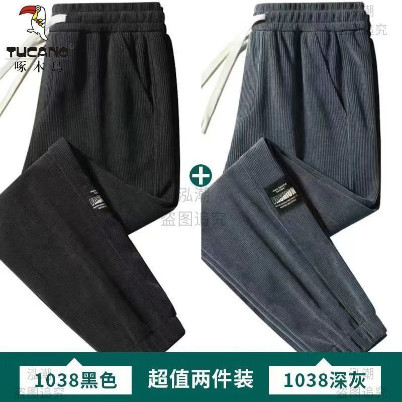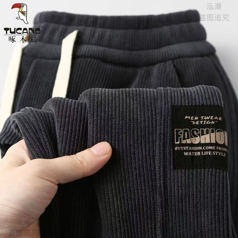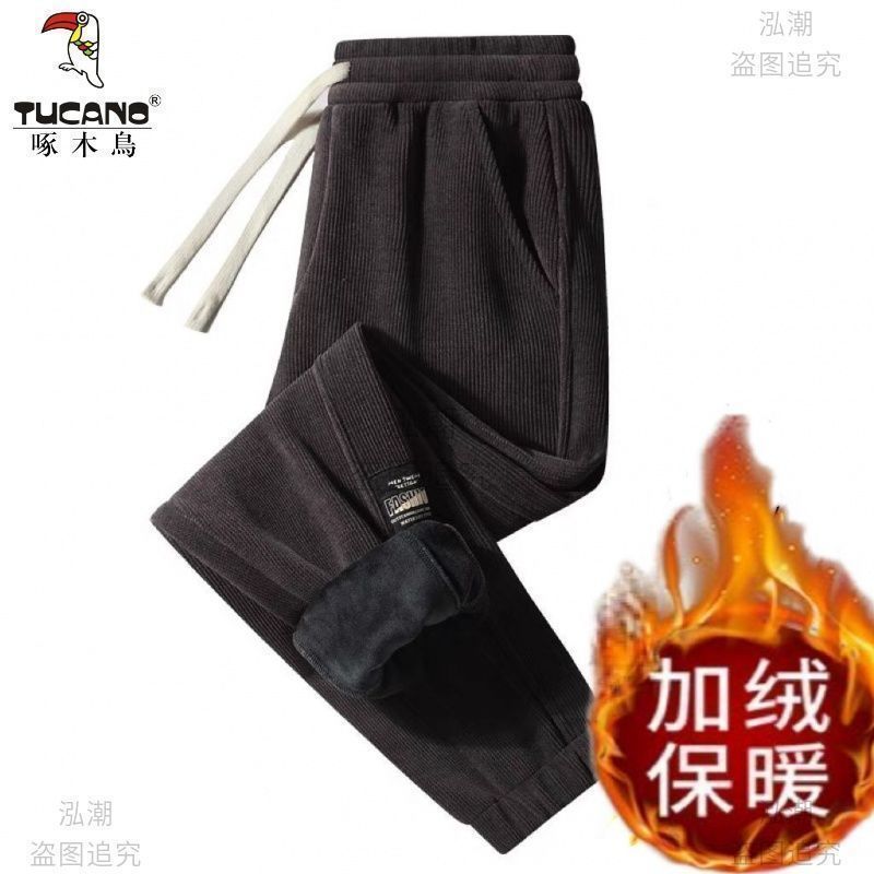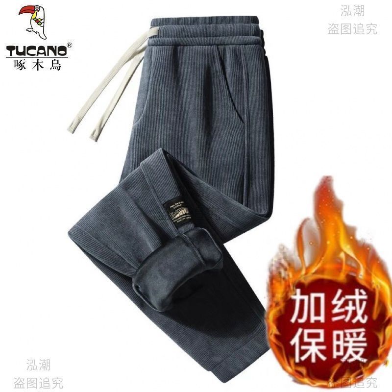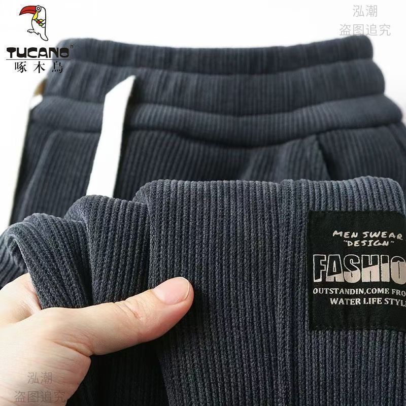啄木鸟秋冬季灯芯绒束脚长裤子男士加绒加厚百搭休闲潮牌休闲裤子