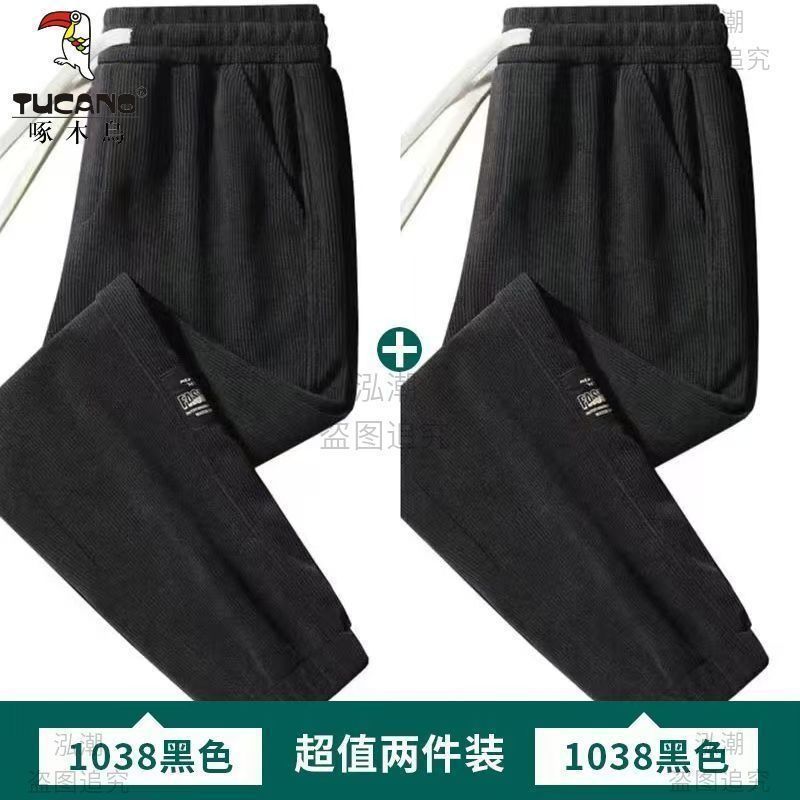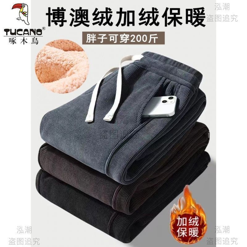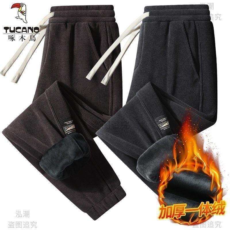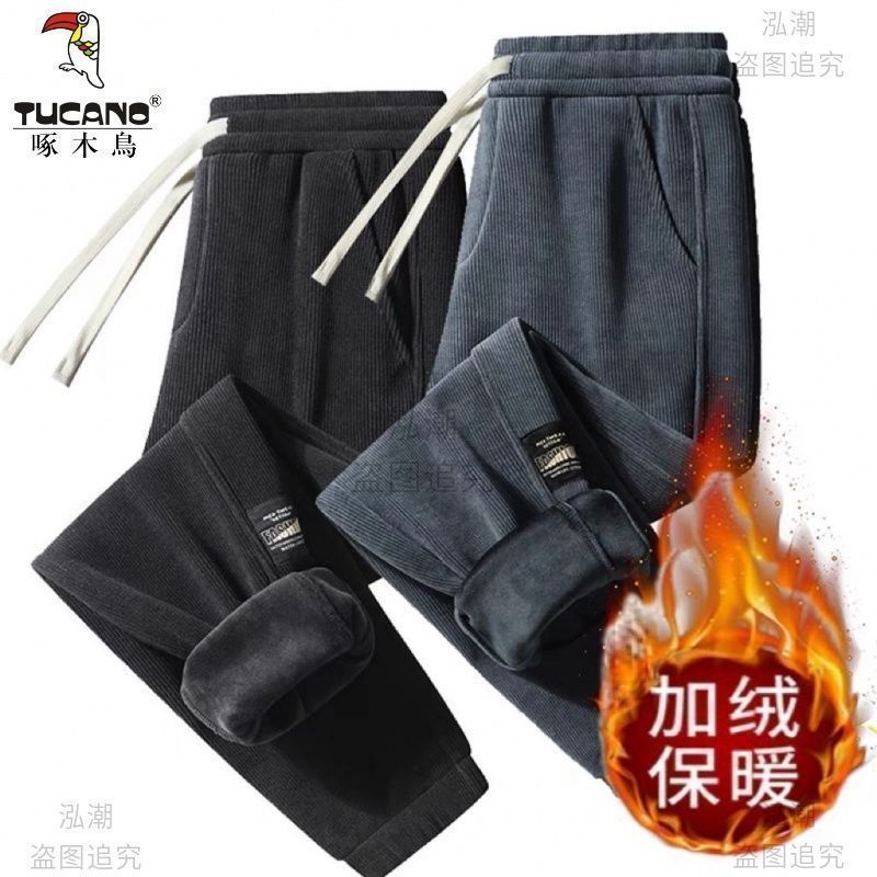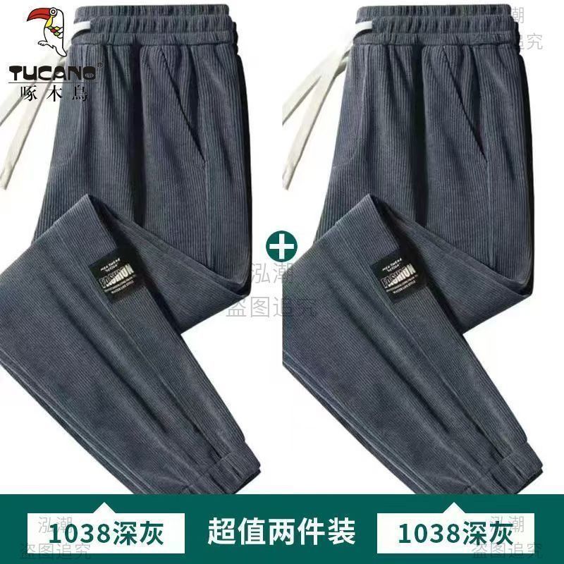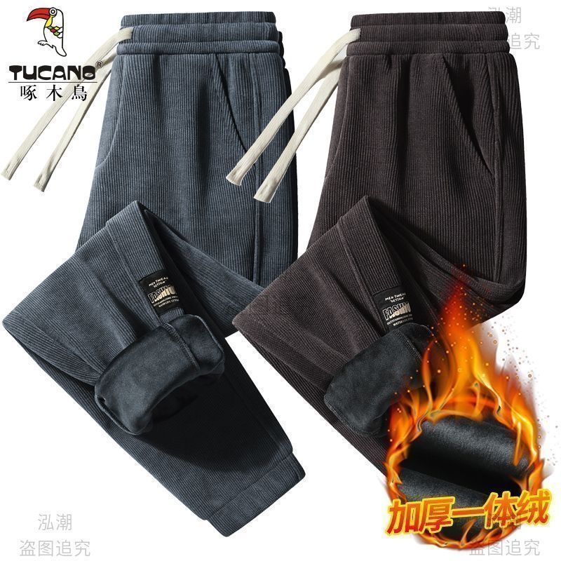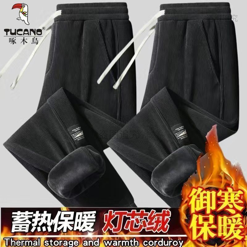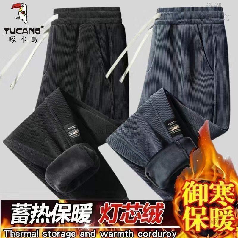 啄木鸟秋冬季灯芯绒束脚长裤子男士加绒加厚百搭休闲潮牌休闲裤子