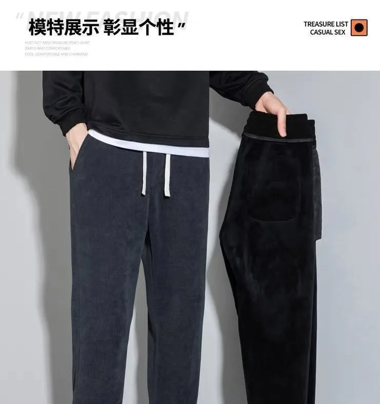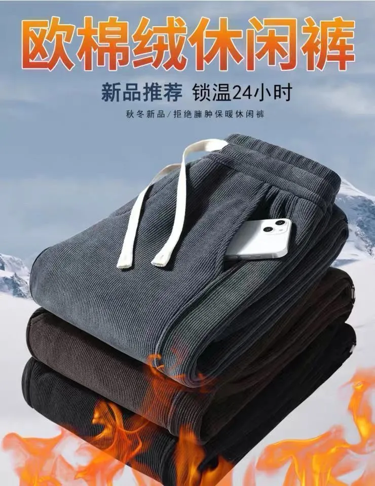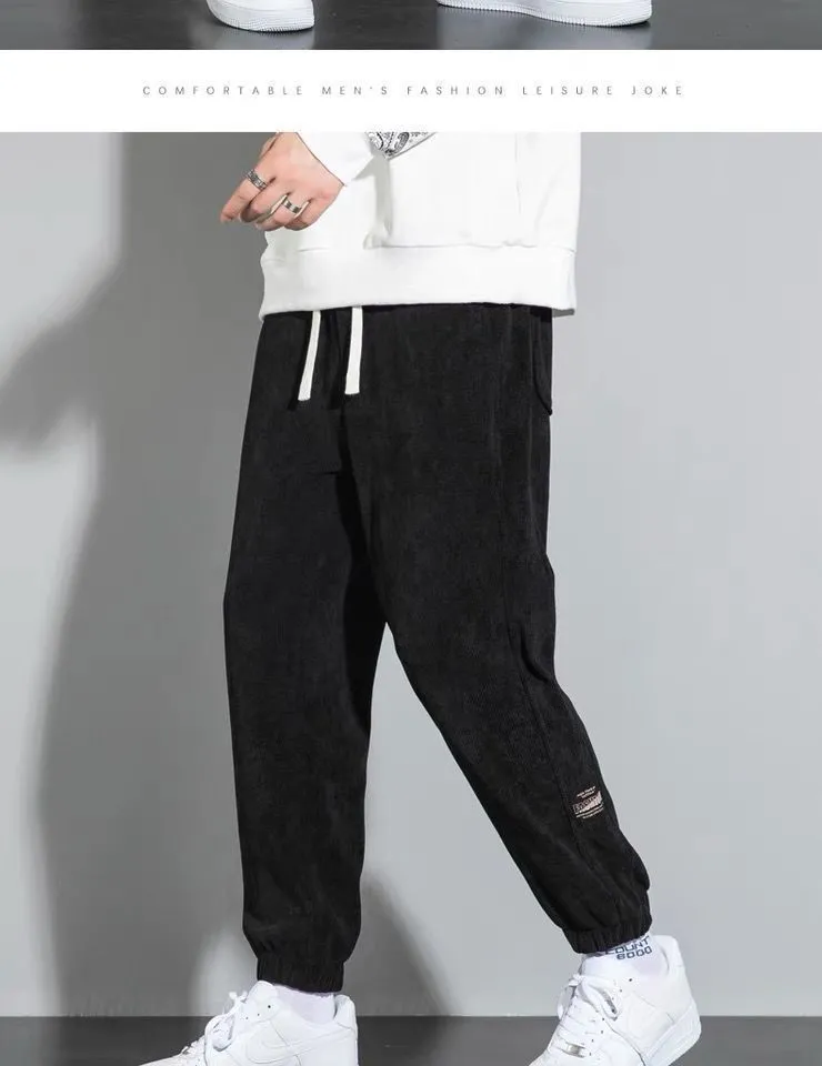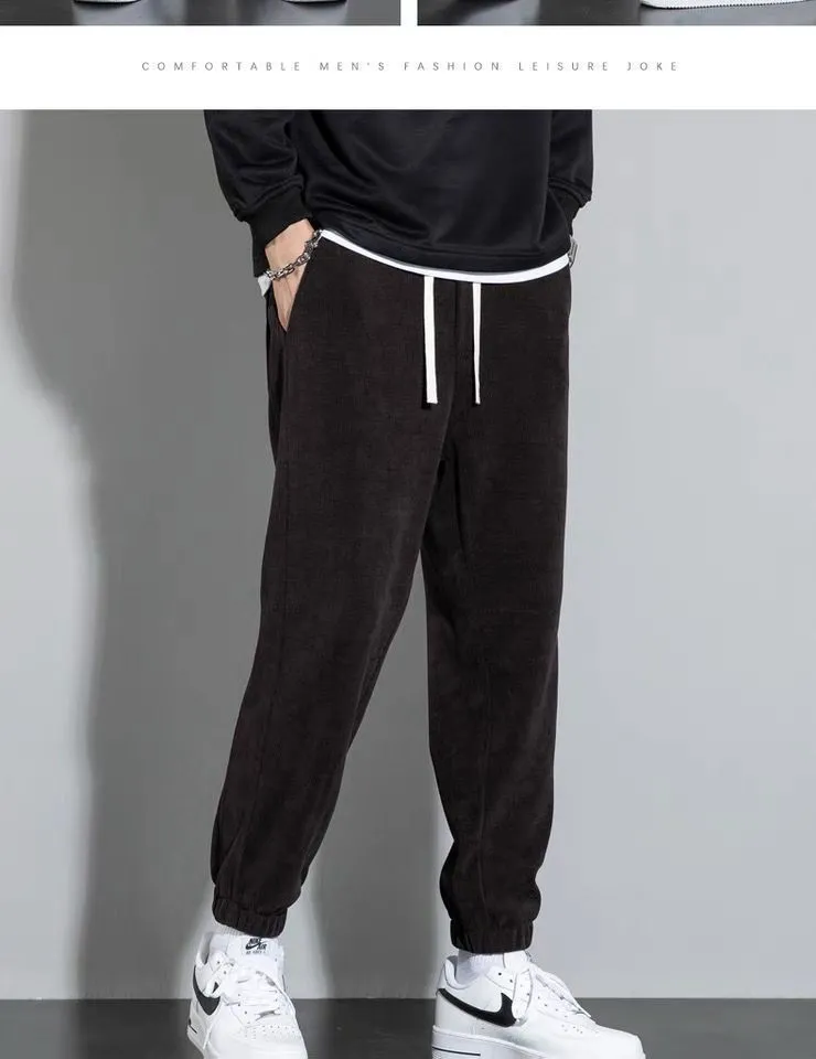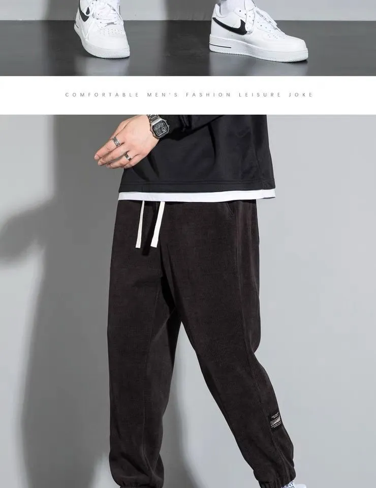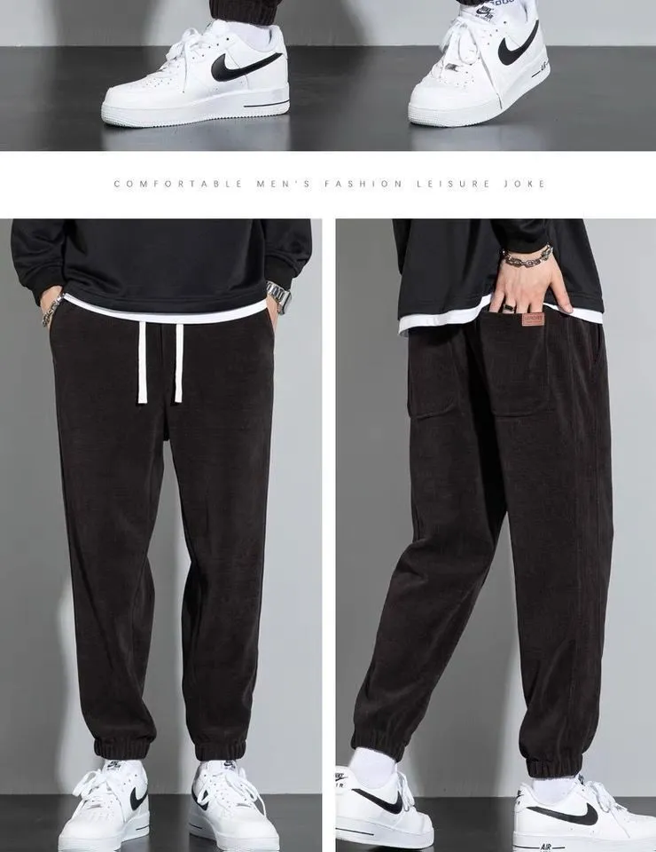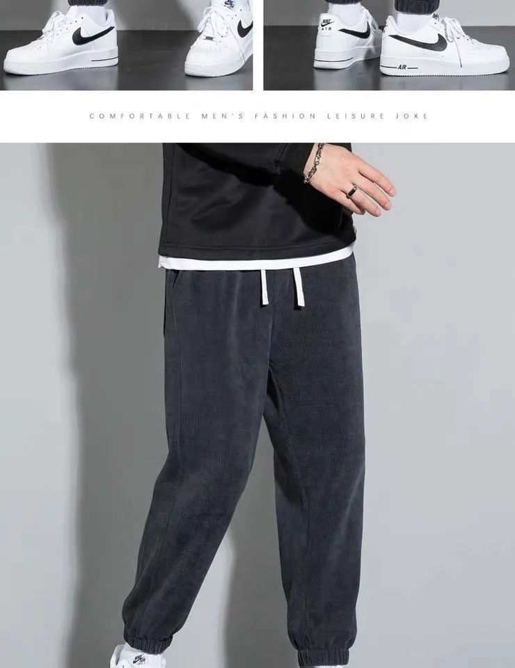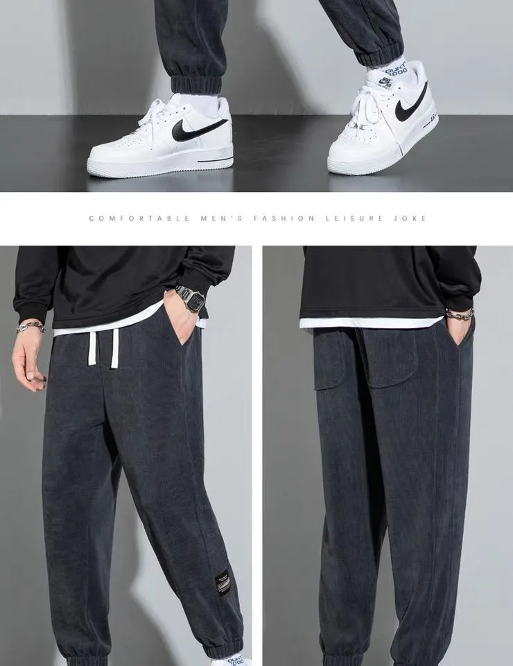 啄木鸟秋冬季灯芯绒束脚长裤子男士加绒加厚百搭休闲潮牌休闲裤子