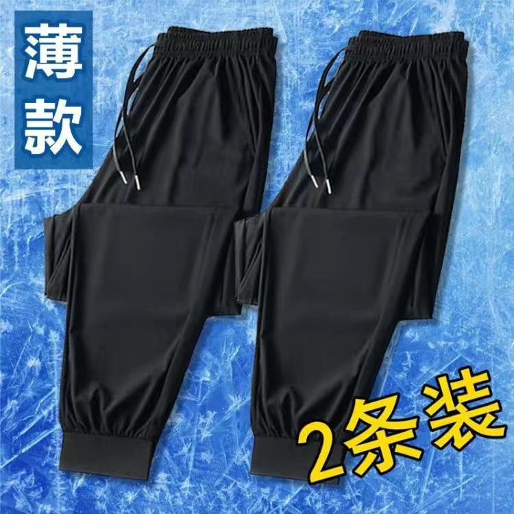【便宜】夏季运动裤男休闲裤松紧腰长裤束脚裤薄款宽松高腰卫裤男