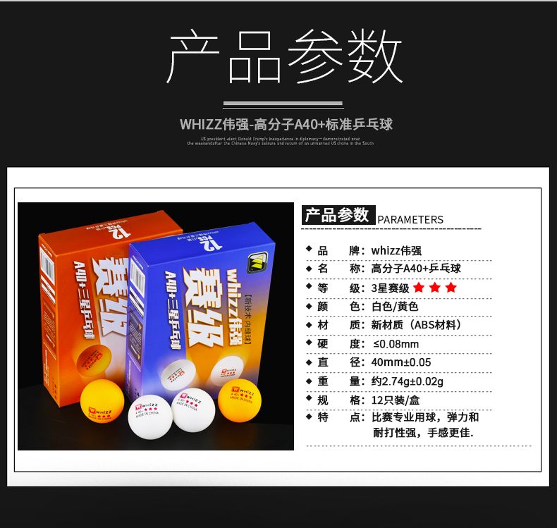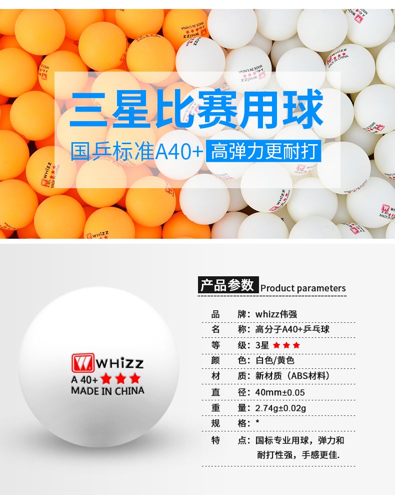 国标三星乒乓球比赛训练二星用兵兵球球ABS40+新材料耐打兵乓球拍