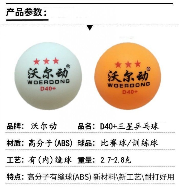 沃尔动三星乒乓球包邮ABS新材料40+高弹力业余训练专业比赛专用球