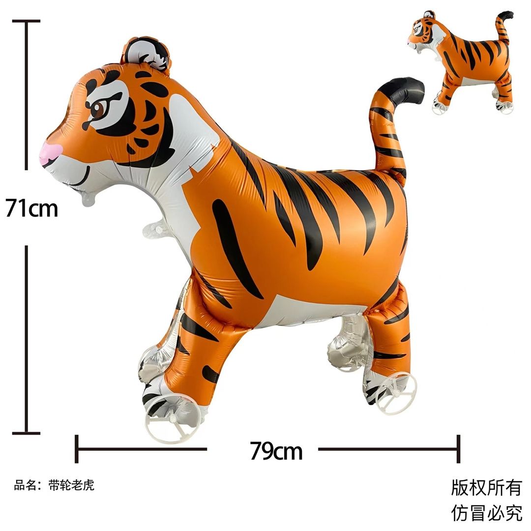 新款恐龙动物站立带轮走路铝膜气球卡通儿童生日派对装饰场景布置