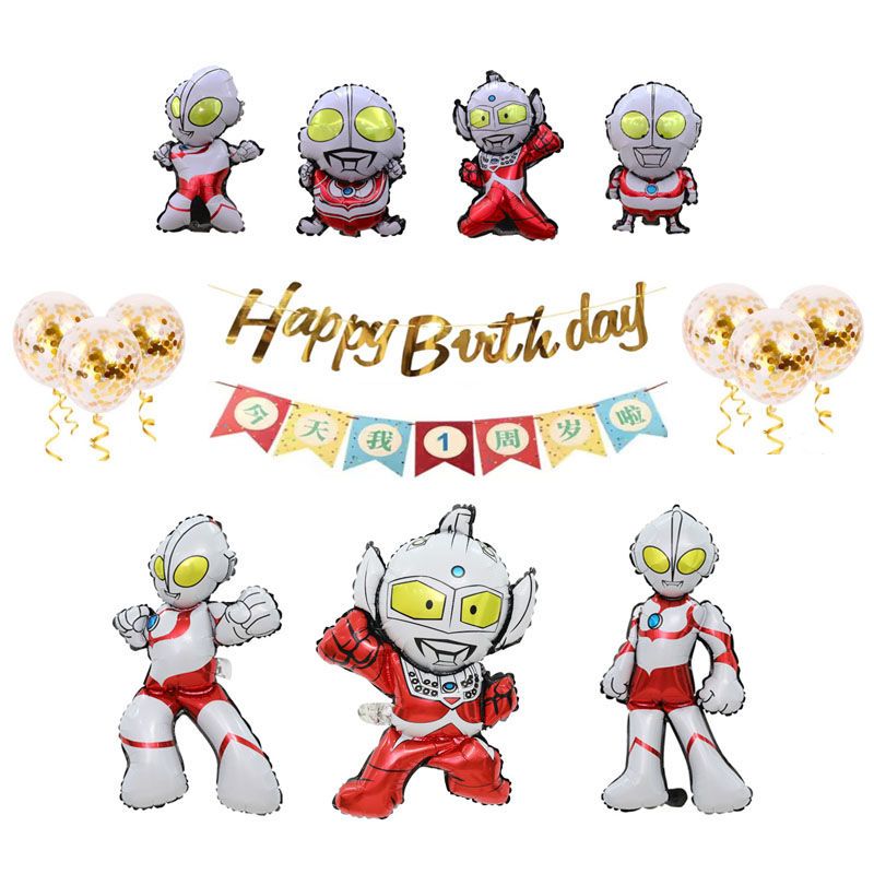 奥特曼主题生日气球装饰儿童周岁派对卡通铝膜气球场景布置男女孩
