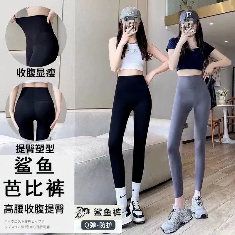 性感黑色鲨鱼裤女外穿显瘦春秋款2024薄款健身高腰收腹芭比裤
