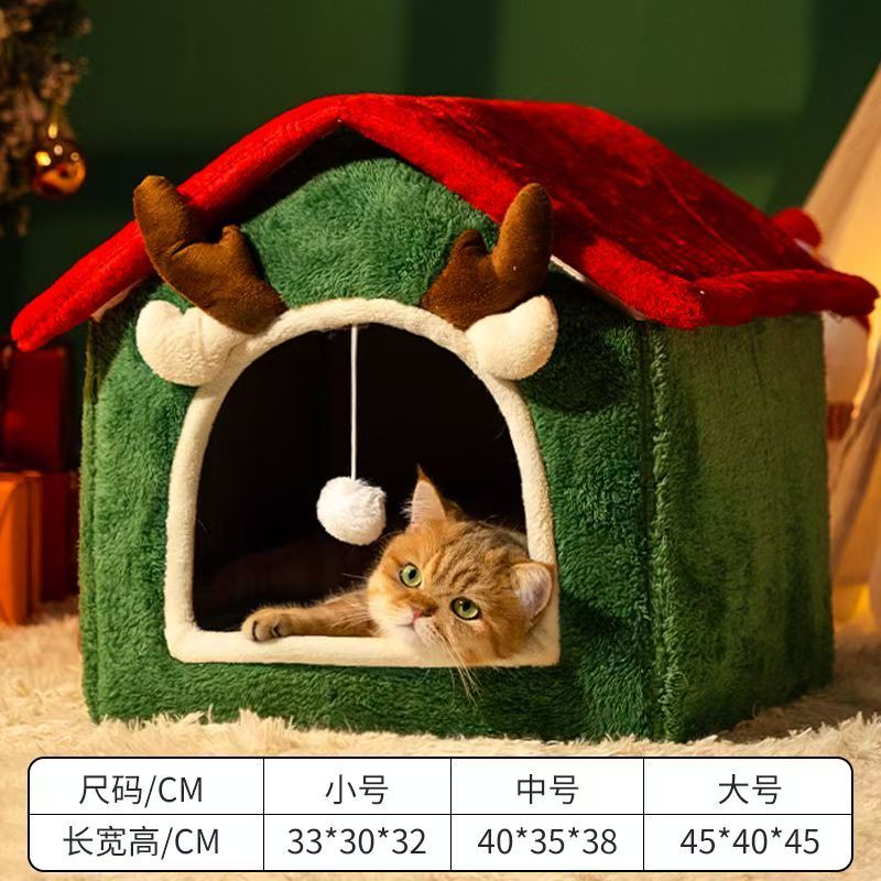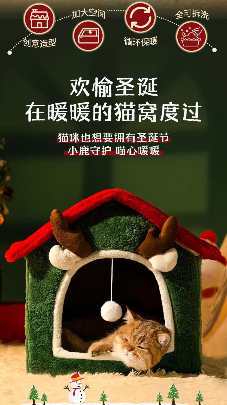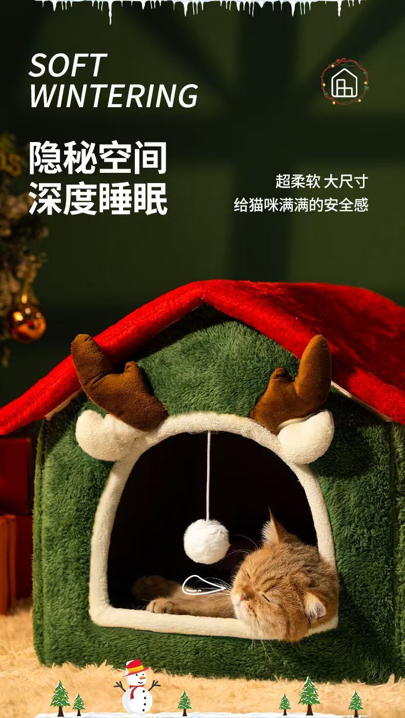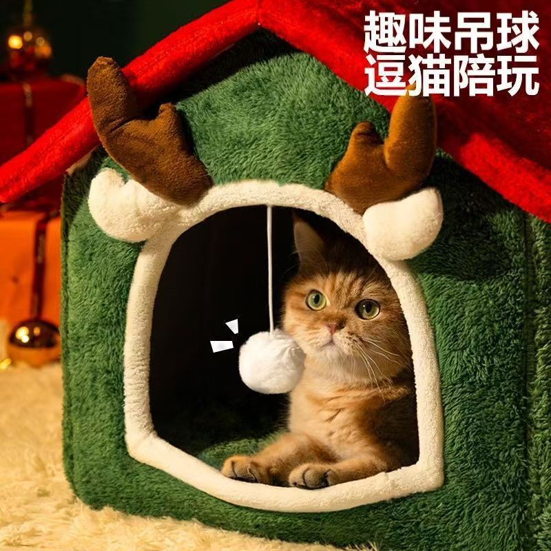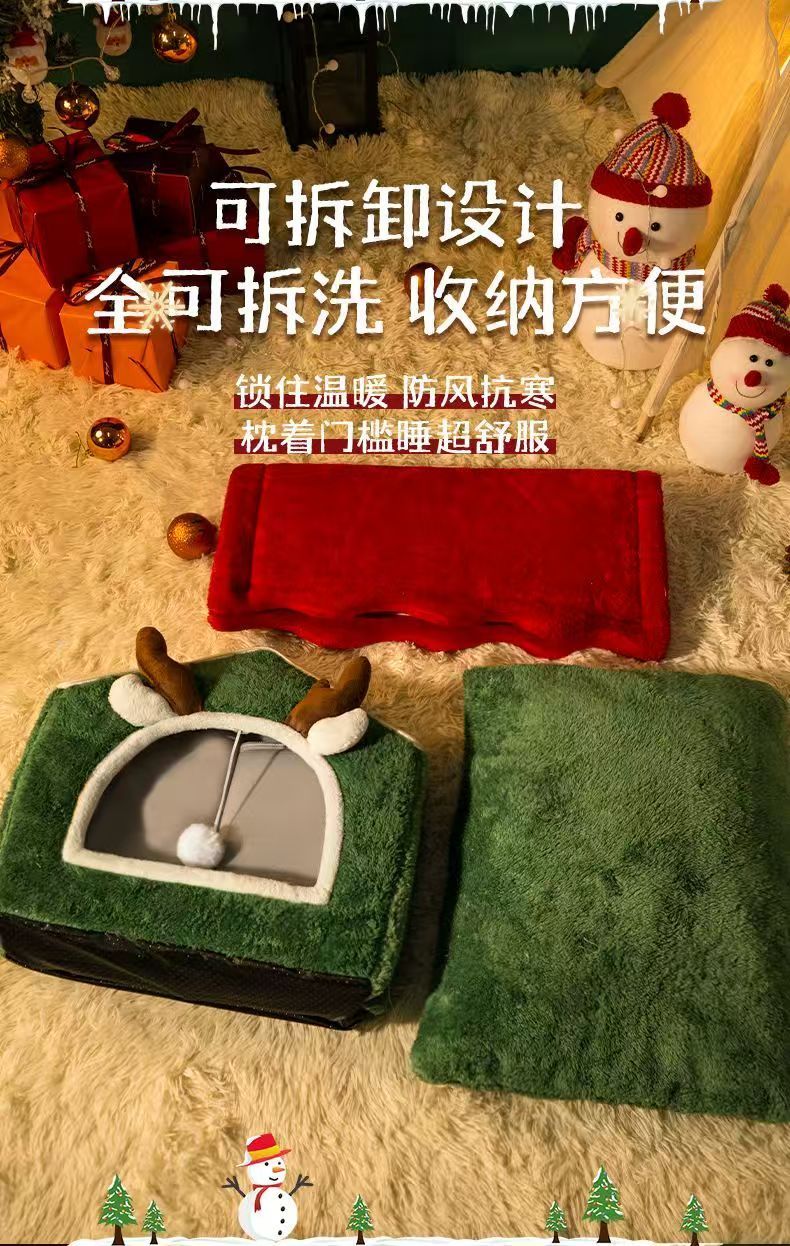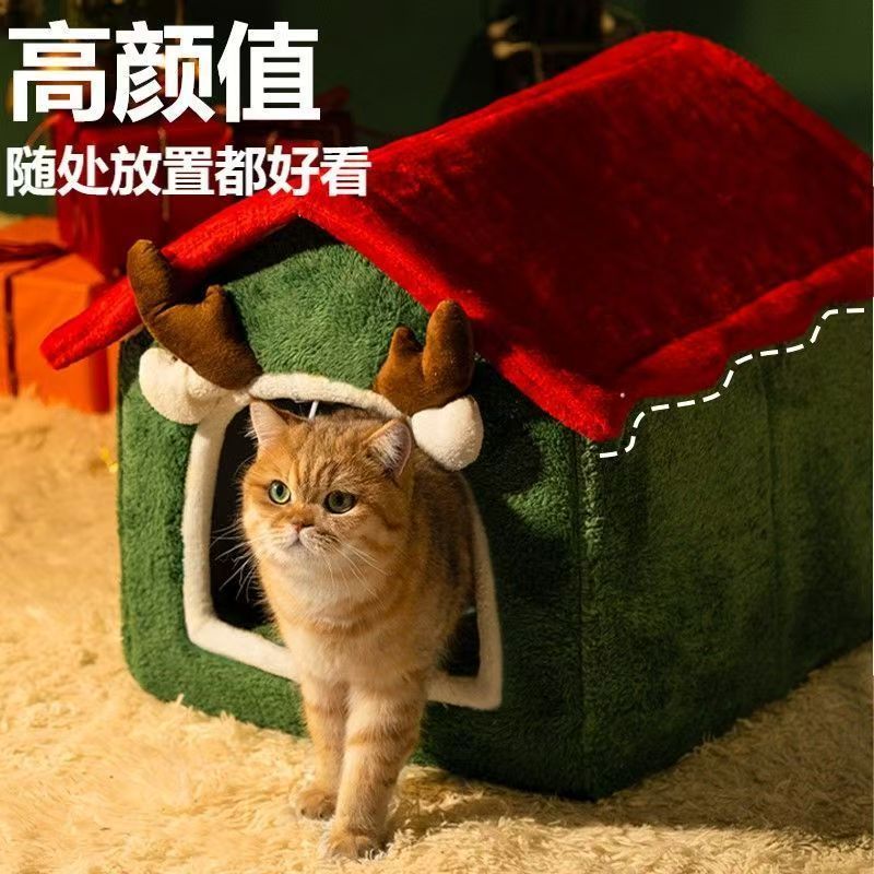 冬季麋鹿猫窝狗窝半封闭式猫屋四季通用猫咪别墅房冬天宠物用品