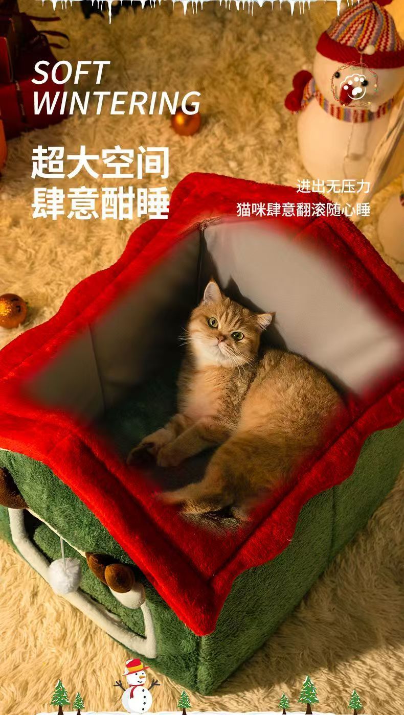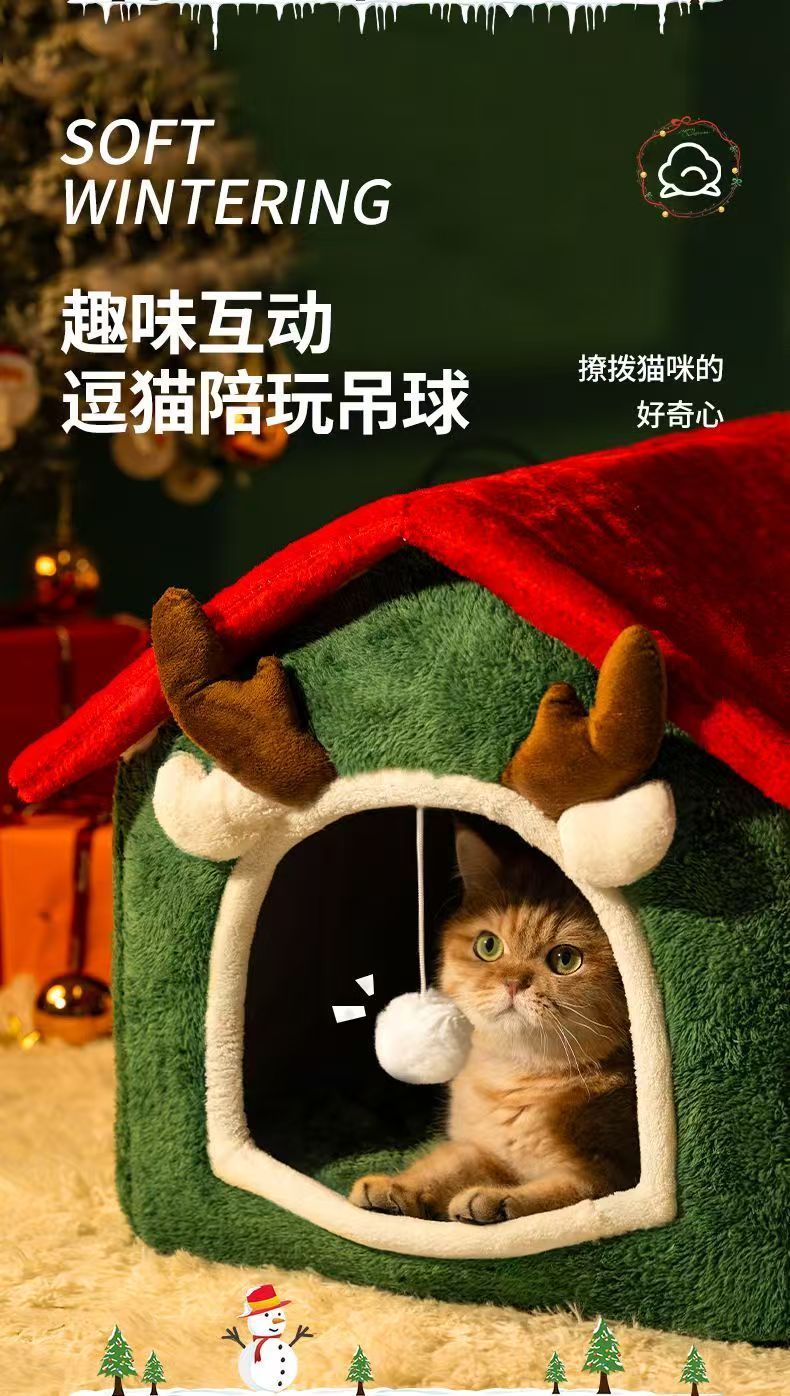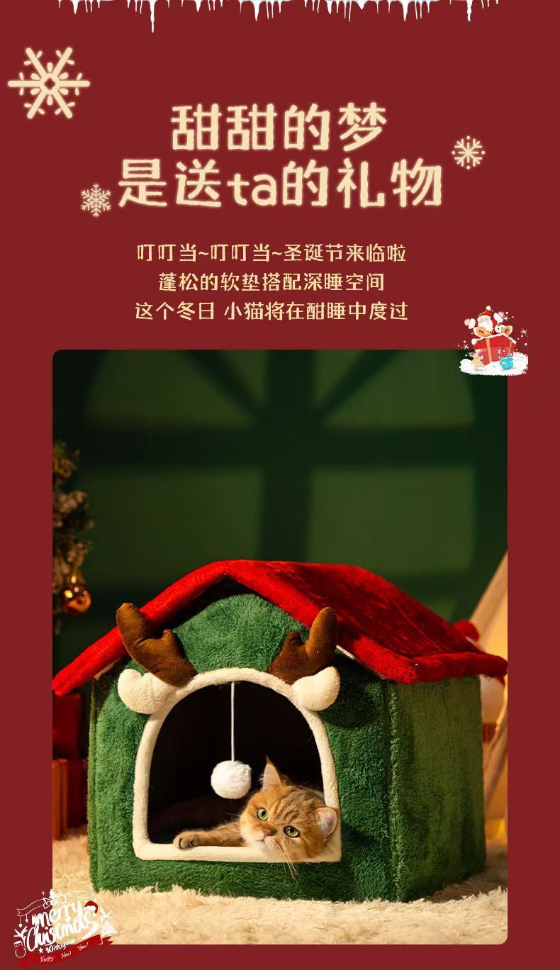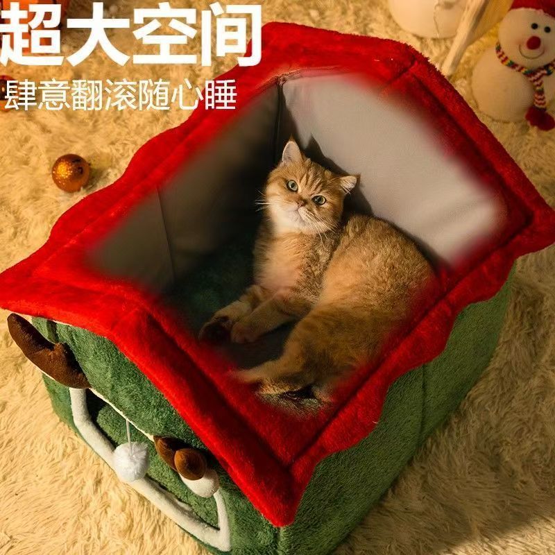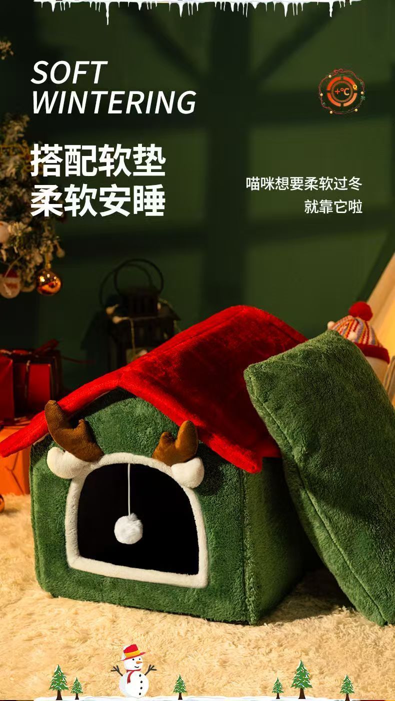 冬季麋鹿猫窝狗窝半封闭式猫屋四季通用猫咪别墅房冬天宠物用品