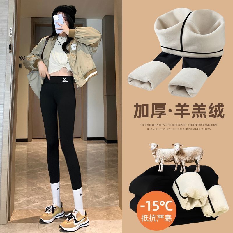 咖色鲨鱼裤2025新款女外穿秋冬季瑜伽芭比裤保暖加绒加厚打底裤子