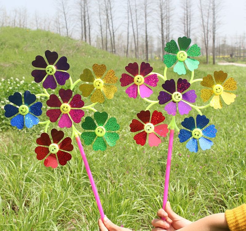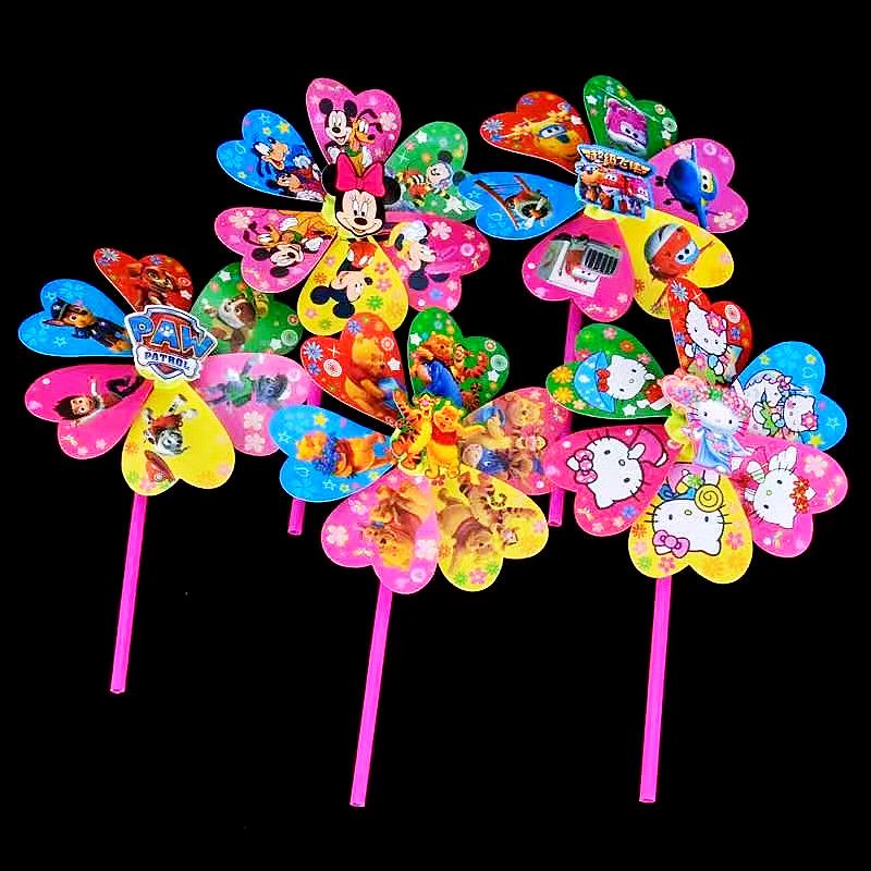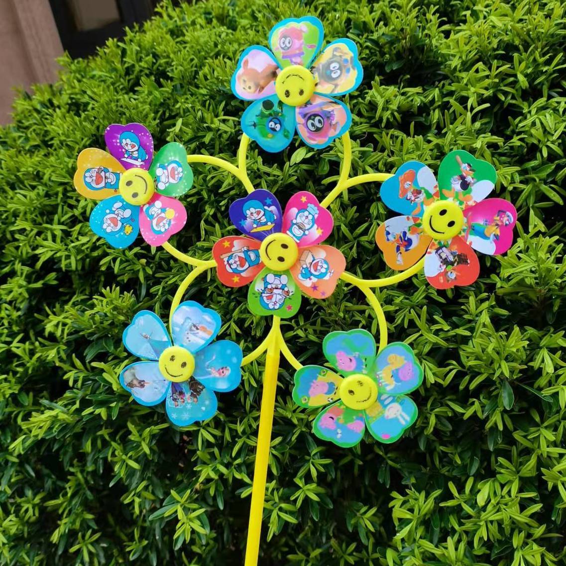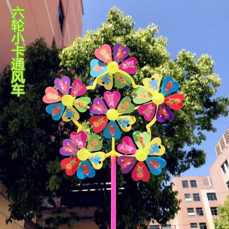 新款卡通六轮风车儿童玩具塑料彩色小风车婴儿推车广场景区摆地摊