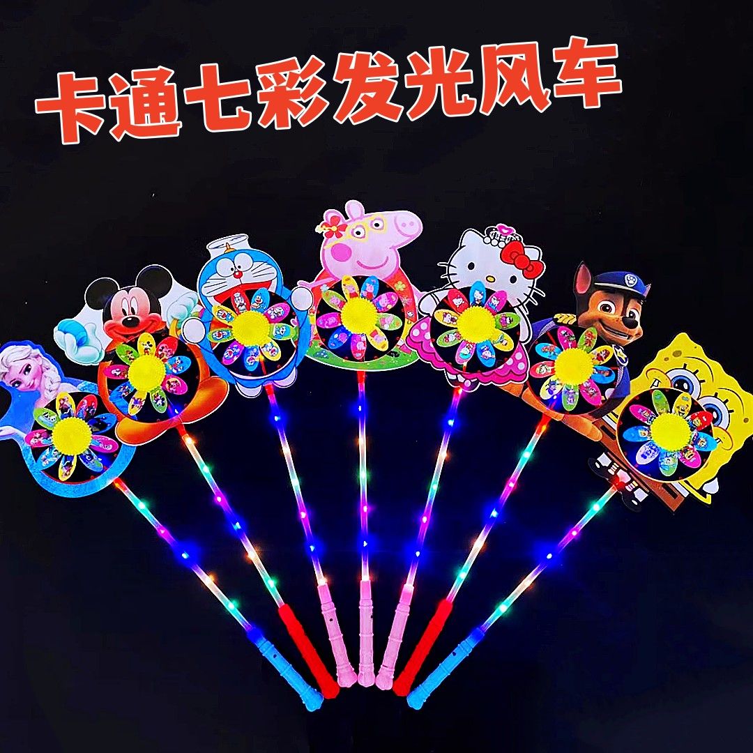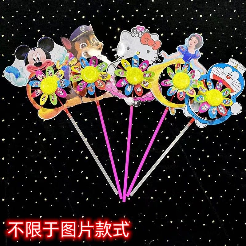 网红炫彩卡通发光风车儿童玩具节日礼物旋转夜市摆地摊小商品批发