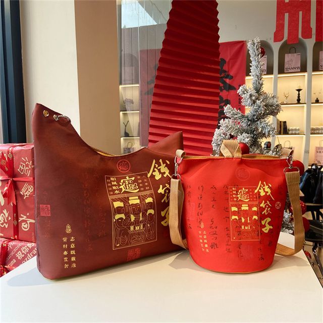 蛇年新款中国风文创手拎包古风福袋手提斜挎外出发财包暴富钱袋子