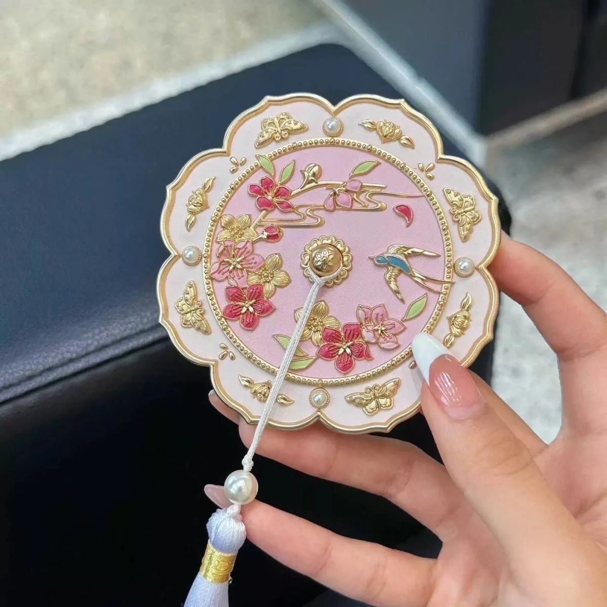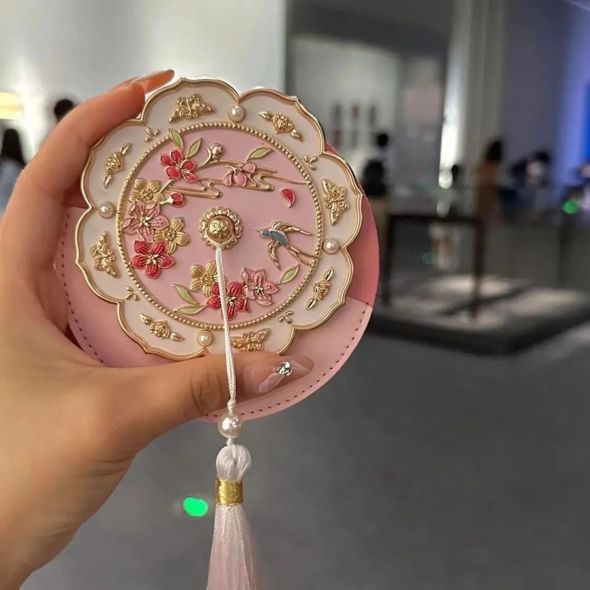 故宫桃花文创手持小镜子中式随身镜手柄化妆镜同款古风锦上添花