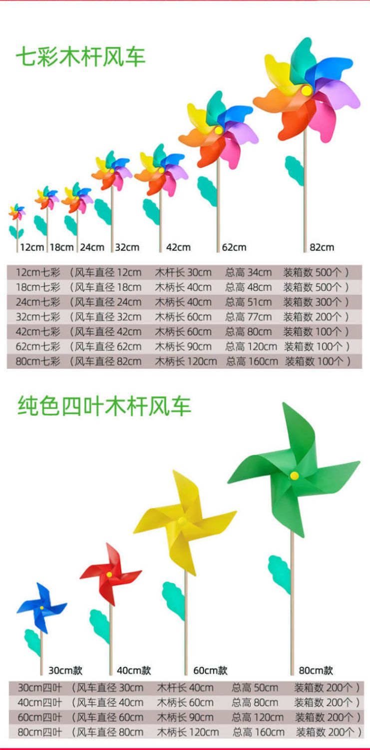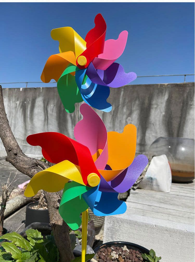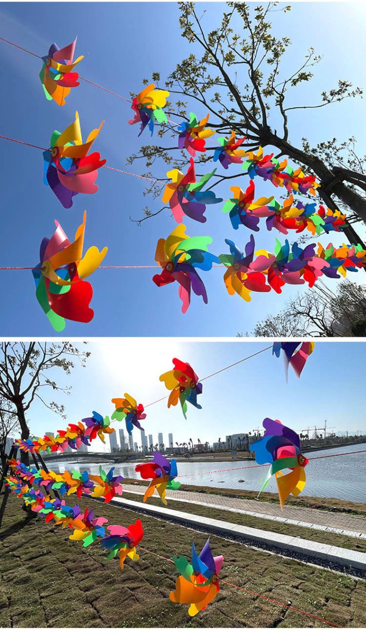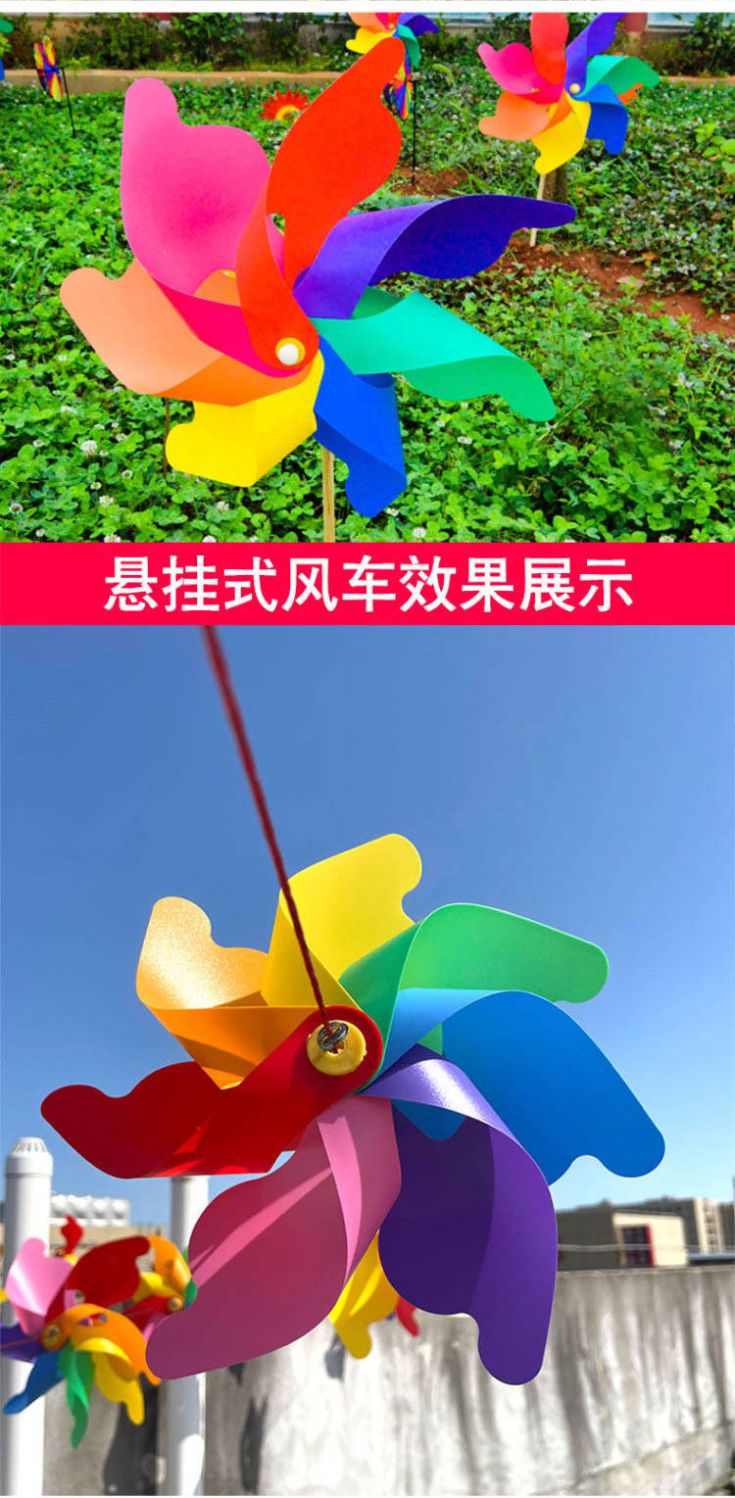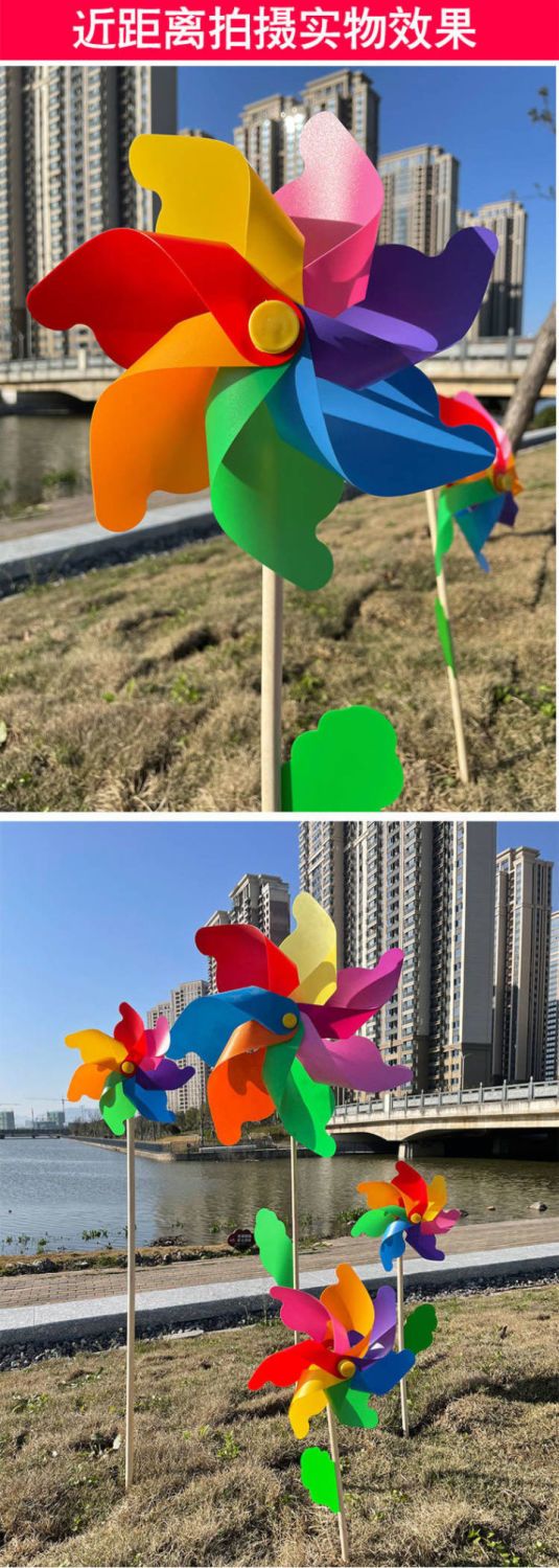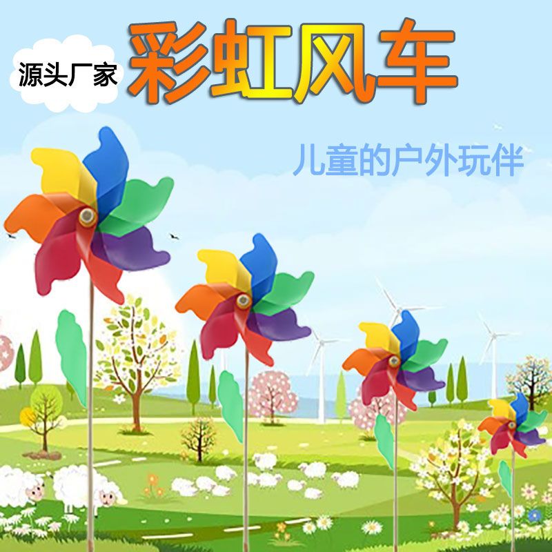 彩色风车七彩风车庭院装饰户外旋转大号风车幼儿园婴儿儿童玩具