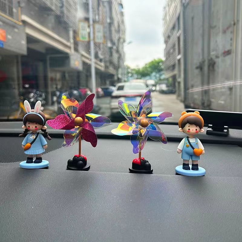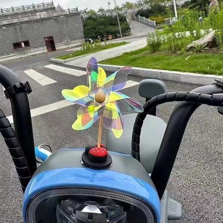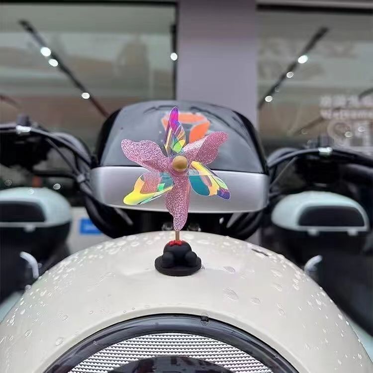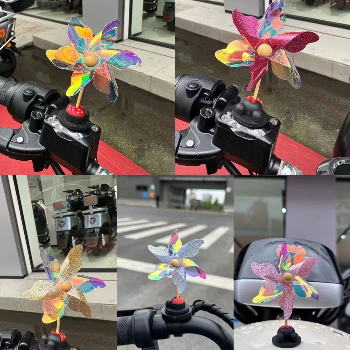 网红风吹旋转电动电动车装饰品风车摩托车自行车创意可爱车载摆件