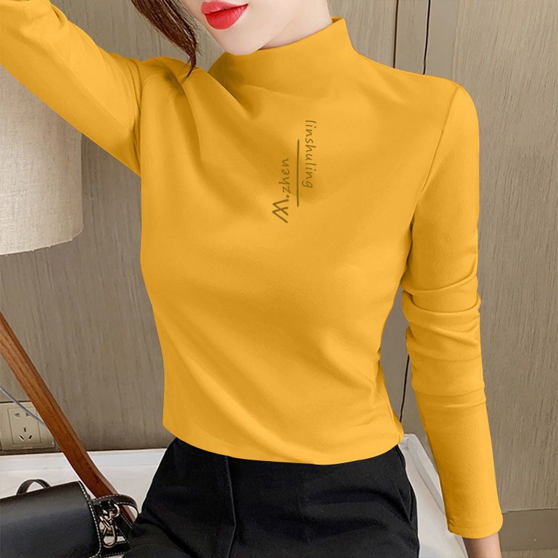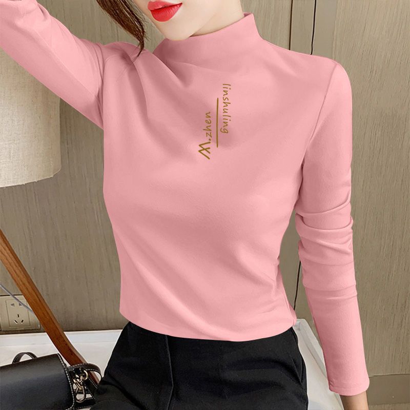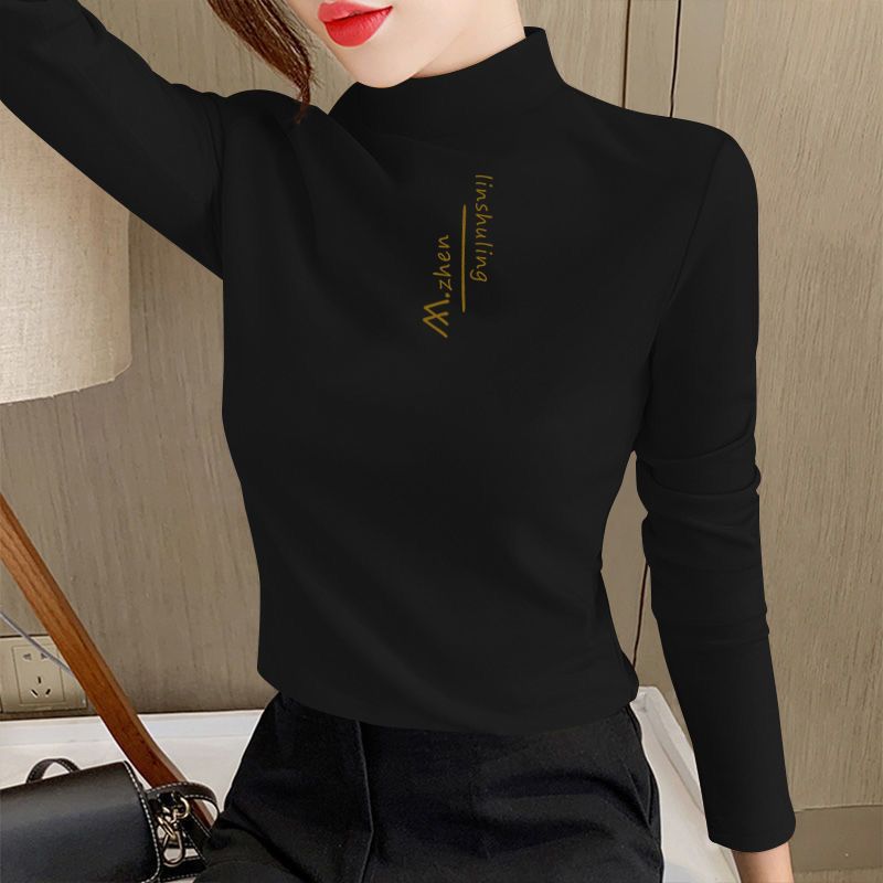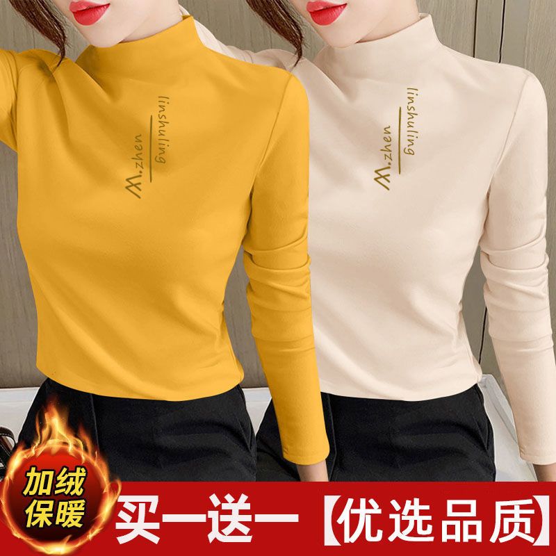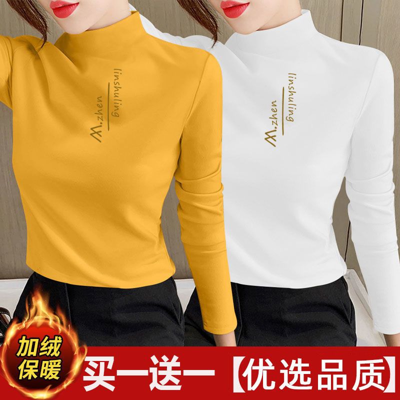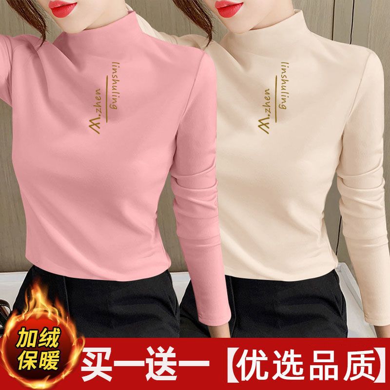 单/两件装 双面德绒印花半高领秋冬保暖打底衫修身百搭长袖t恤女