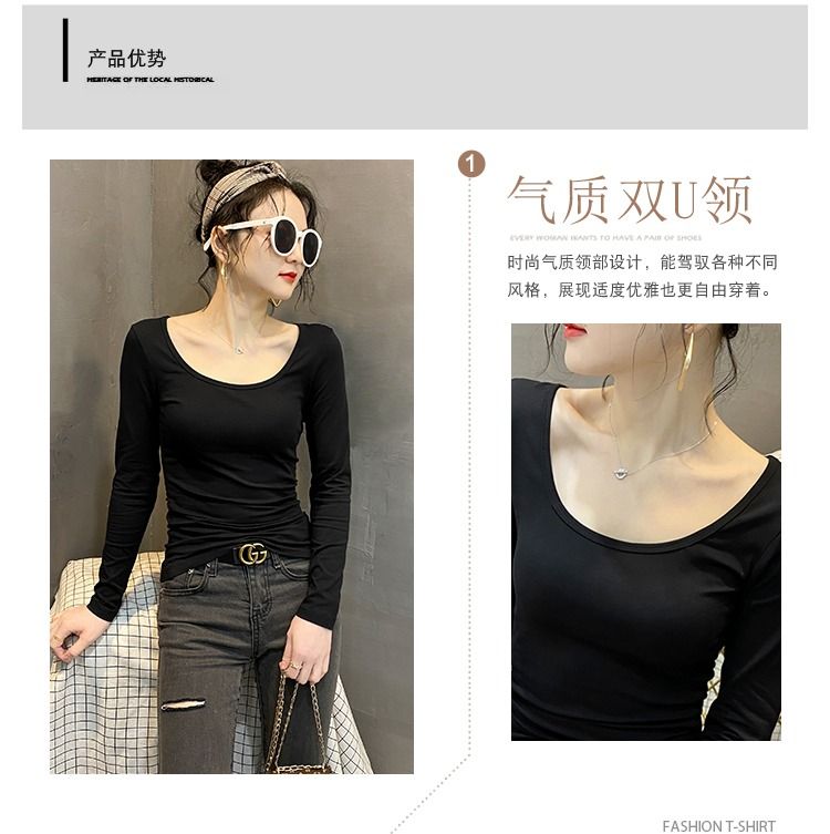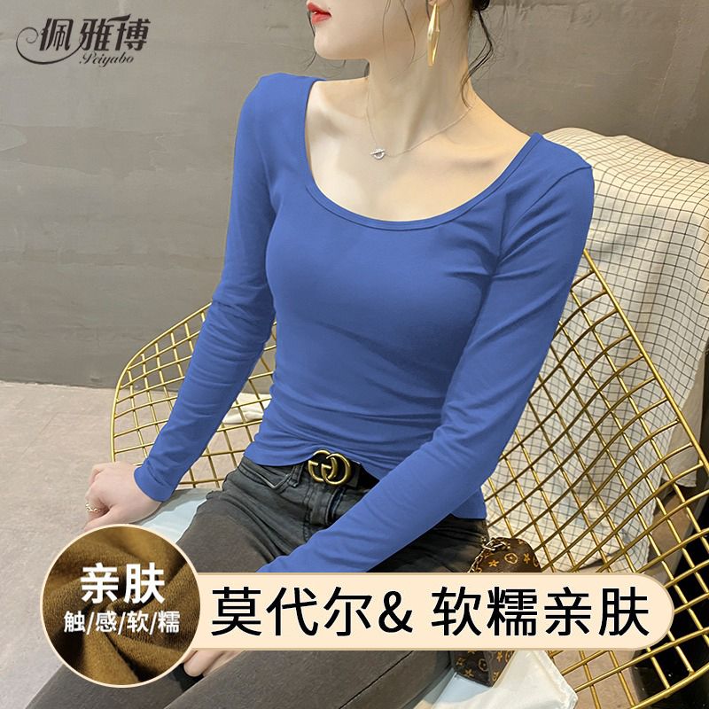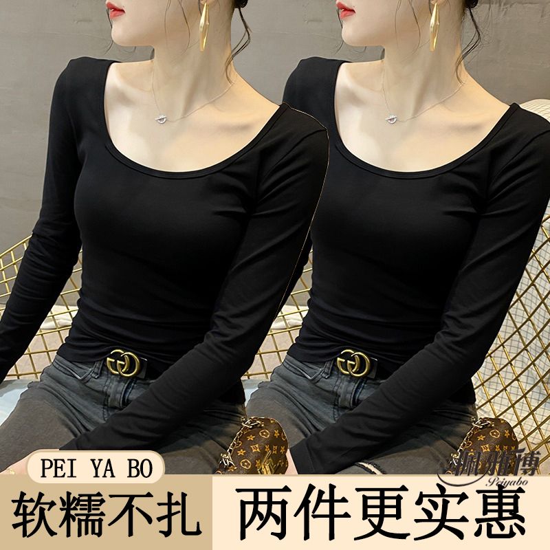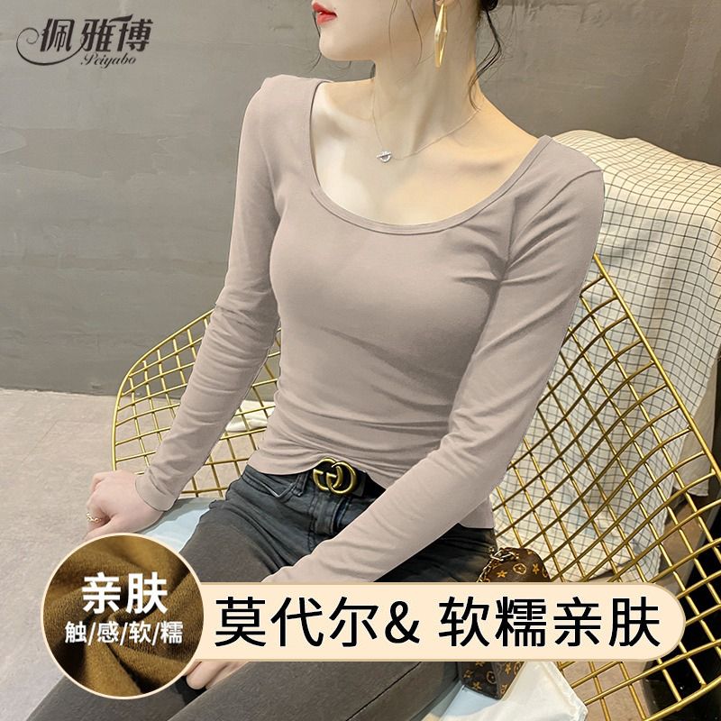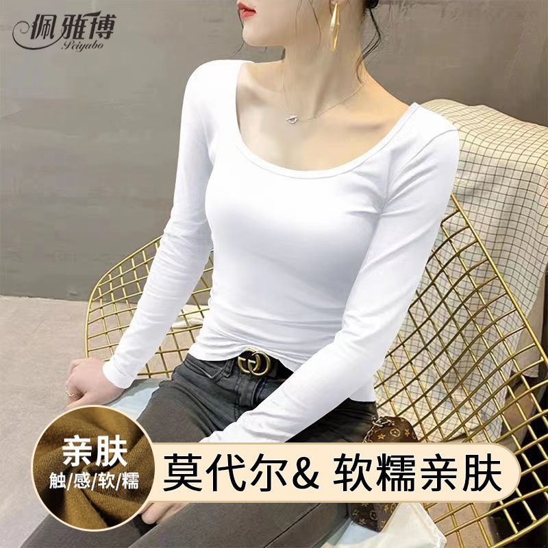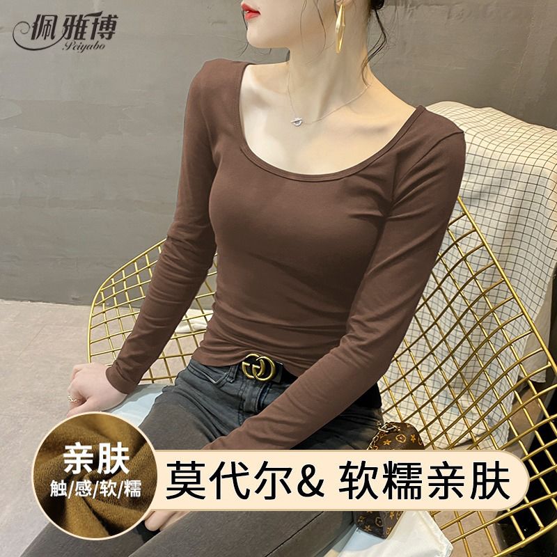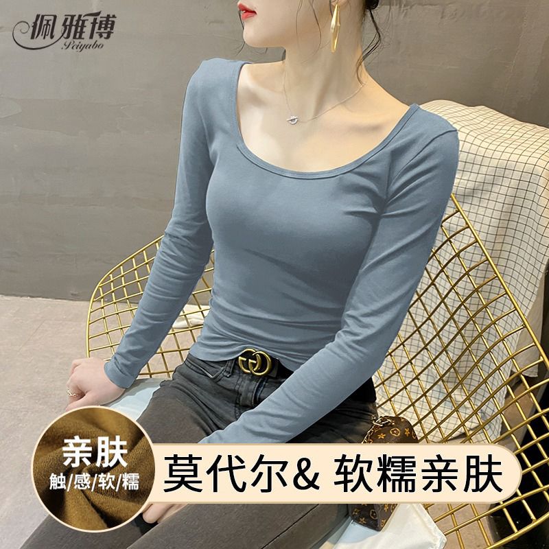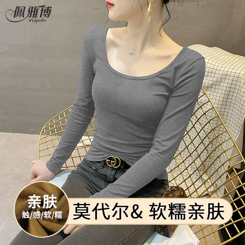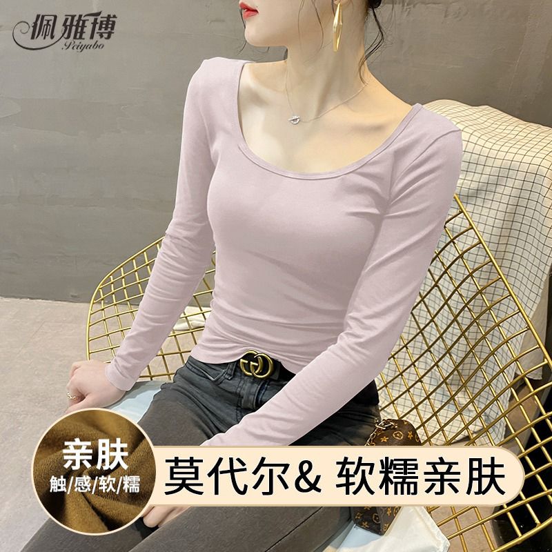 莫代尔打底衫女春秋冬2024上衣黑色修身T恤u低领内搭欧货洋气长袖