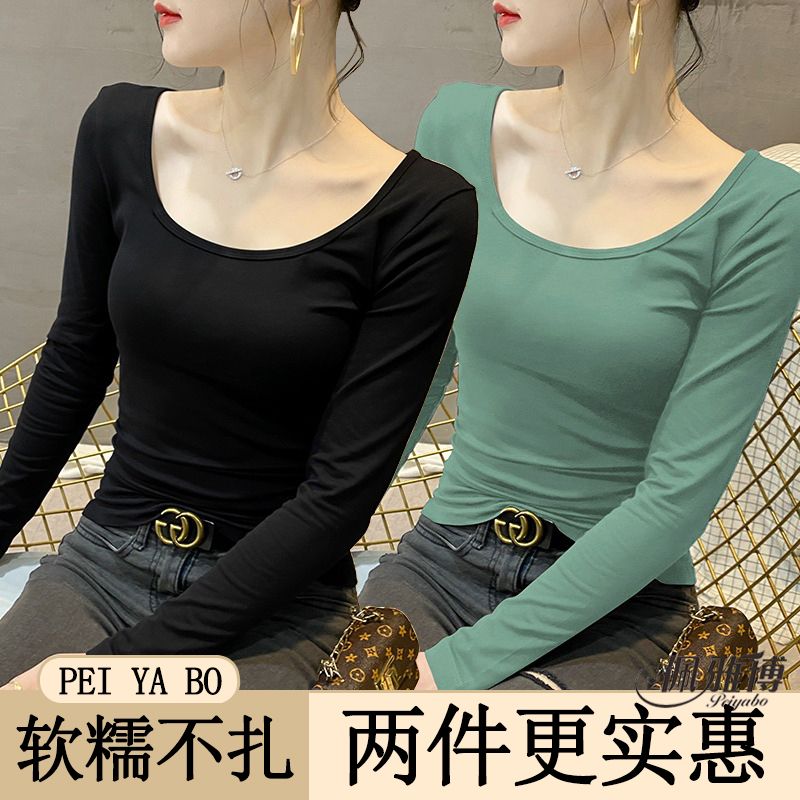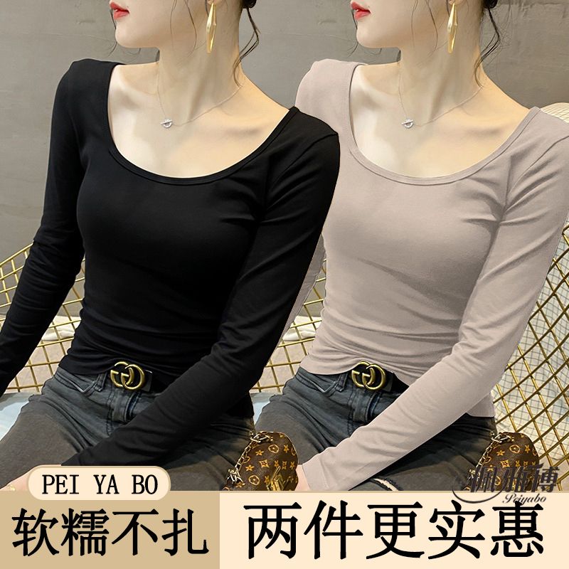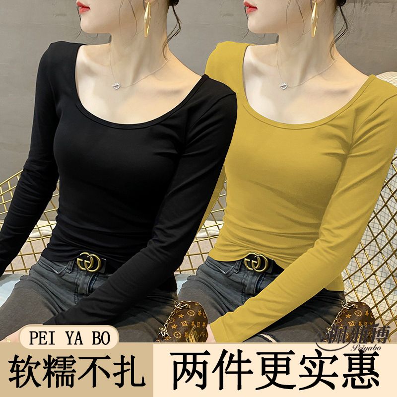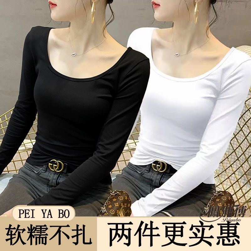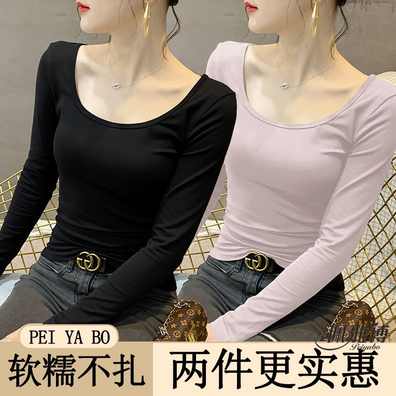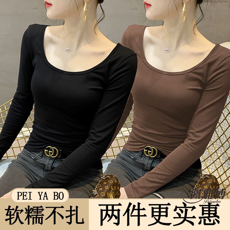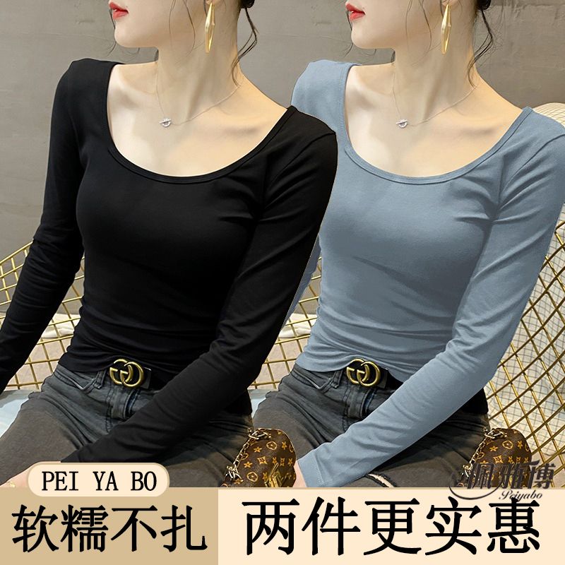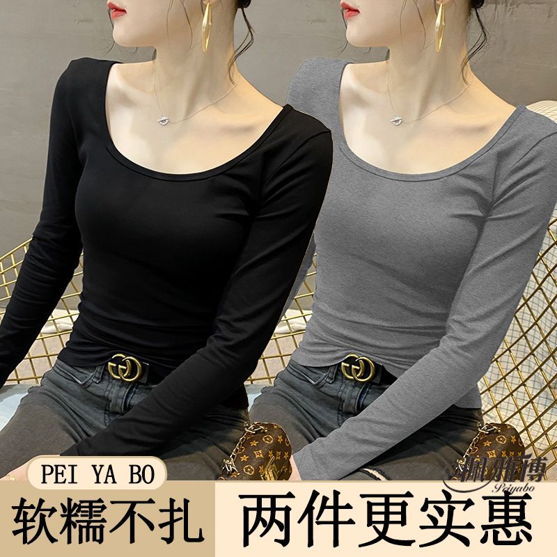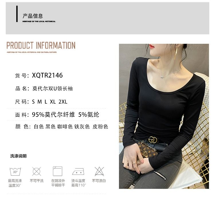 莫代尔打底衫女春秋冬2024上衣黑色修身T恤u低领内搭欧货洋气长袖