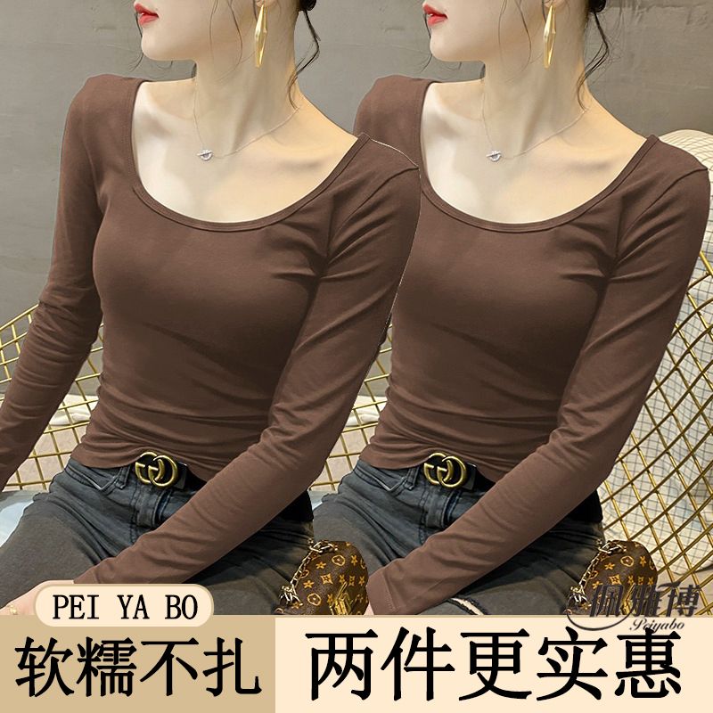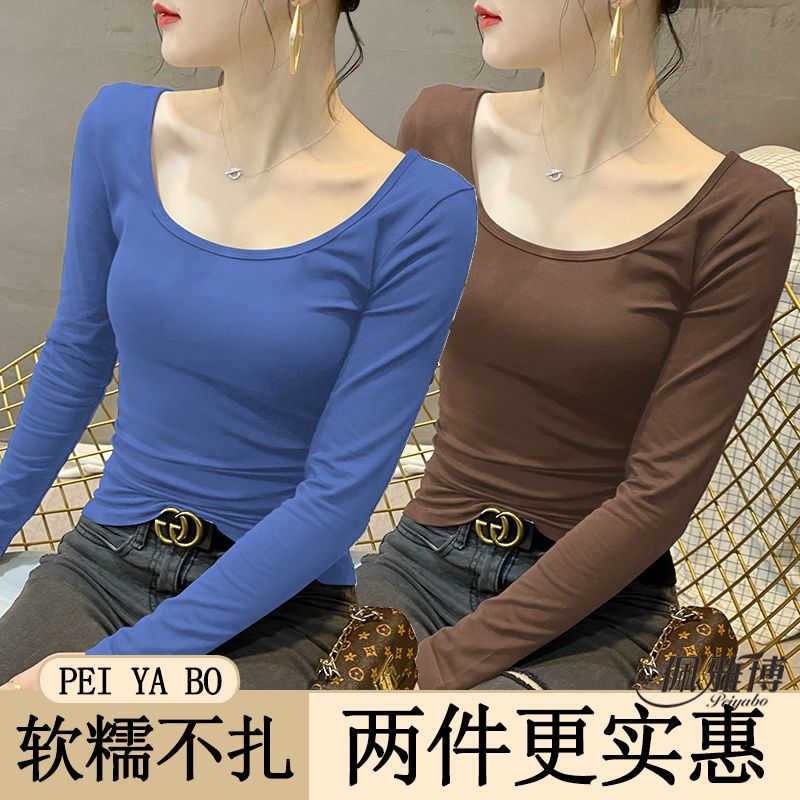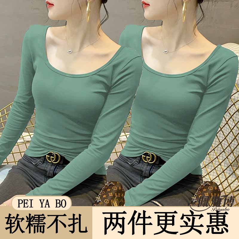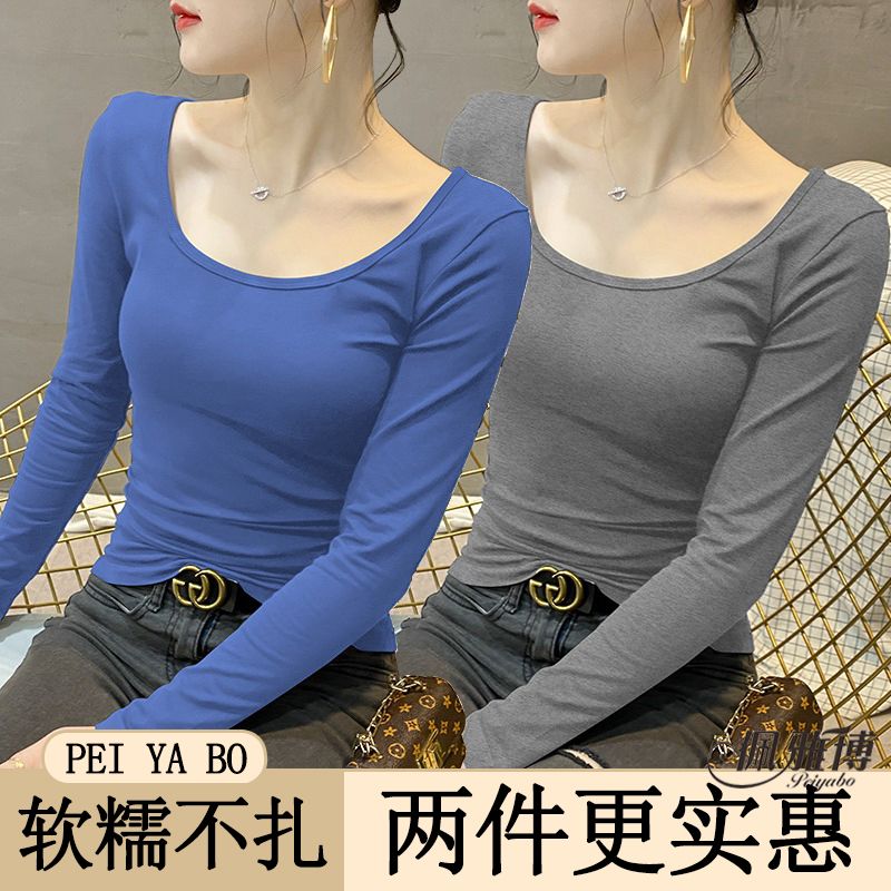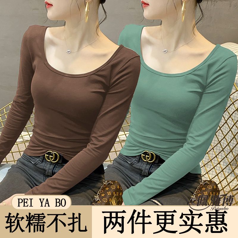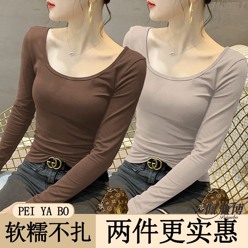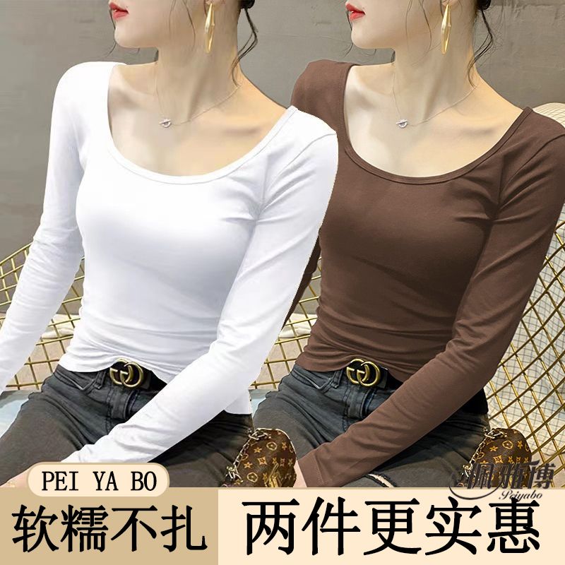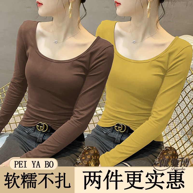 莫代尔打底衫女春秋冬2024上衣黑色修身T恤u低领内搭欧货洋气长袖