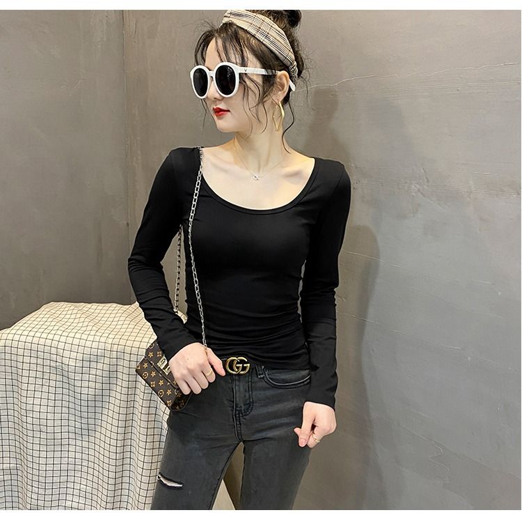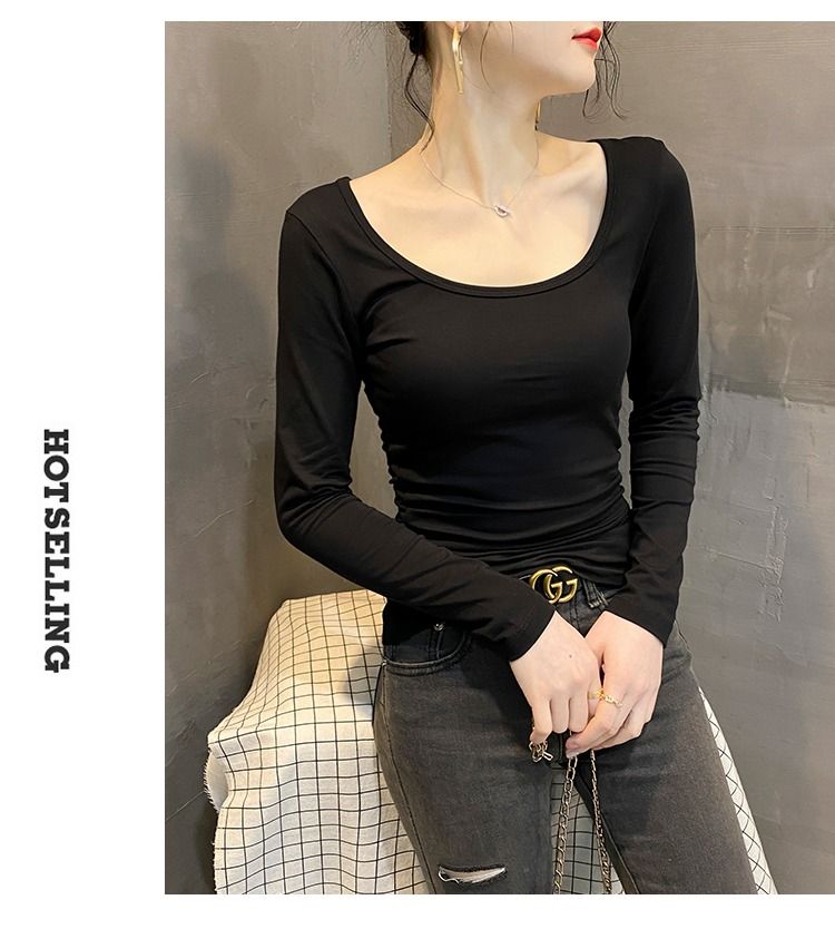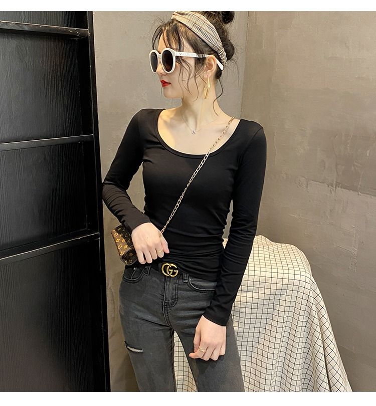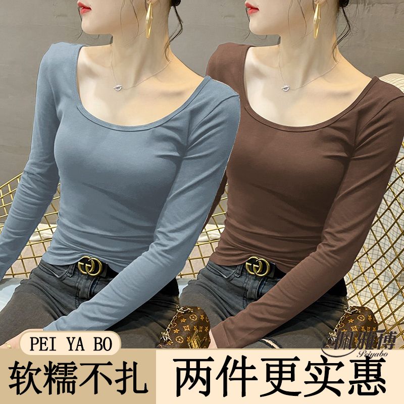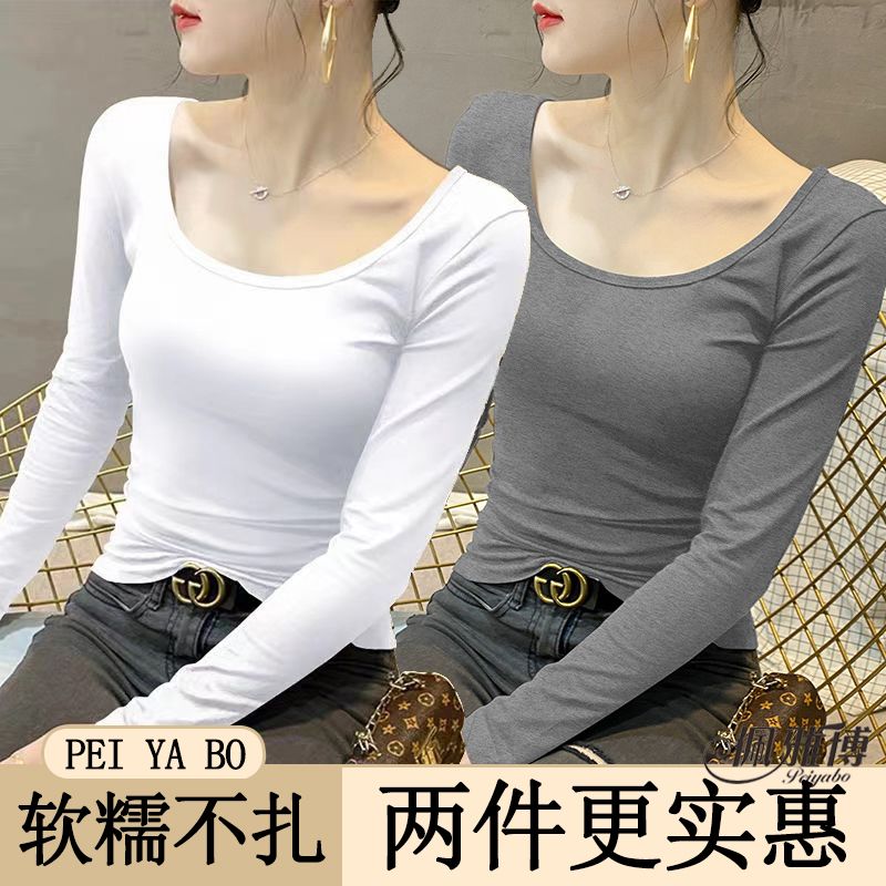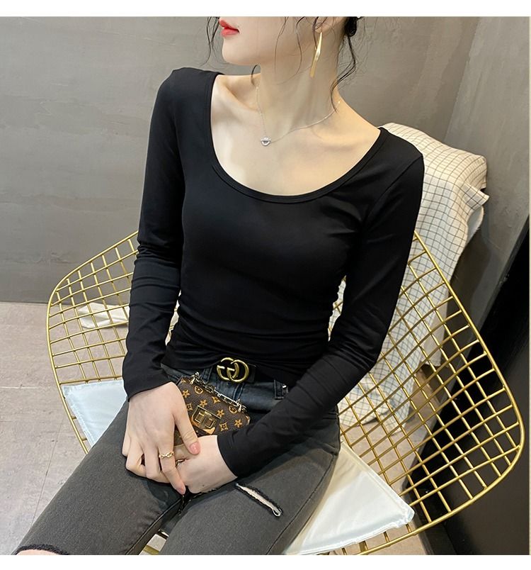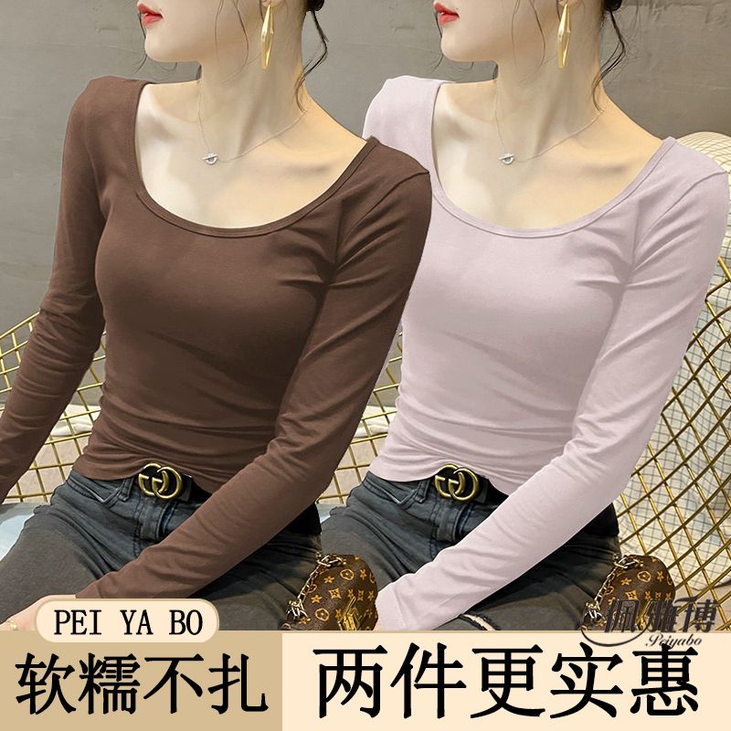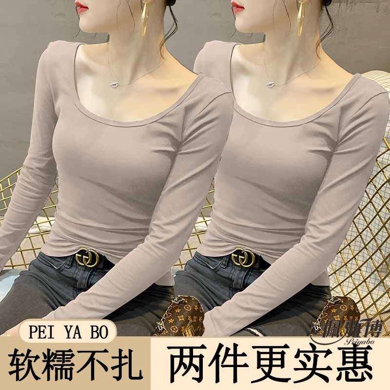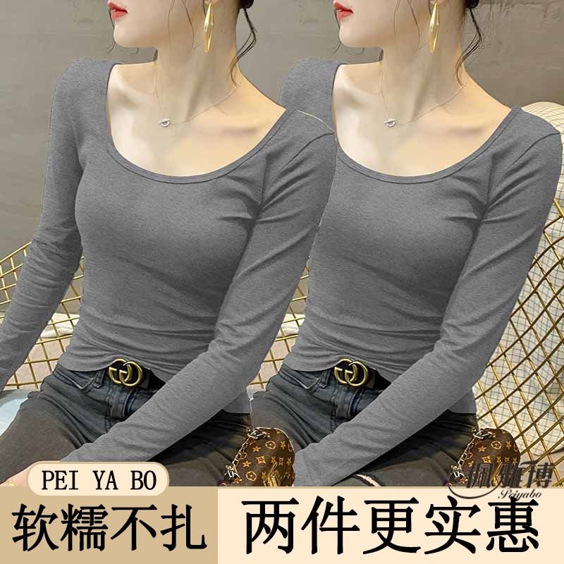 莫代尔打底衫女春秋冬2024上衣黑色修身T恤u低领内搭欧货洋气长袖