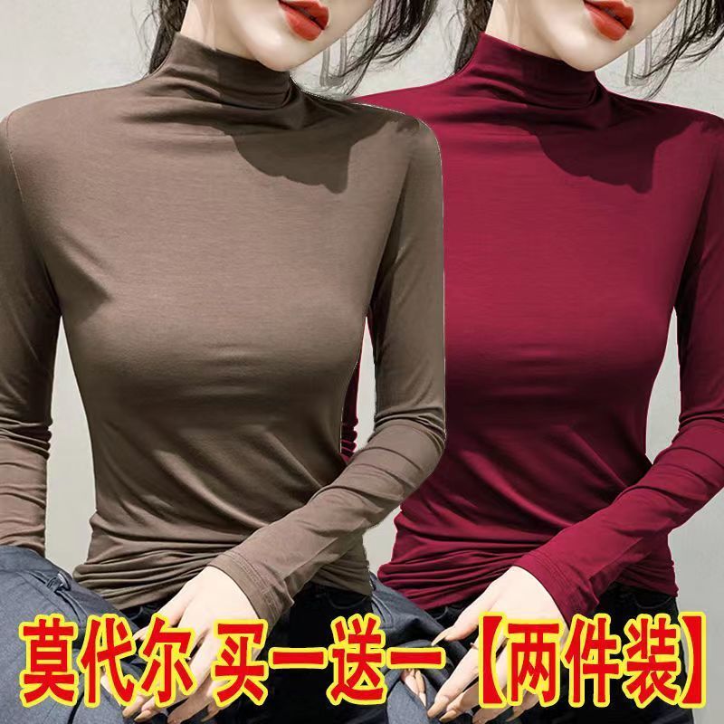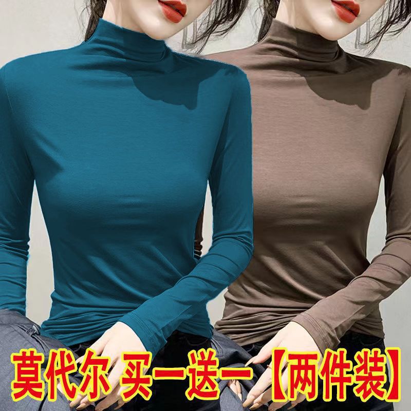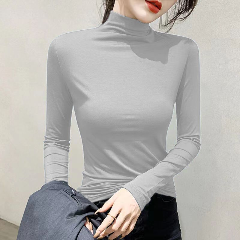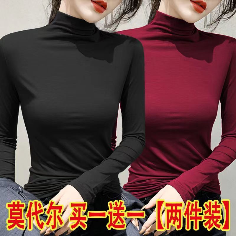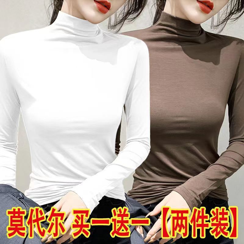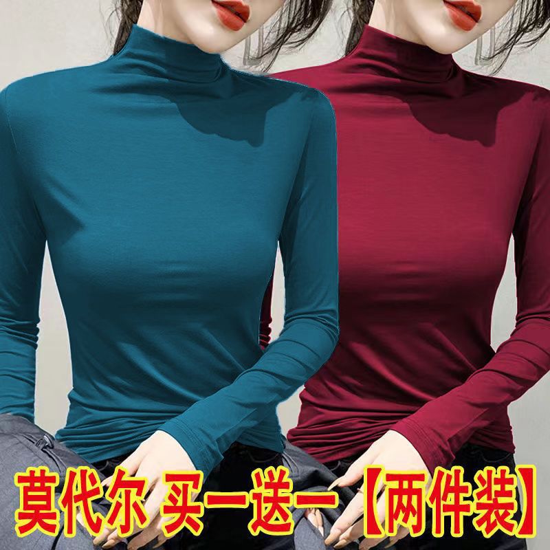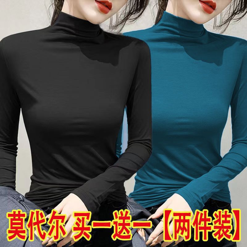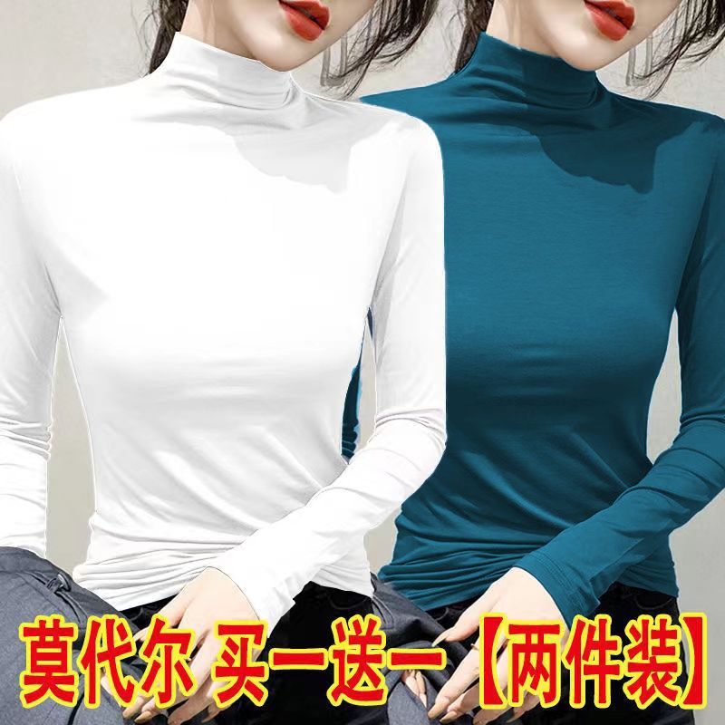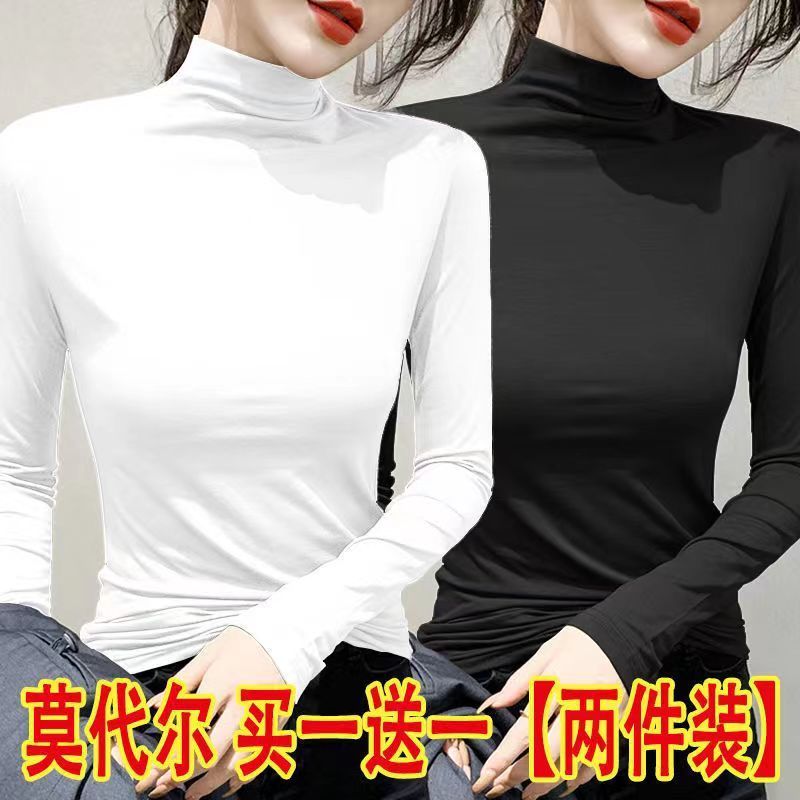 单/两件装 半高领打底衫女春秋冬韩版修身内搭长袖t恤女上衣服