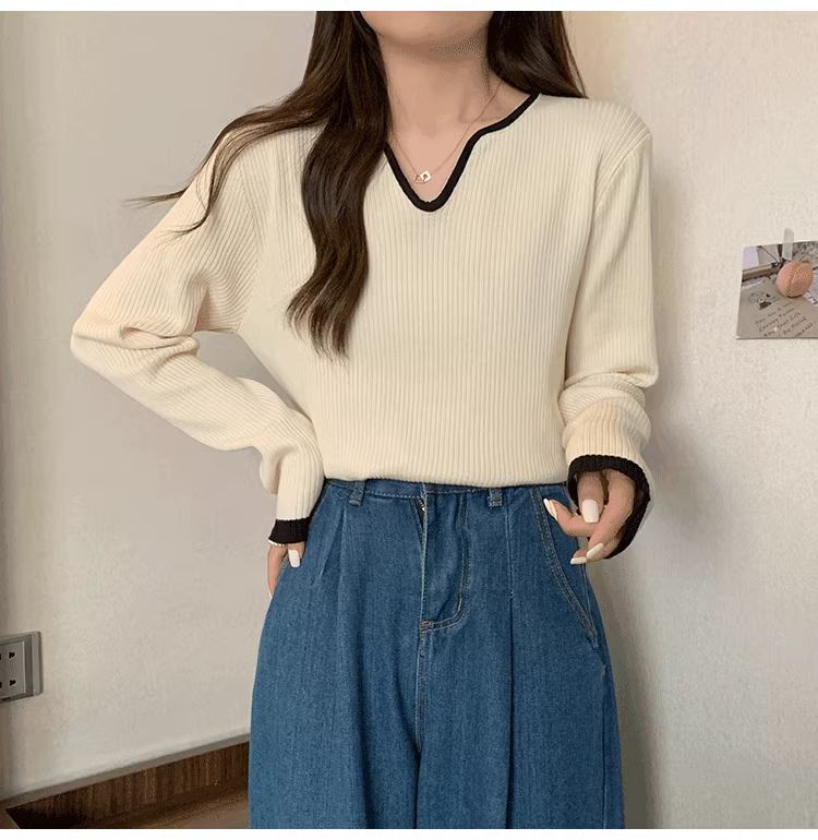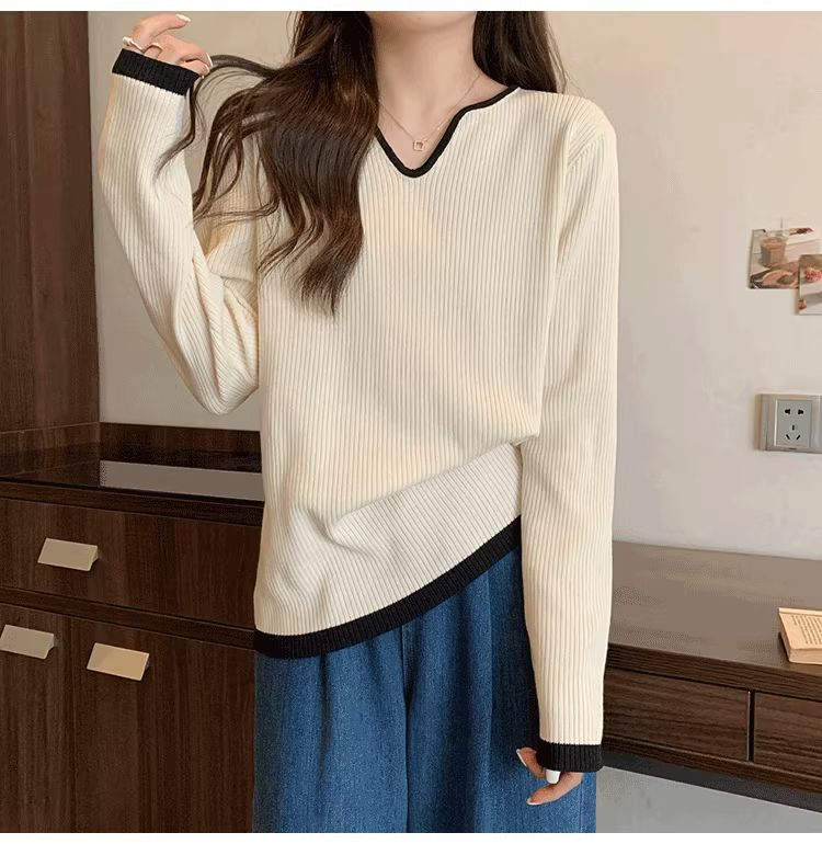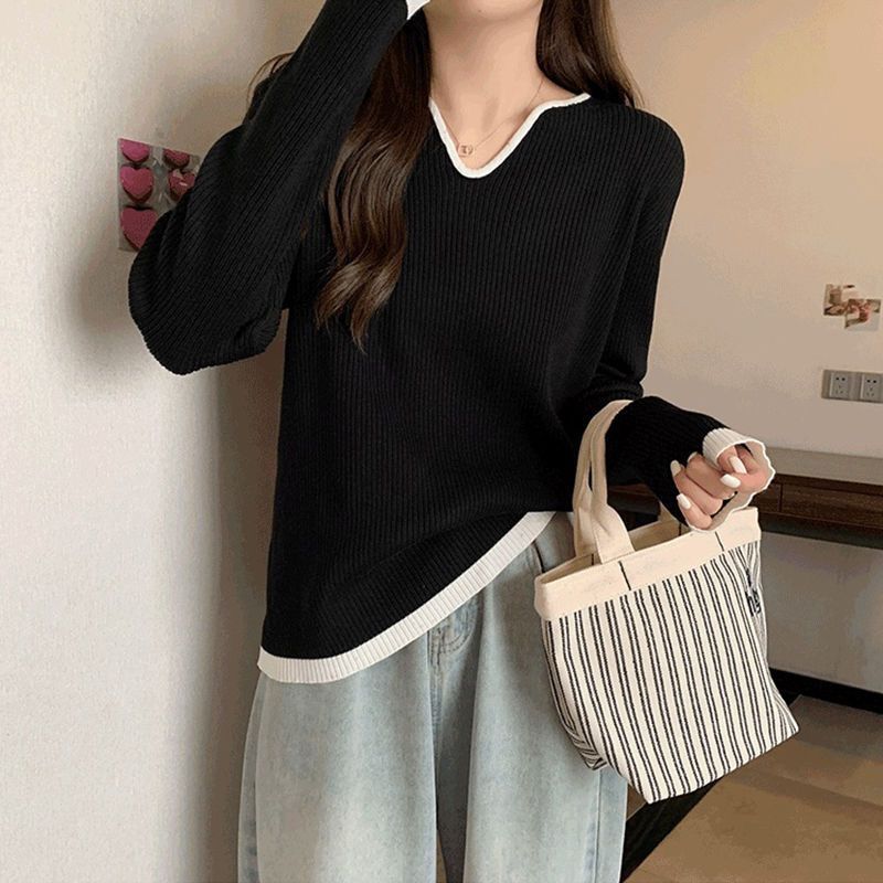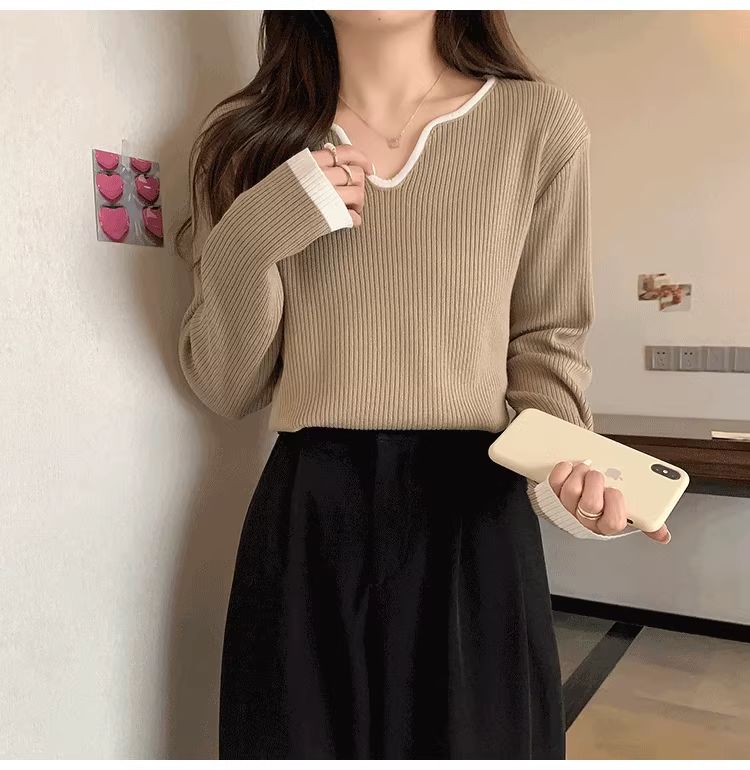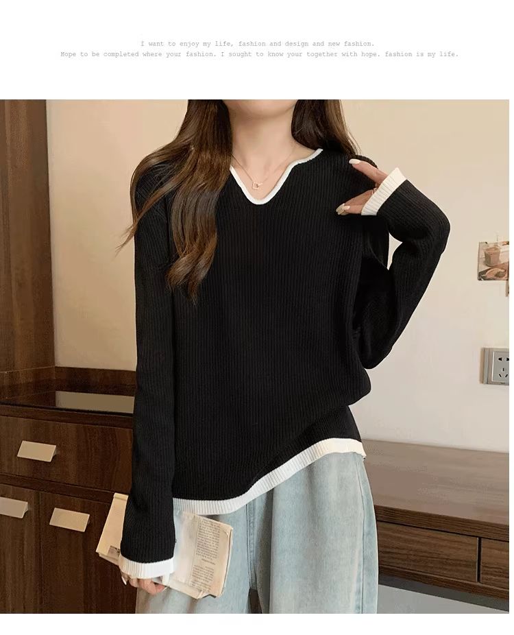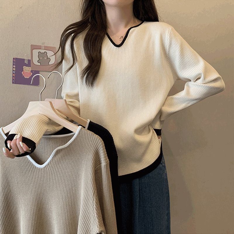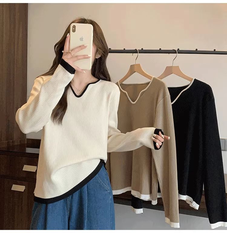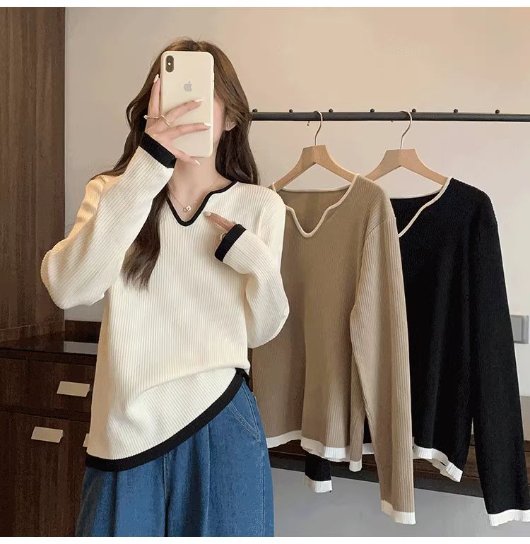 单/两件德绒v领宽松遮肉显瘦保暖打底衫女秋冬大码时尚百搭上衣潮
