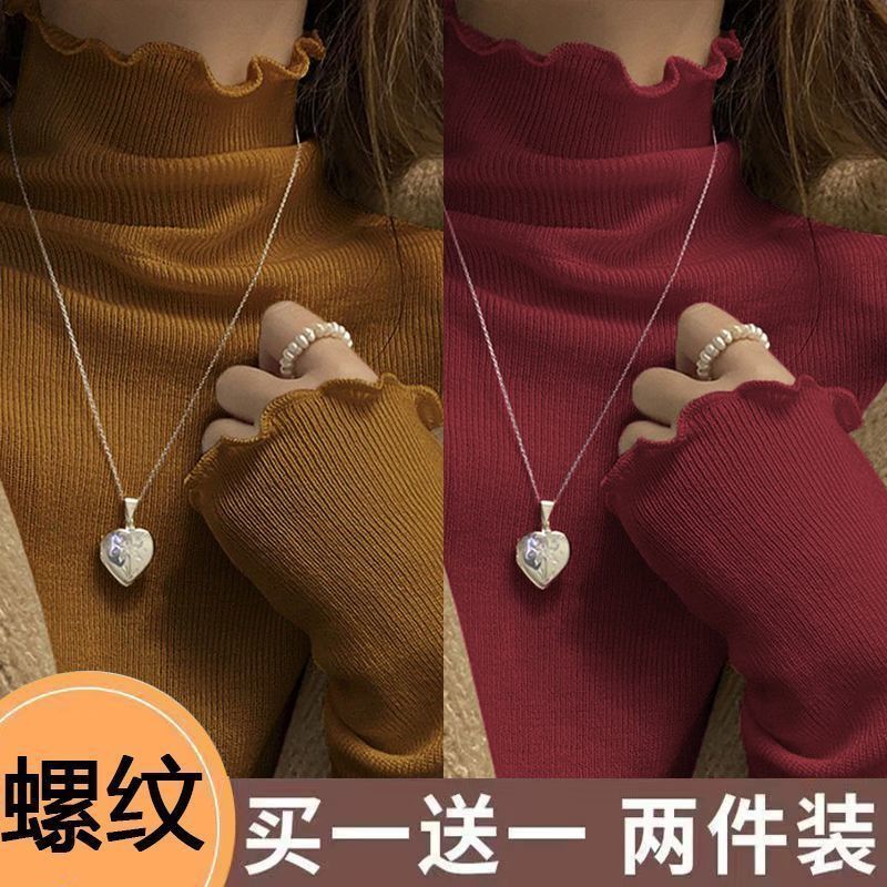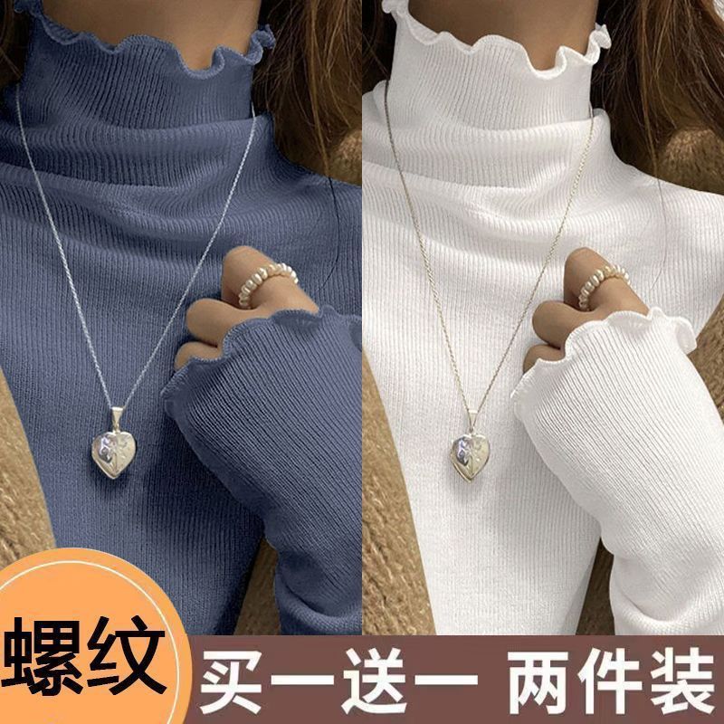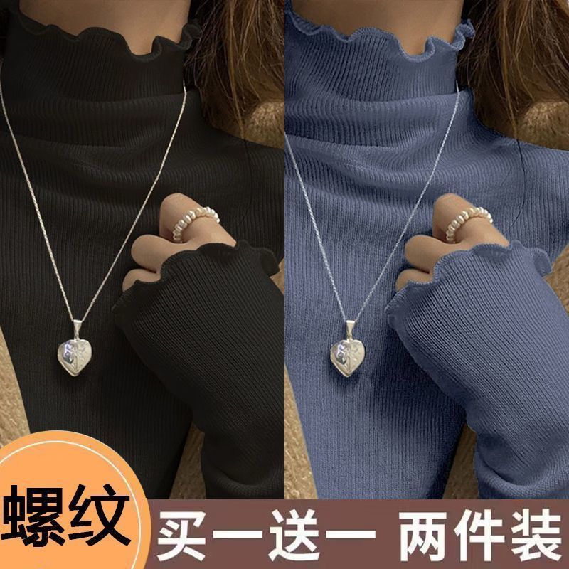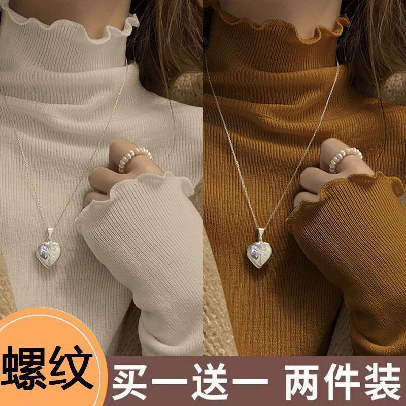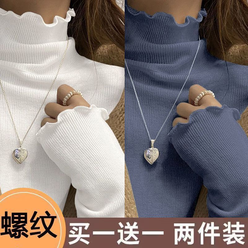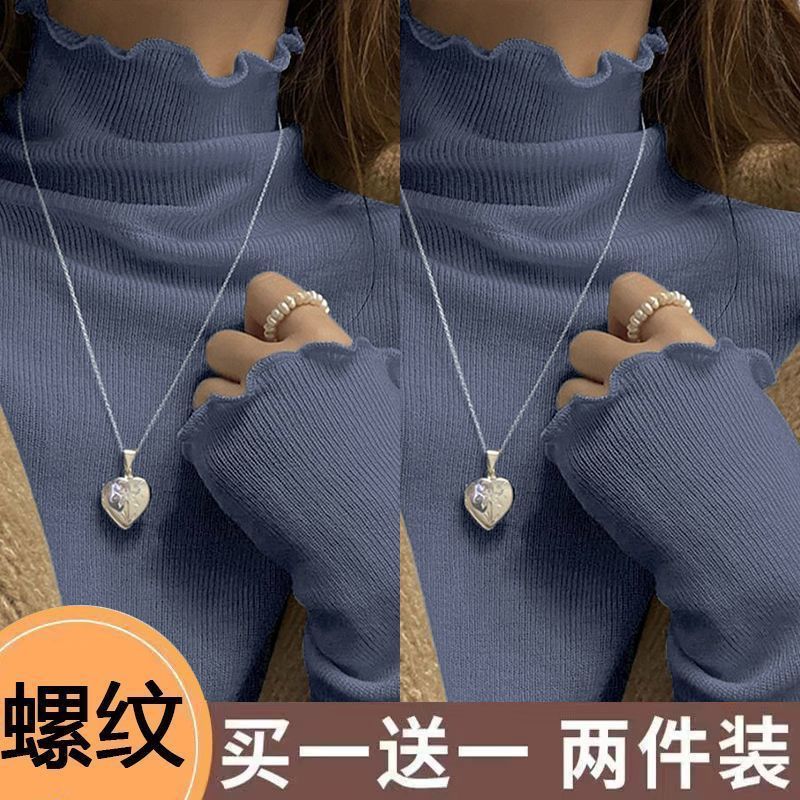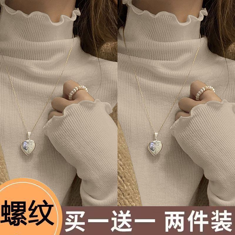 单/两件装 半高领打底衫女春秋新款韩版修身内搭长袖t恤女上衣女