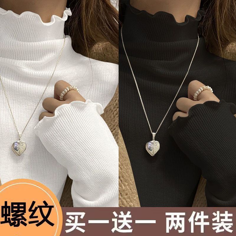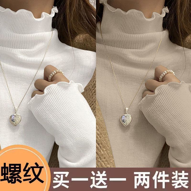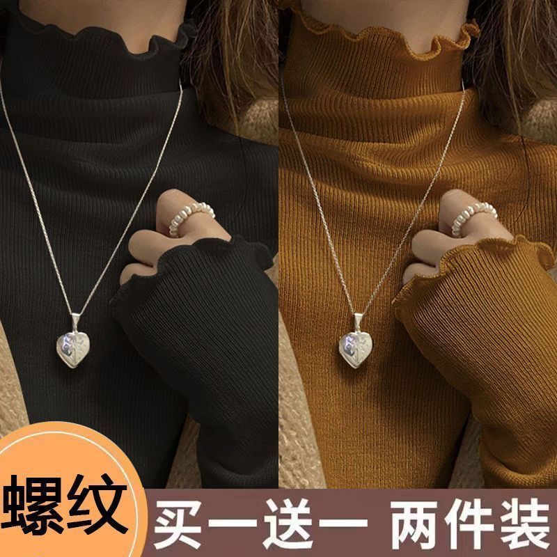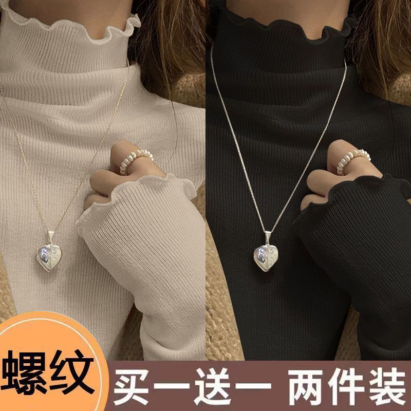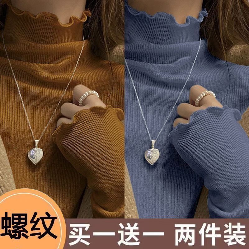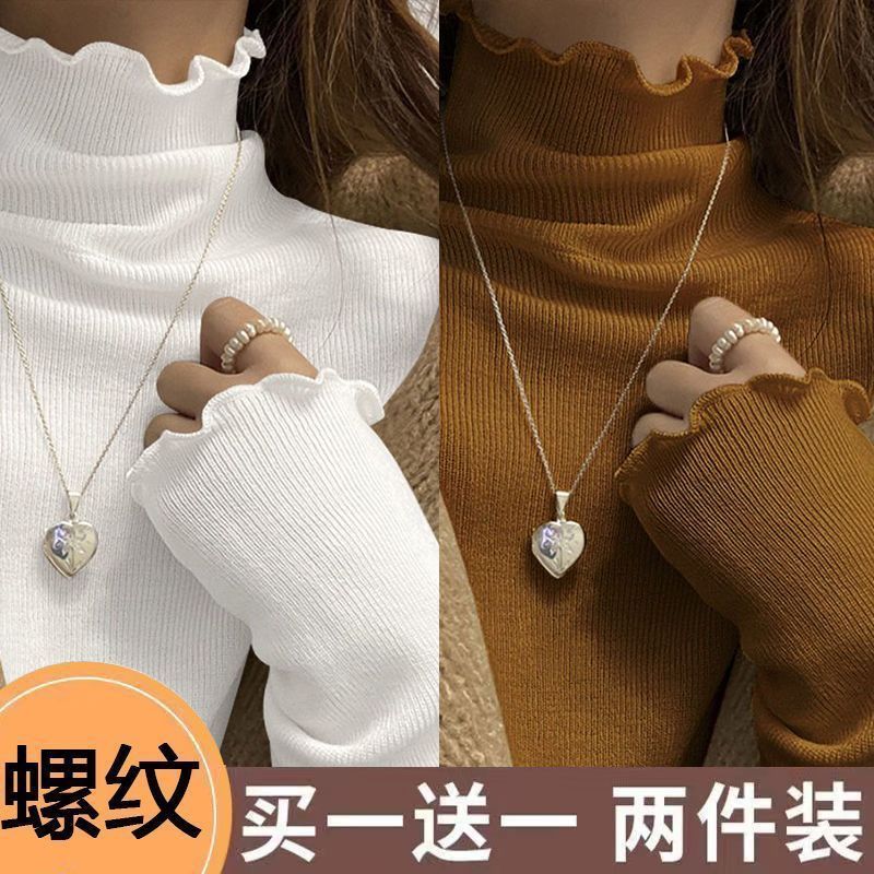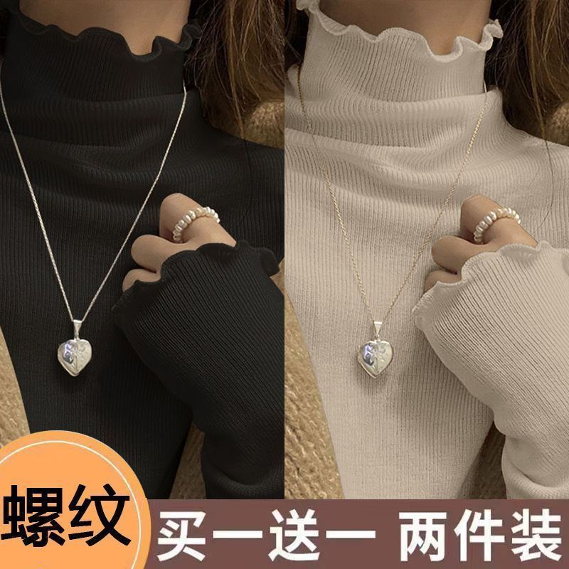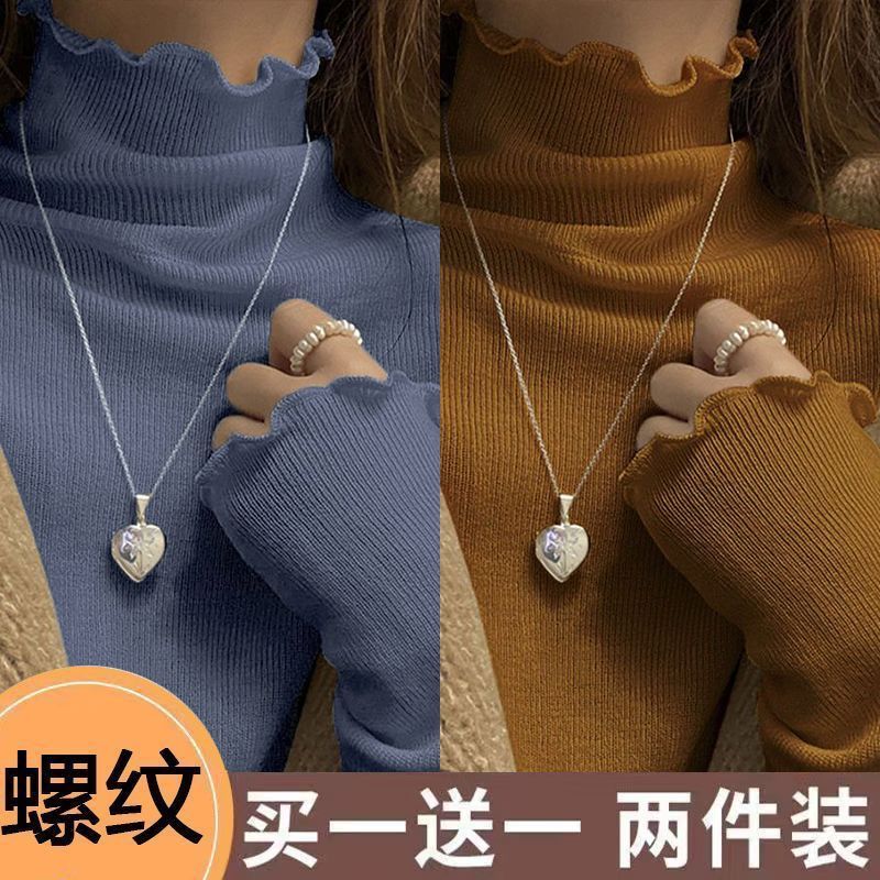 单/两件装 半高领打底衫女春秋新款韩版修身内搭长袖t恤女上衣女