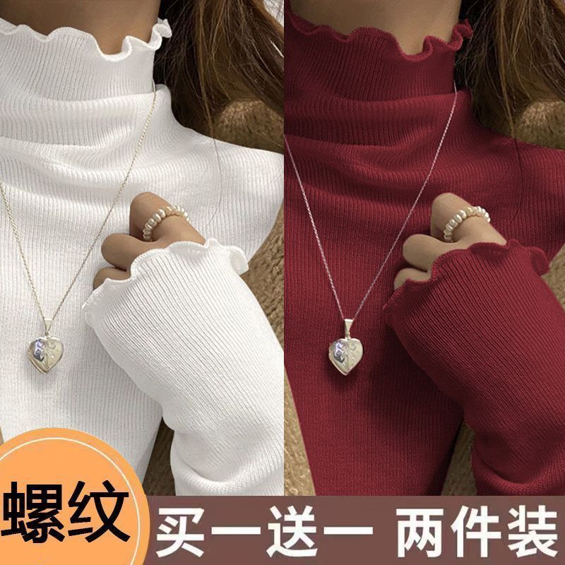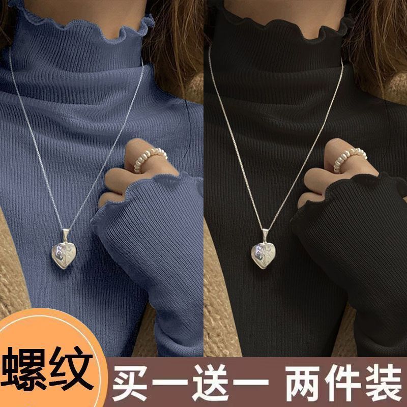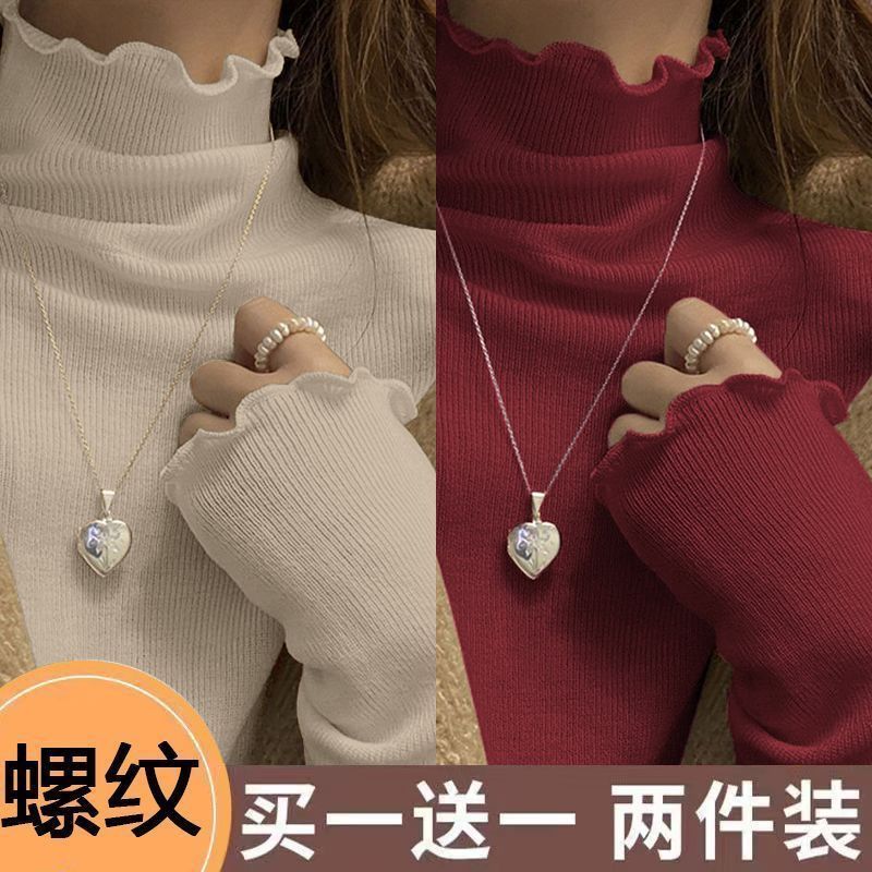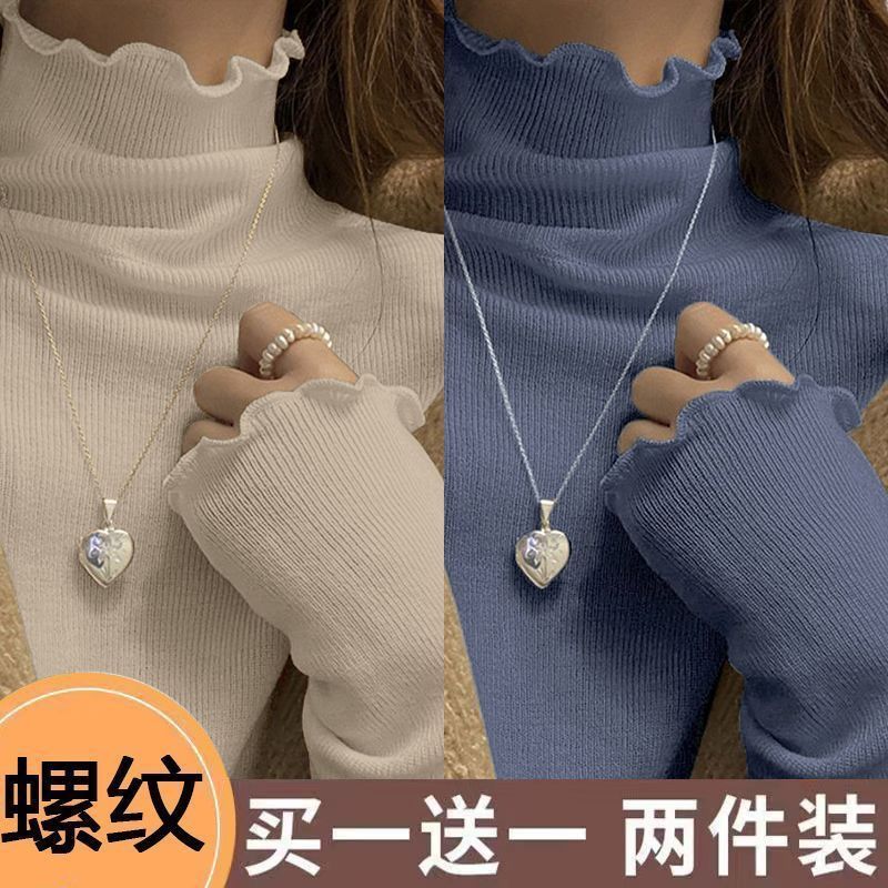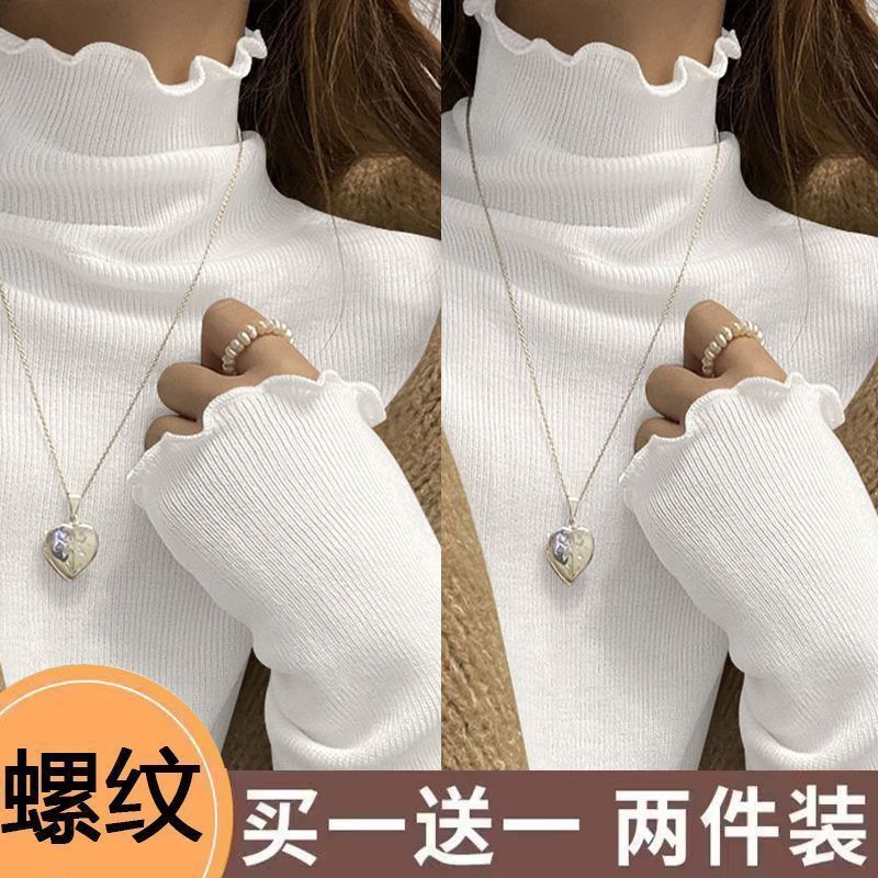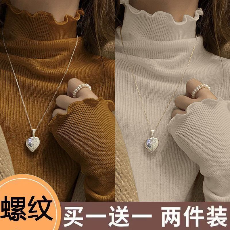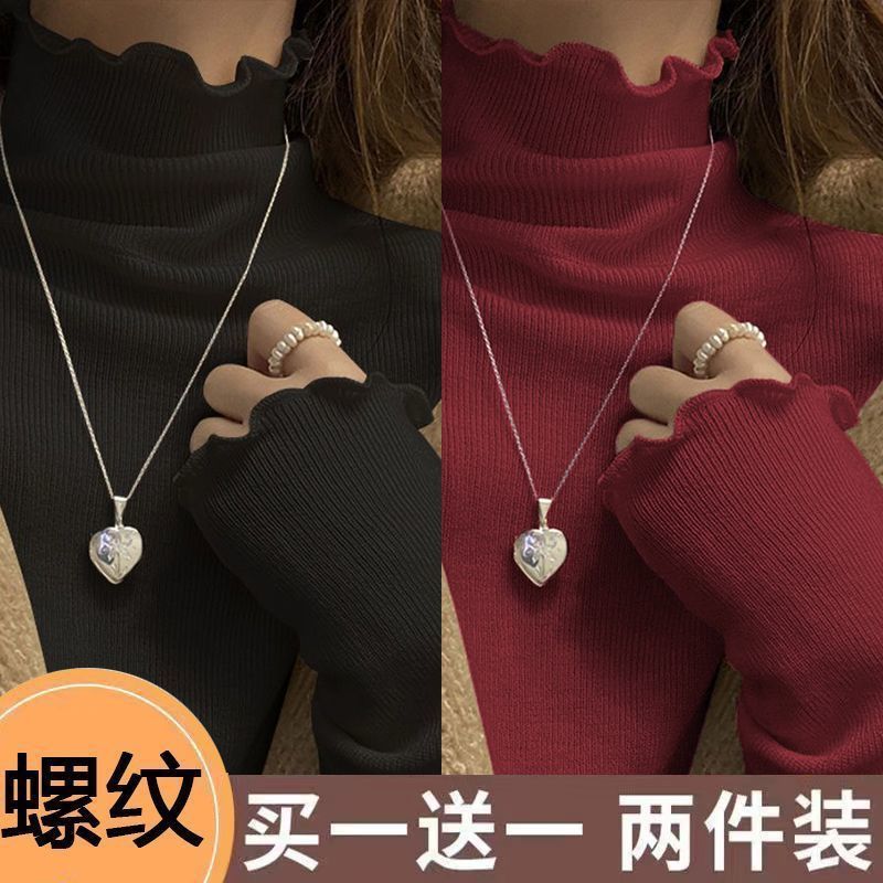 单/两件装 半高领打底衫女春秋新款韩版修身内搭长袖t恤女上衣女