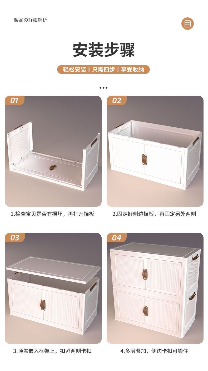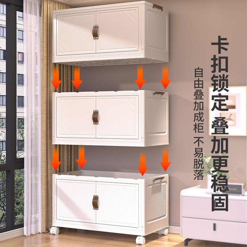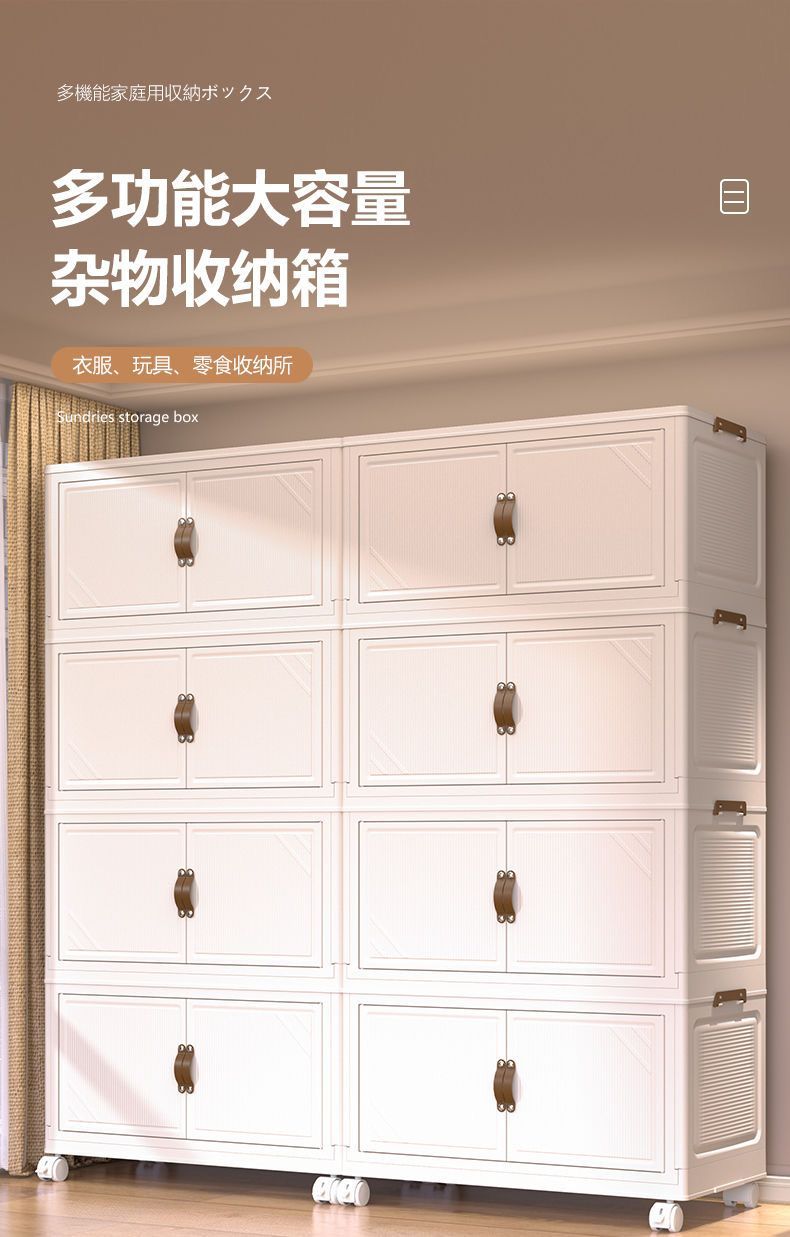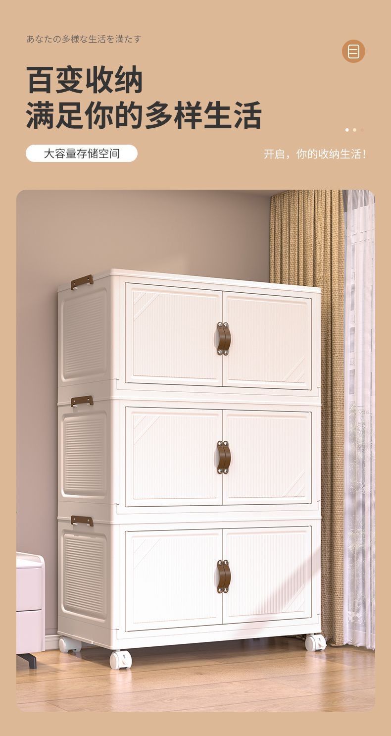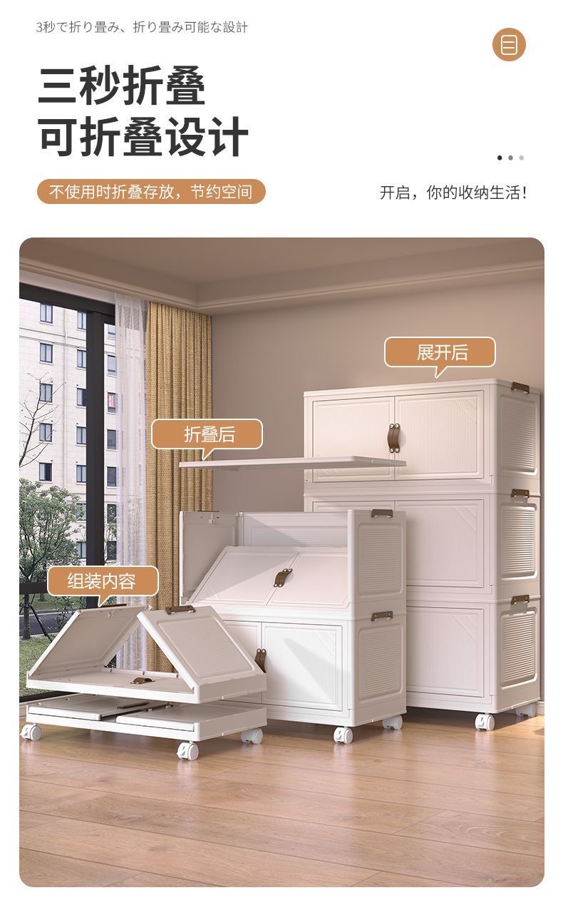 收纳箱前开门式储物柜子免安装折叠箱多层塑料收纳柜卧室客厅收纳