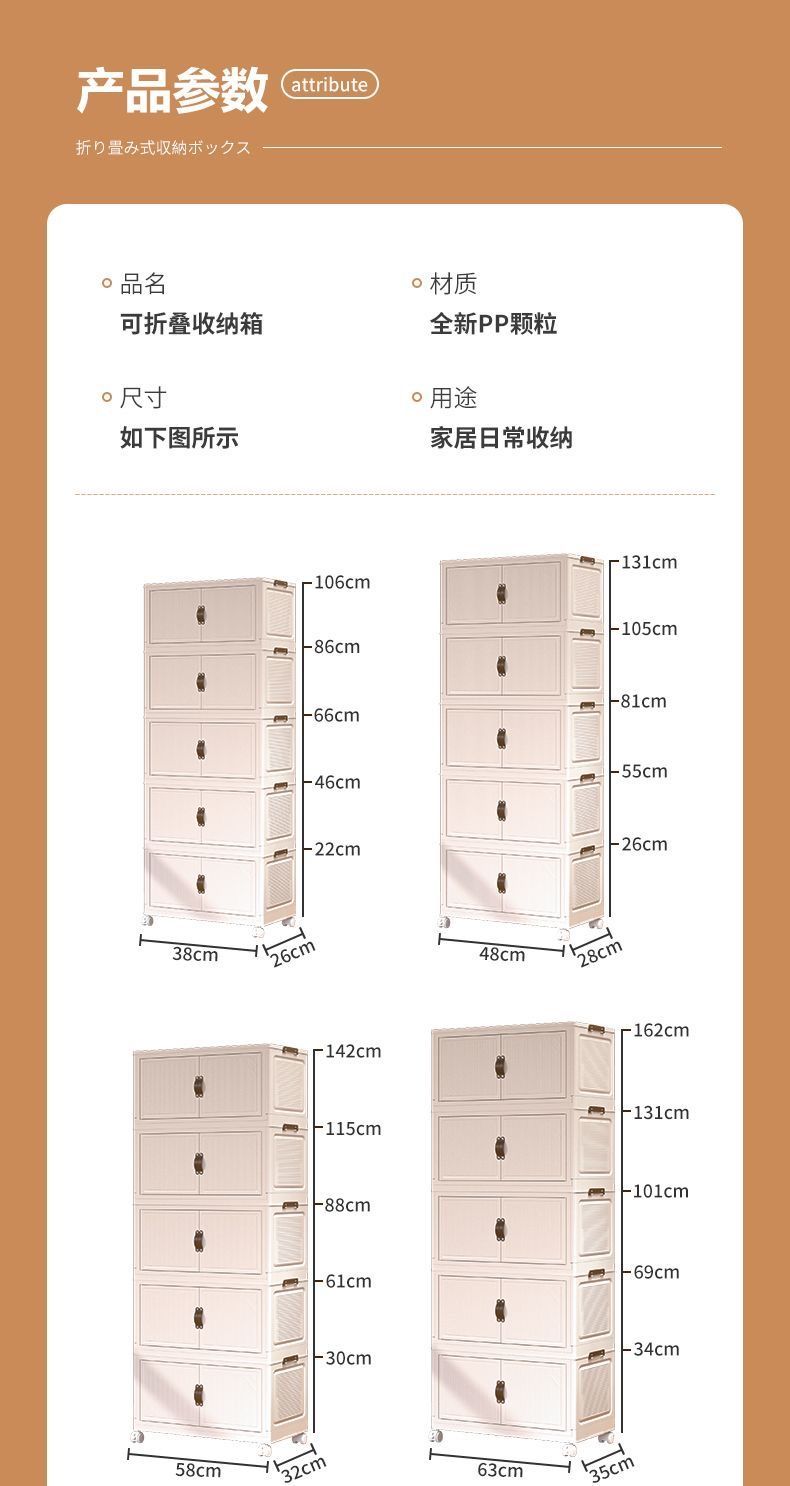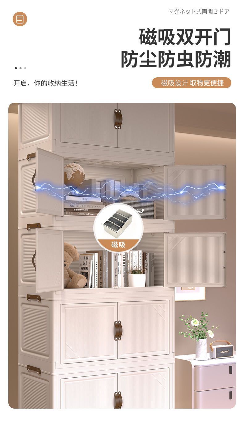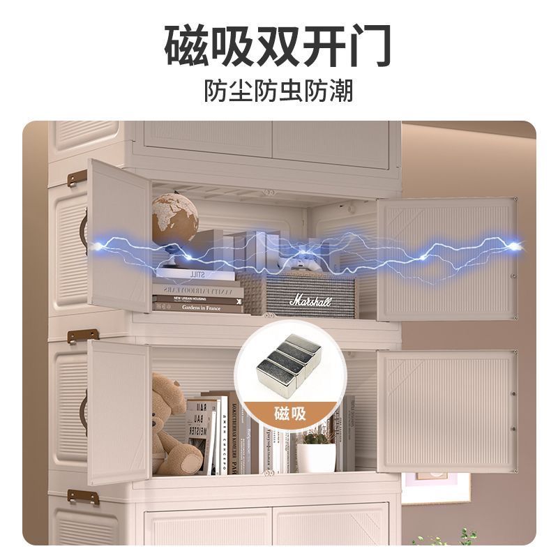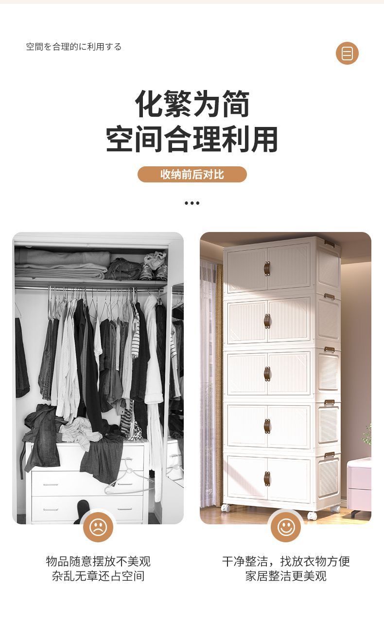 收纳箱前开门式储物柜子免安装折叠箱多层塑料收纳柜卧室客厅收纳