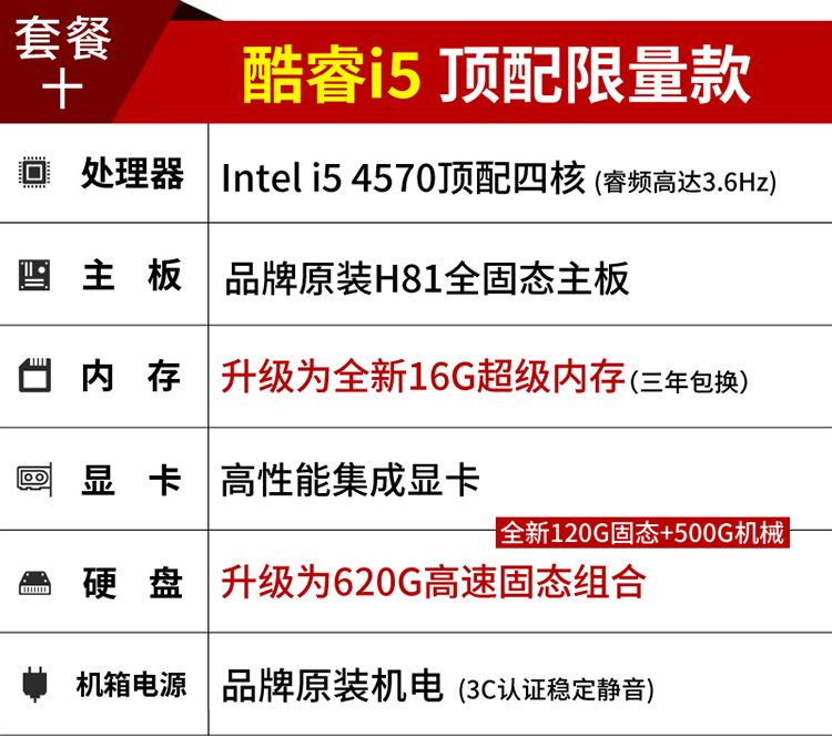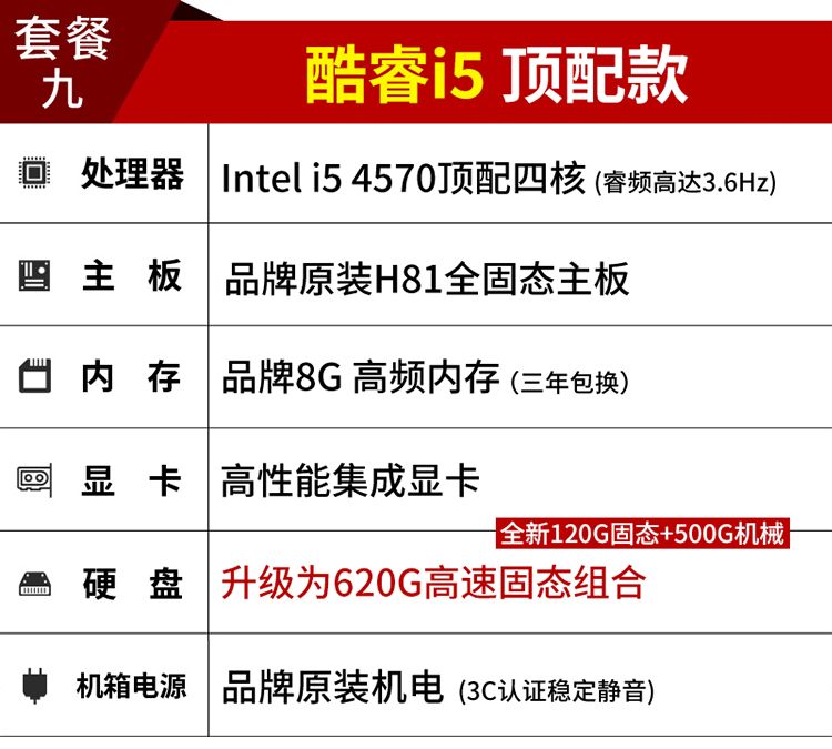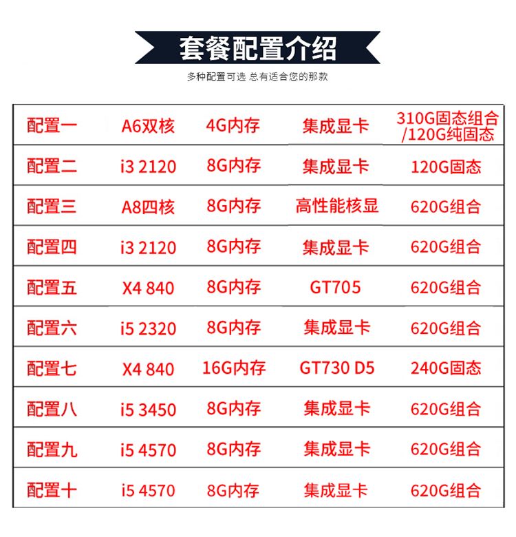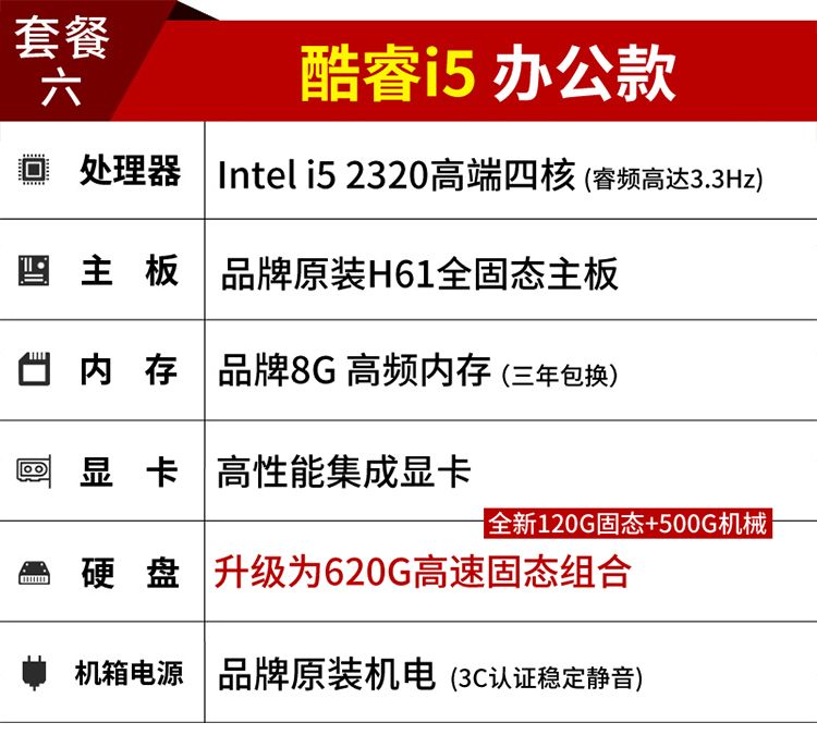 | 5 套餐五主机+键盘鼠标+19寸显示器 | USD $101.49 | 999999 piece available |
