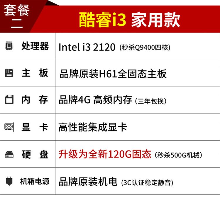 | 2 套餐二主机+键盘鼠标+19寸显示器 | USD $70.61 | 999999 piece available |