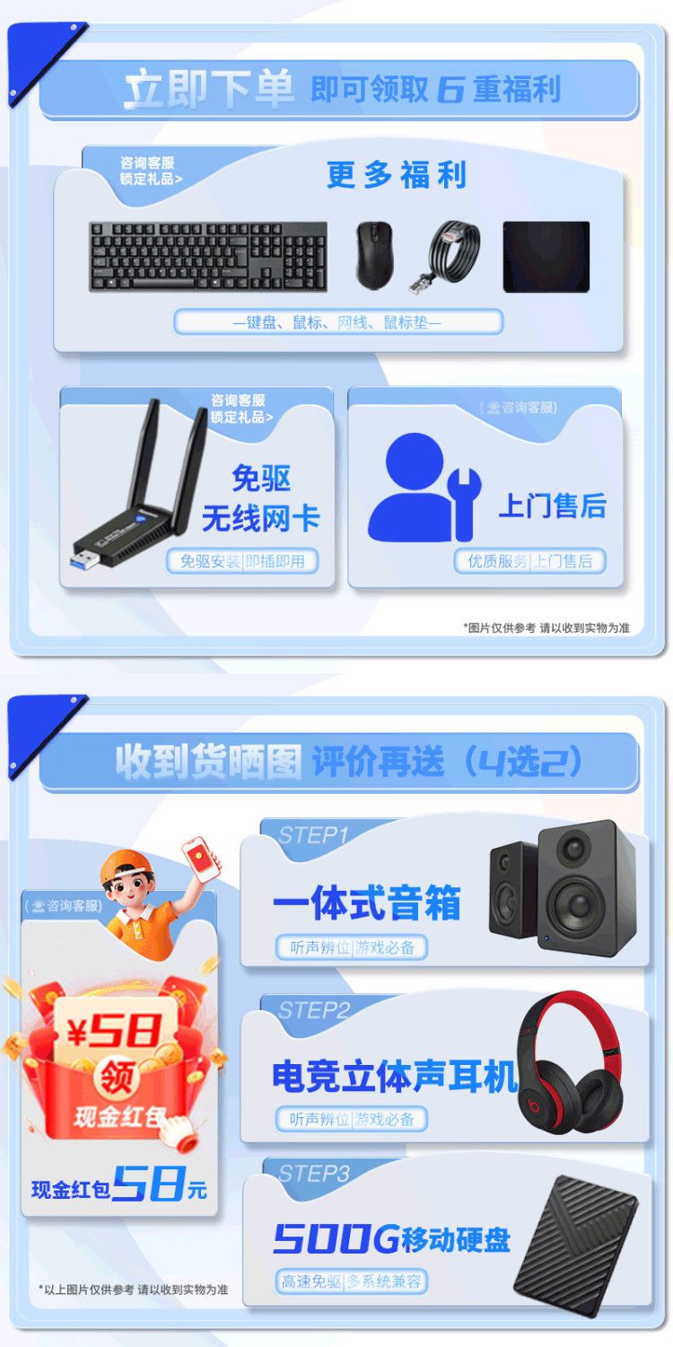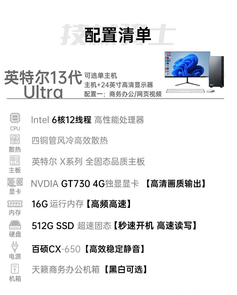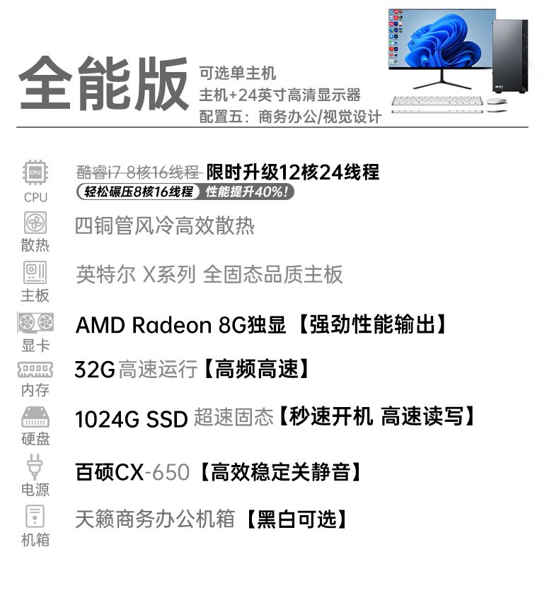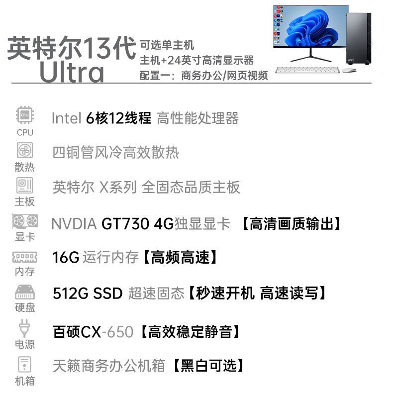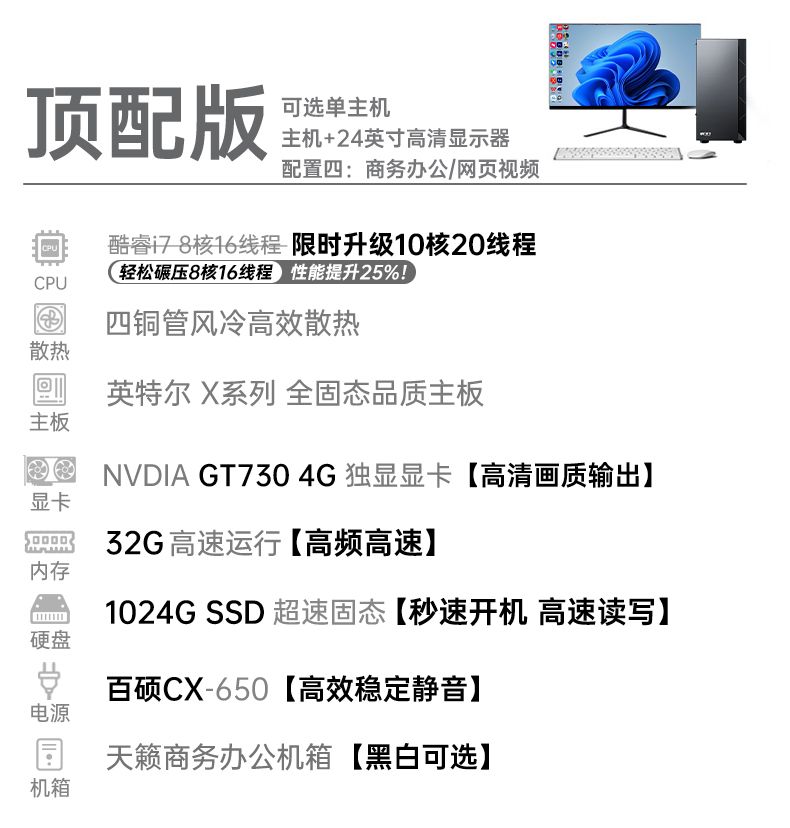 14代英特尔i7/i9酷睿台式电脑办公整机独显客服专用企业采购套装