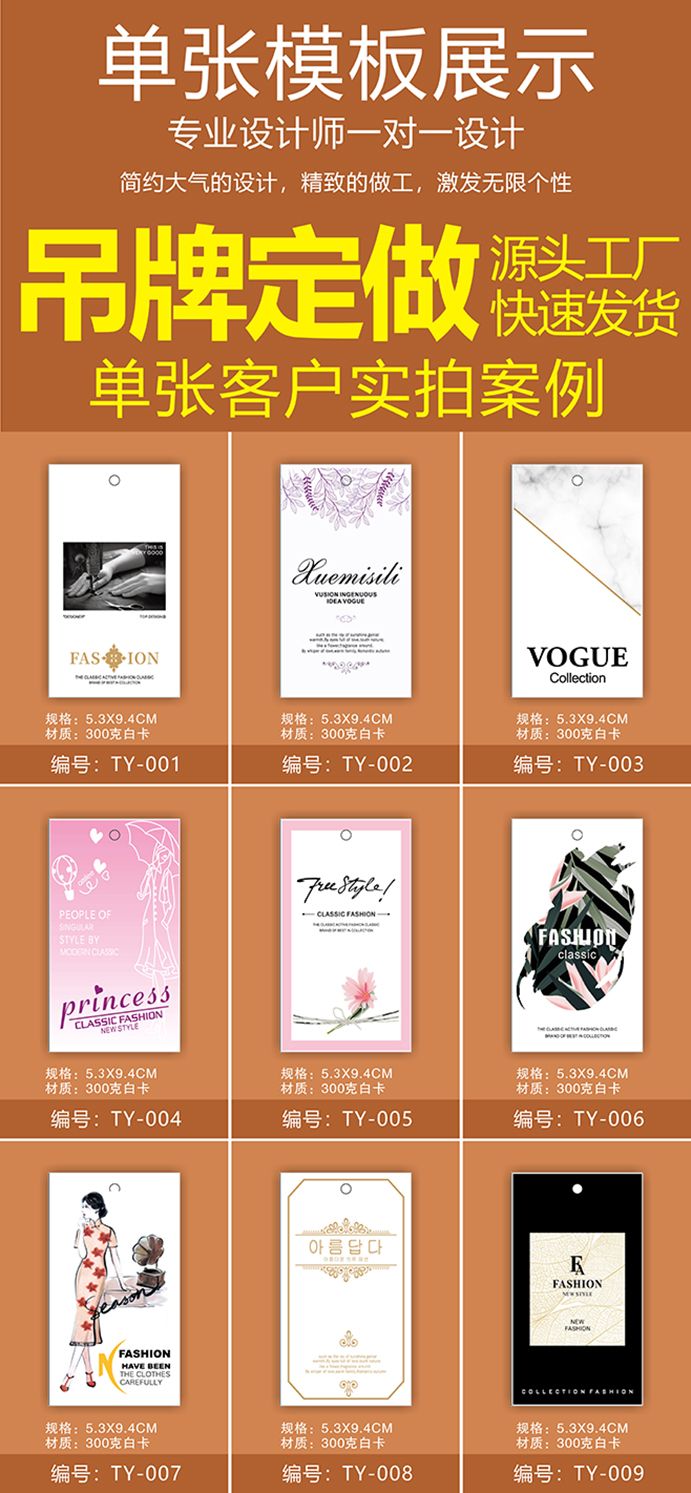 现货通用吊牌衣服商标定制挂牌标签Logo定制男女装通用衣服商标