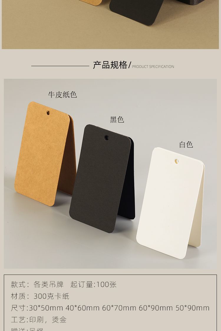 空白吊牌高档服装通用牛皮纸现货纸质标签吊卡黑白卡纸价格卡定制