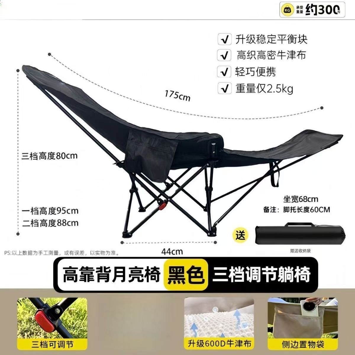 豪华三档月亮椅可坐可躺户外加高靠背便携式折叠椅