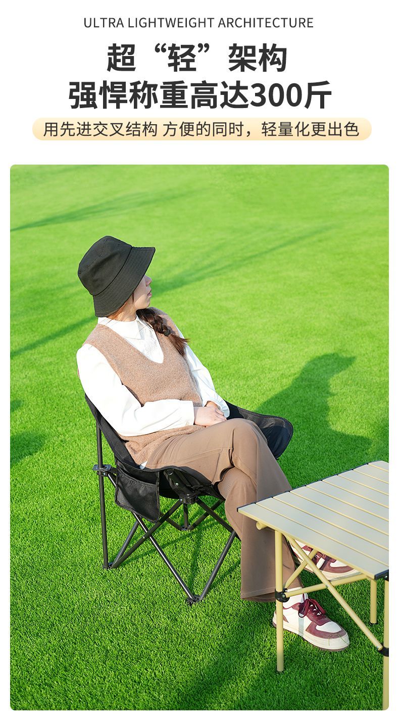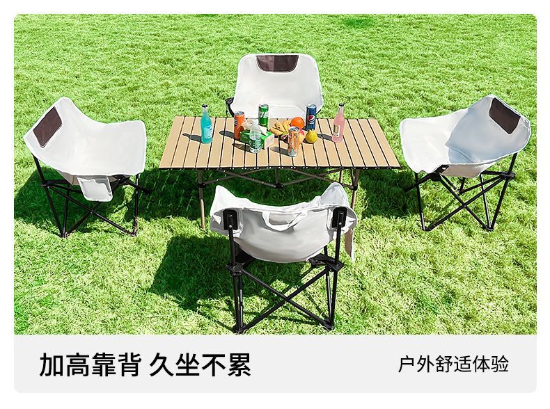 户外折叠桌椅套装椅子便携式桌子野餐懒人露营月亮便携折叠椅凳子