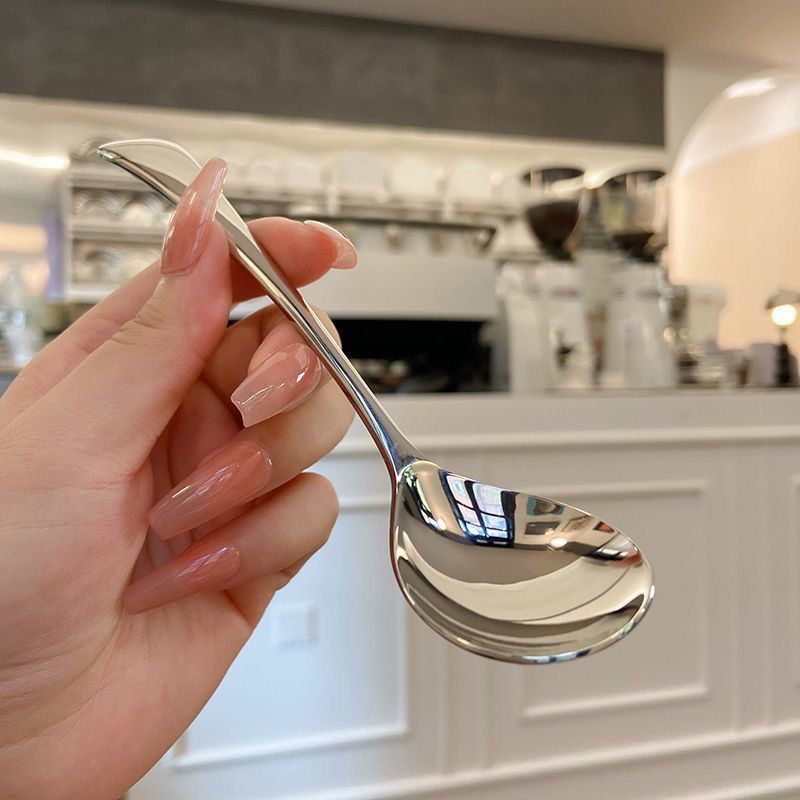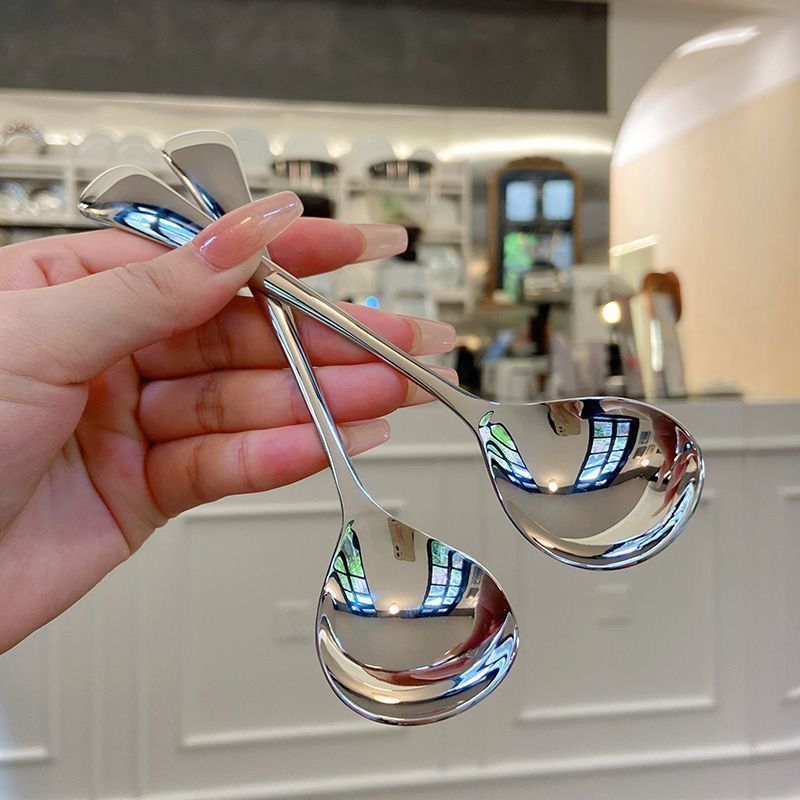 加厚款不锈钢勺子家用韩式简约可爱网红吃饭成人汤匙创意长柄圆勺