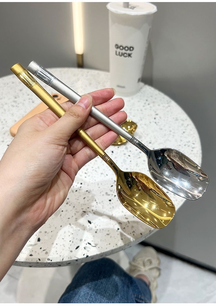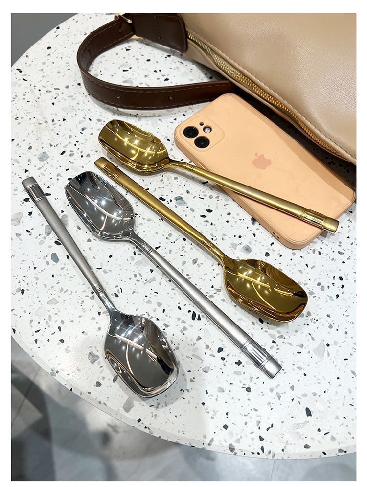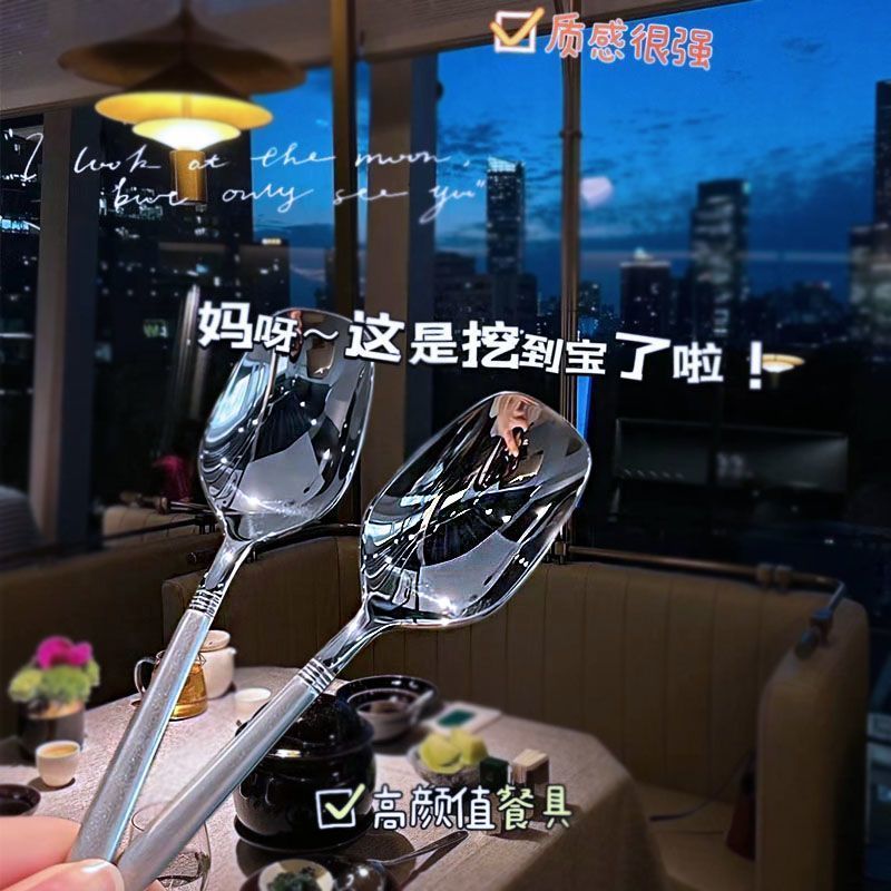 精致爆款勺子家用高颜值家用汤勺喂饭勺学生吃饭勺网红勺韩式长勺
