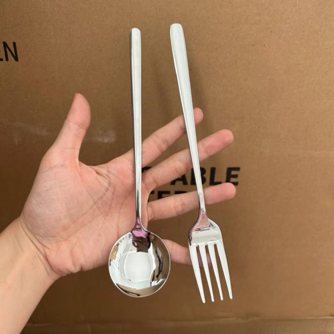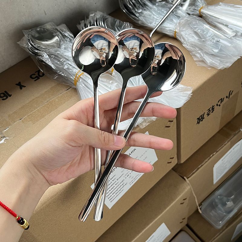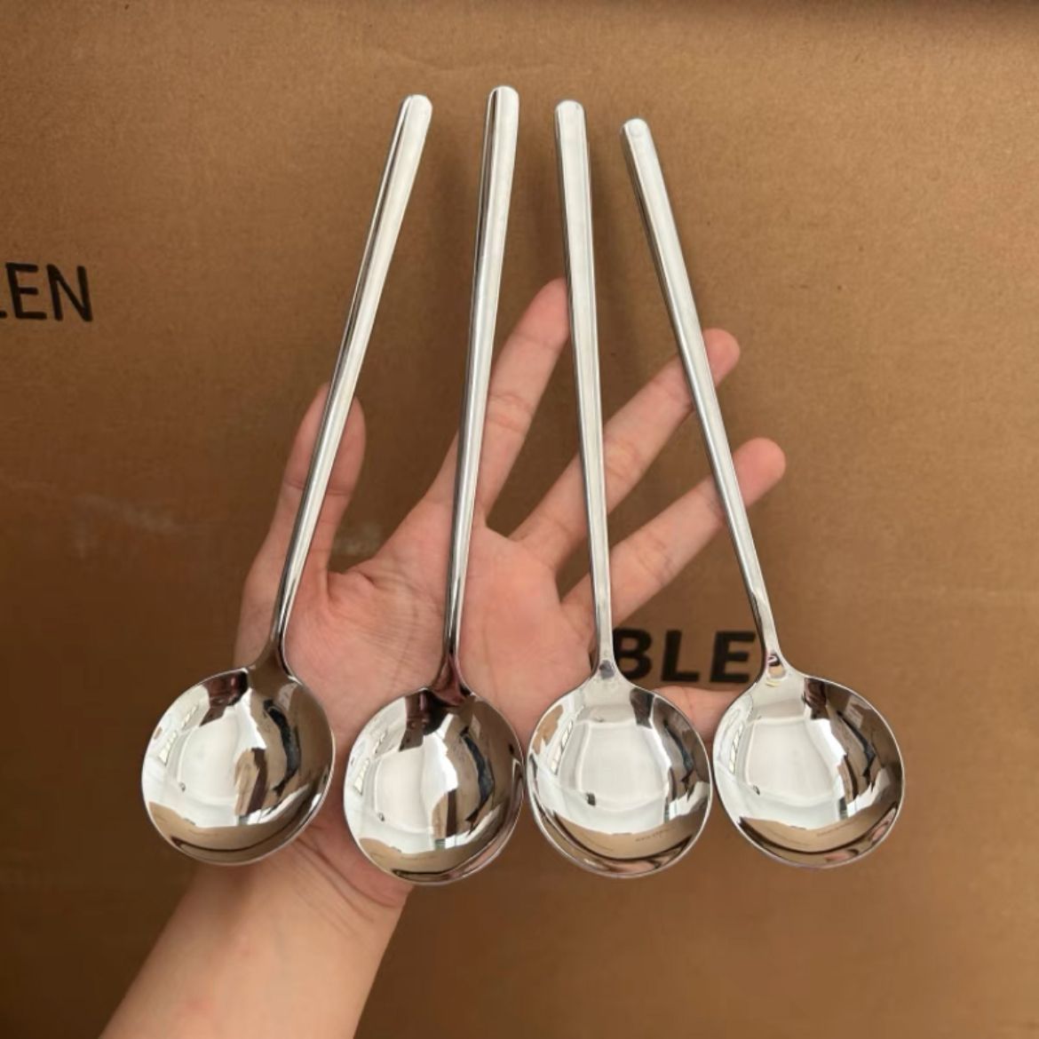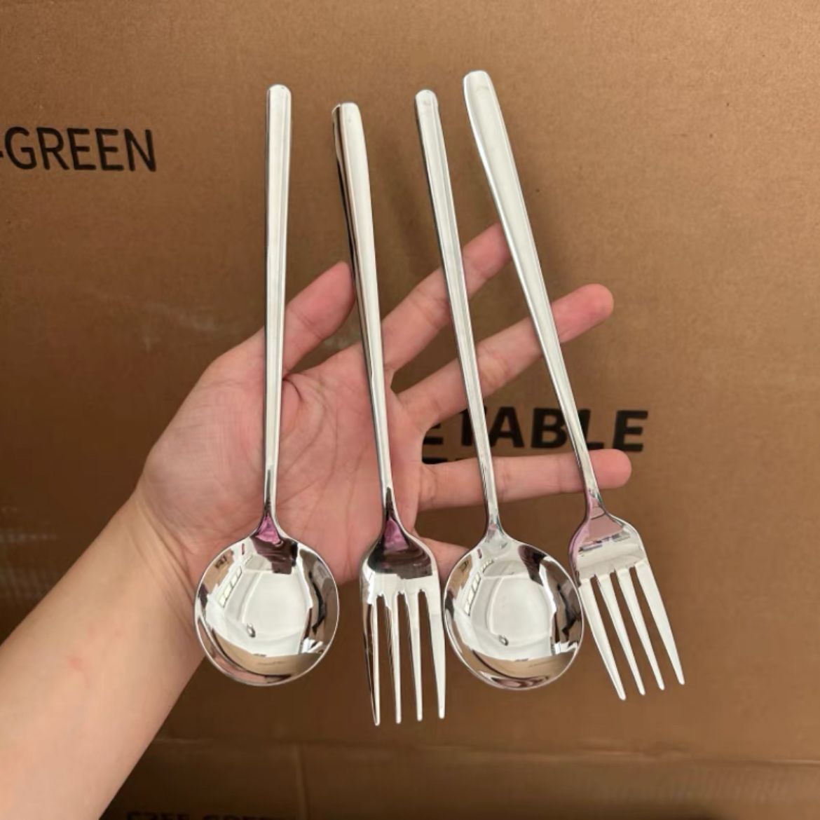 新款高颜值不锈钢勺子ins加厚网红勺儿童吃饭喝汤家用勺长柄圆叉