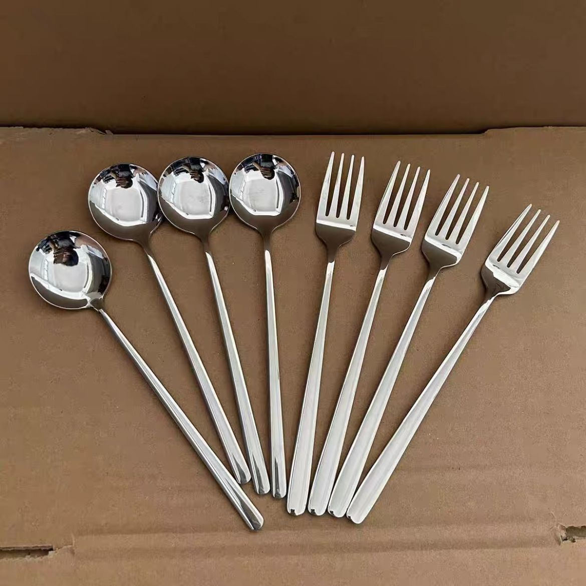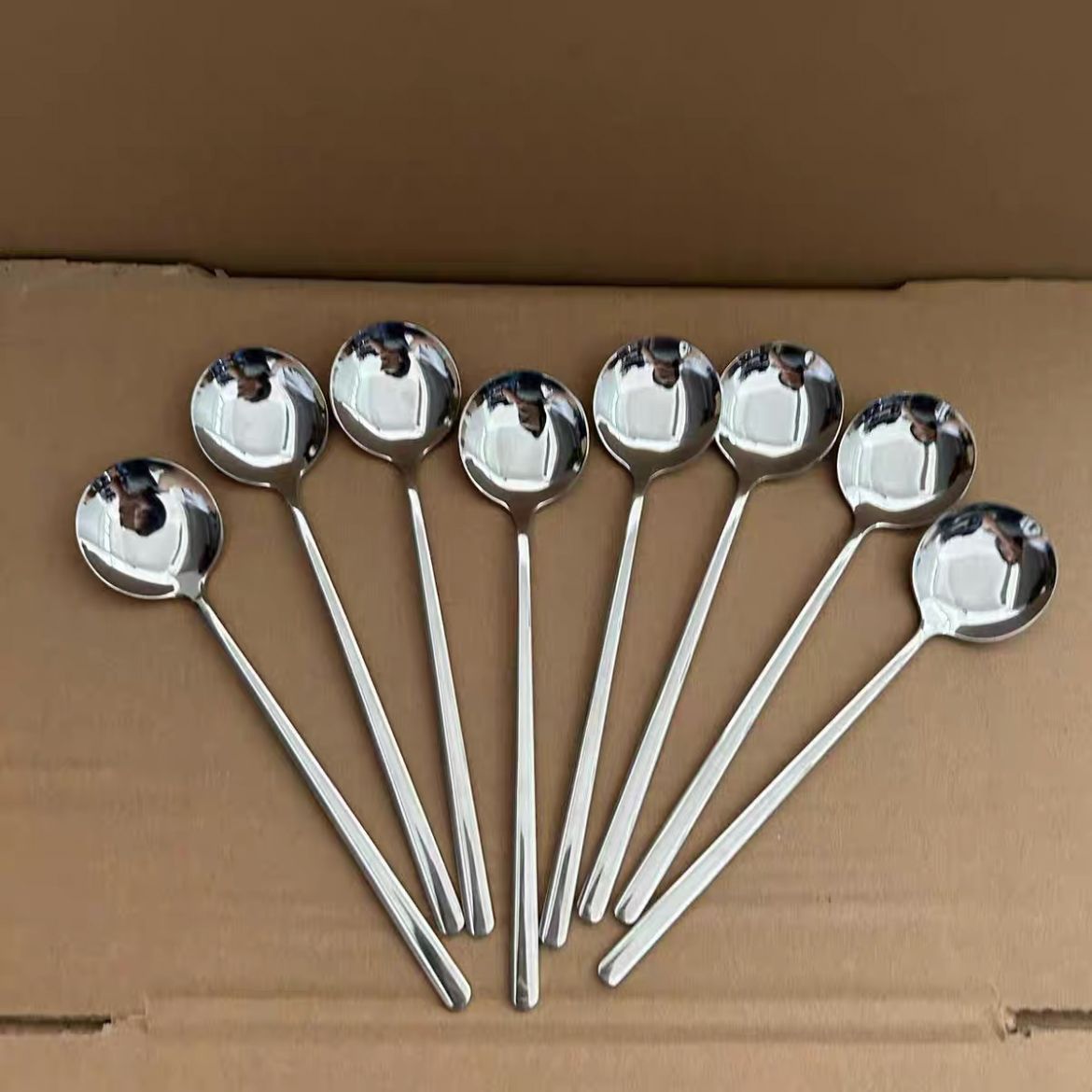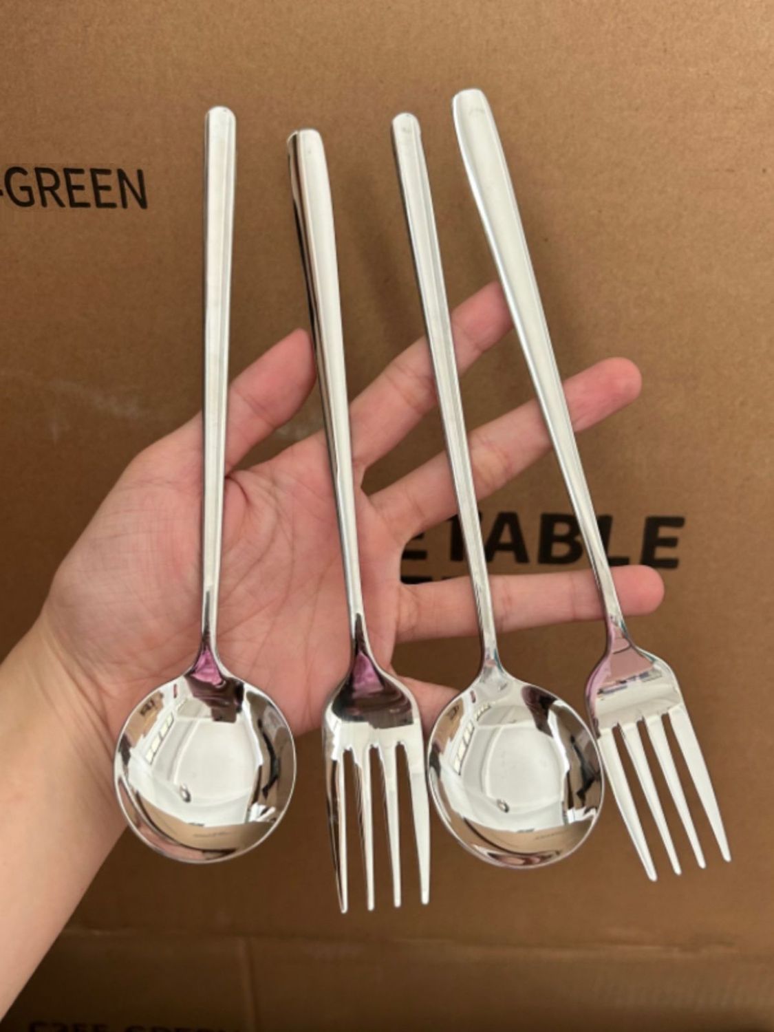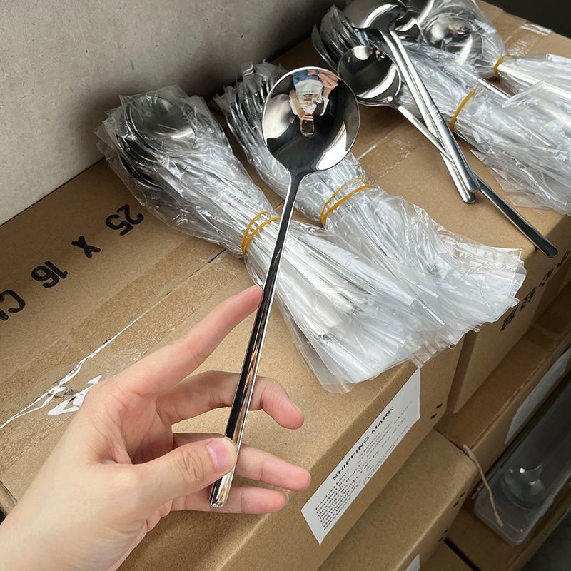新款高颜值不锈钢勺子ins加厚网红勺儿童吃饭喝汤家用勺长柄圆叉