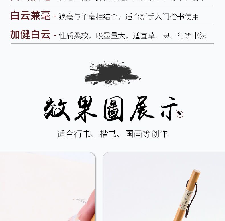 加建白云毛笔大中小号狼毫兼毫羊毫初学者书法国画套装大小白云笔