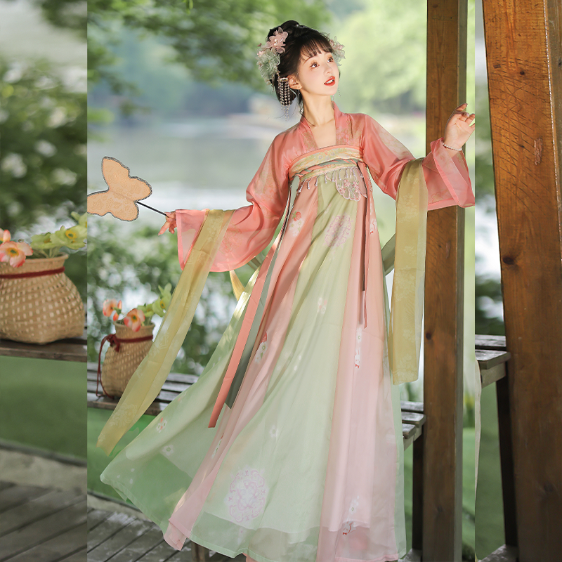 汉唐华韵原创汉服女【春水漾】唐制齐胸破裙刺绣印花夏季日常款