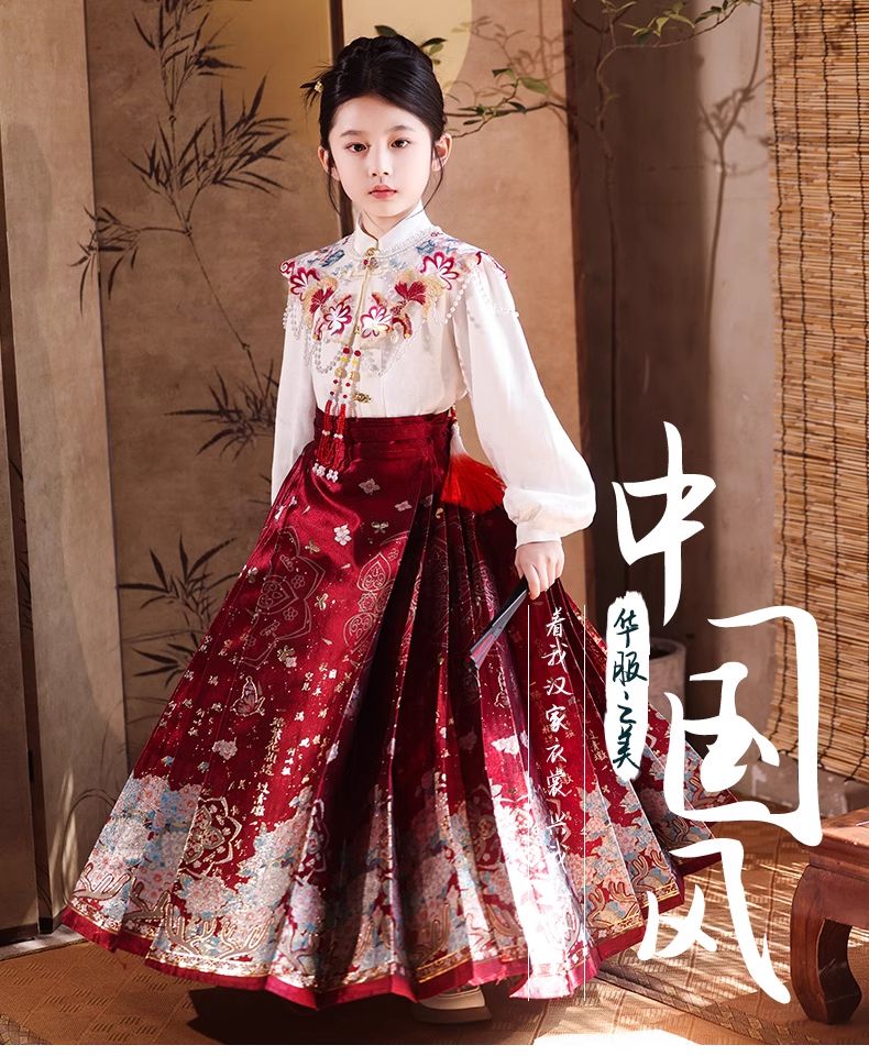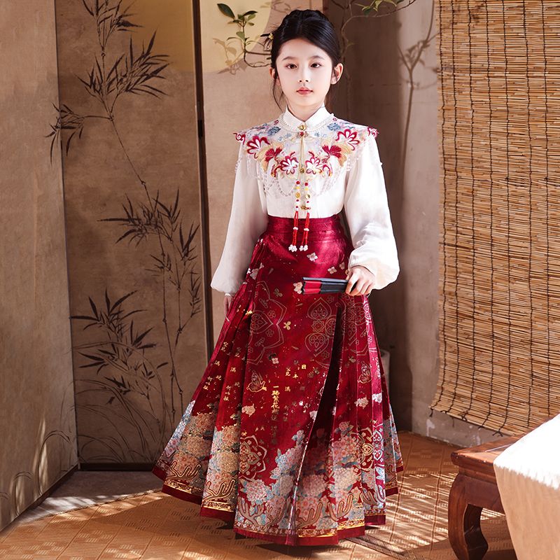 女童冬装汉服新款儿童冬季中国风马面裙套装女孩新中式古装拜年服