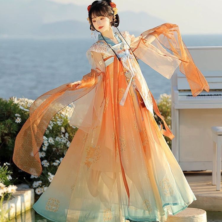 小拾记原创《奶油甜酪》齐胸襦裙汉元素女破烂袖日常春夏款汉服