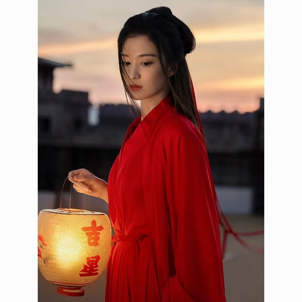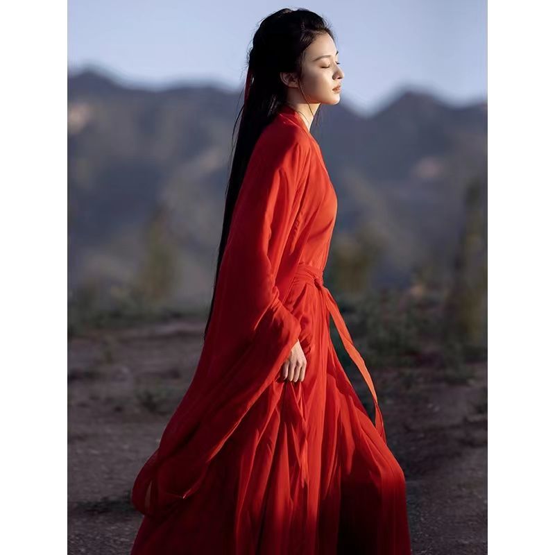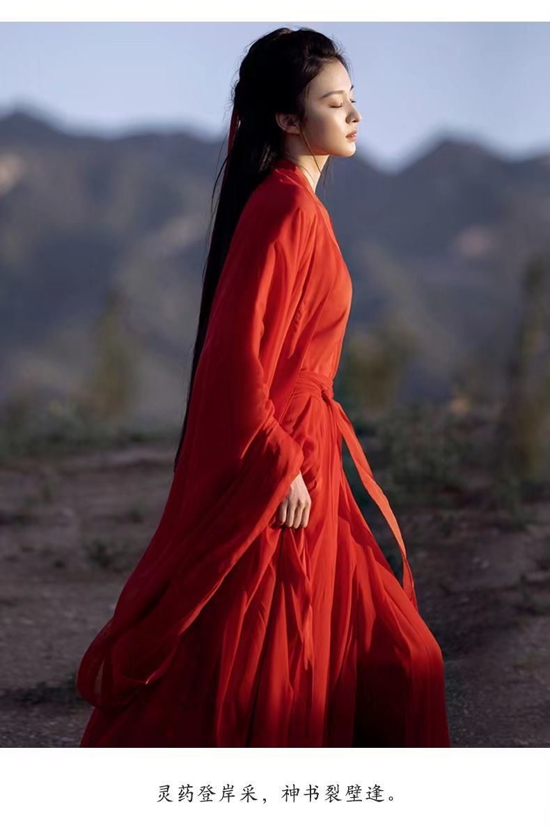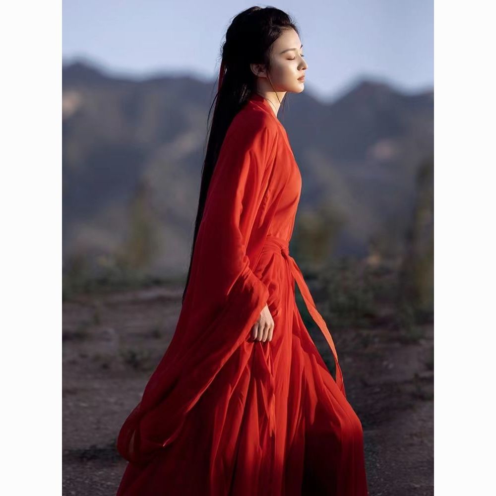 【风华绝代】魏晋风汉服女飘逸超仙红色古装大袖衫古风广袖流仙裙