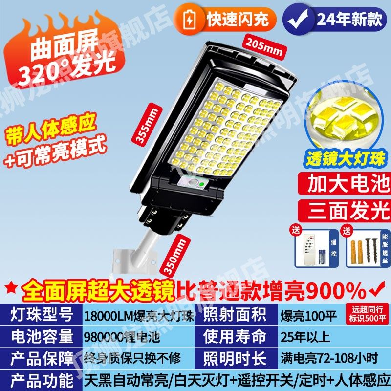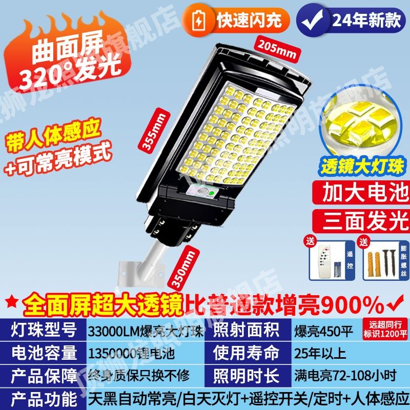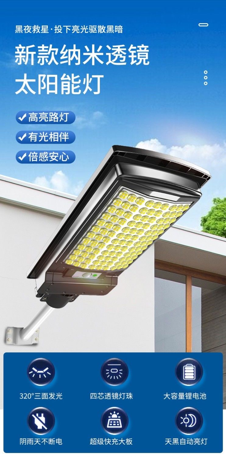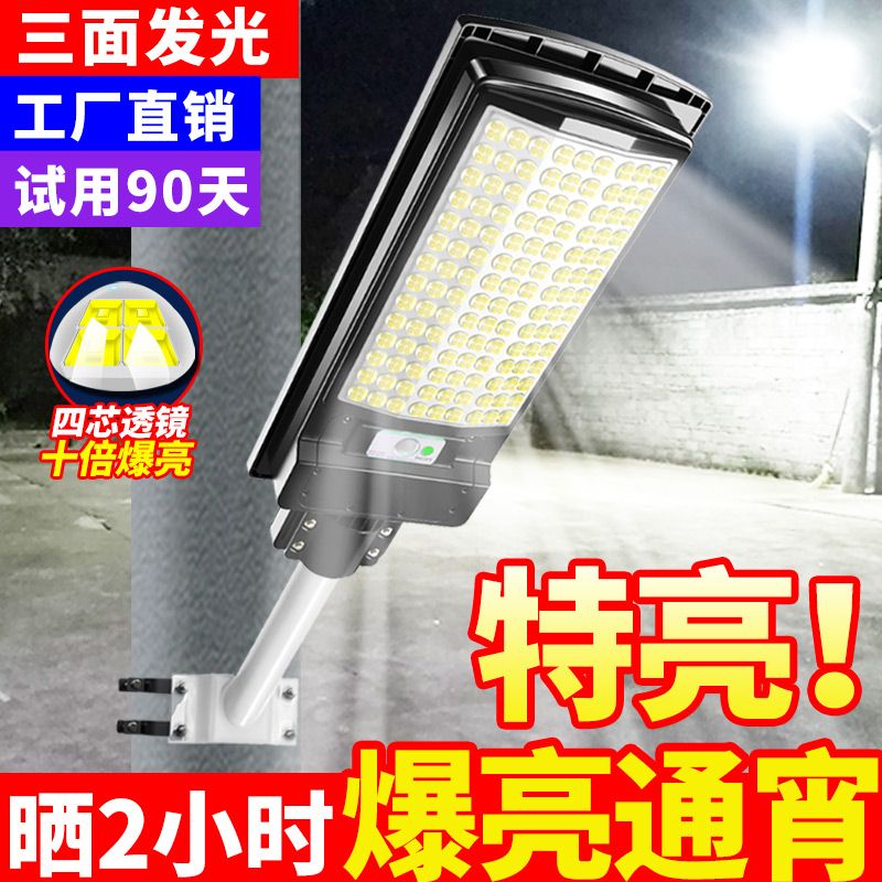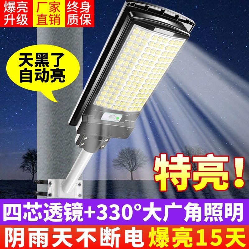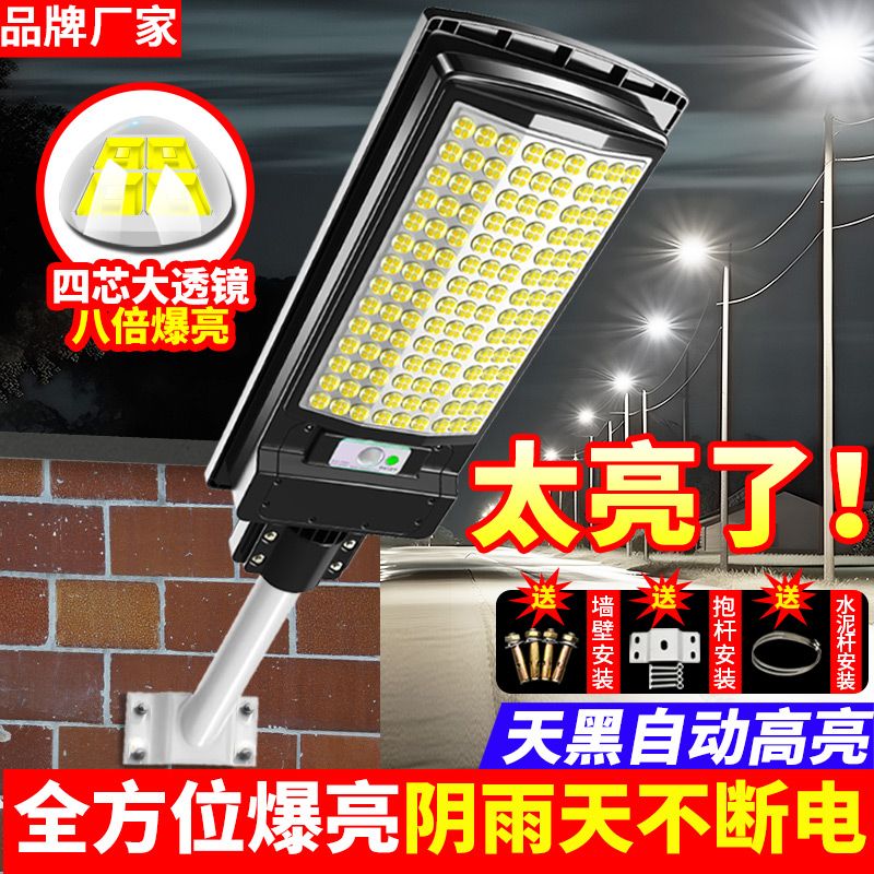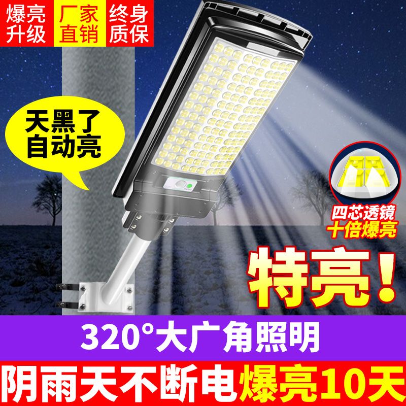 新太阳能灯家用庭院灯超亮不费电的农村防雨人体自动感应一体路灯