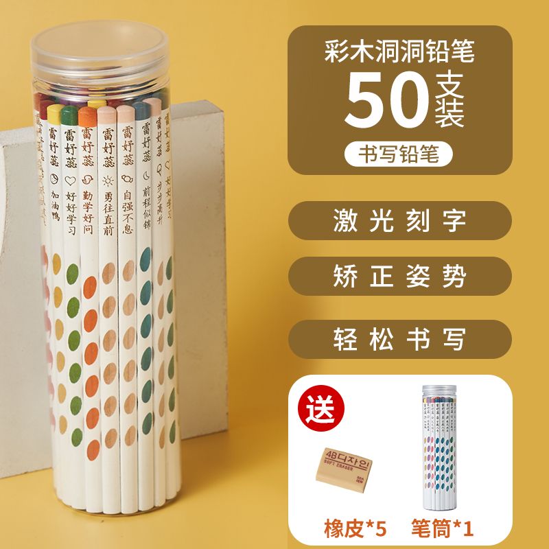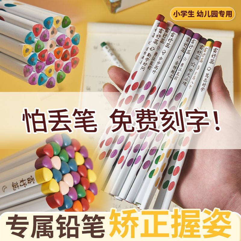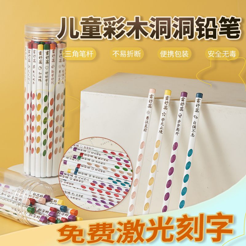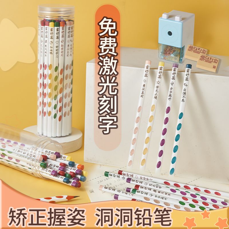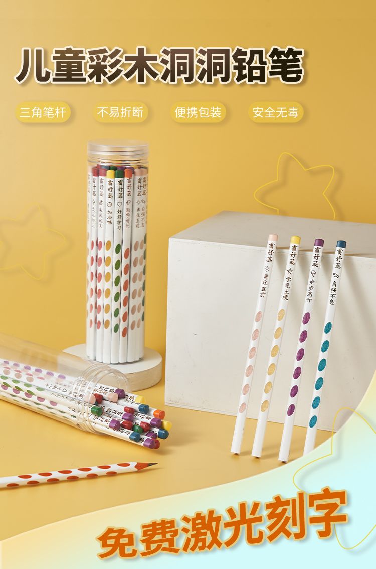 高级定制款免费刻字洞洞铅笔幼儿园小学生专用三角杆矫正握姿铅笔